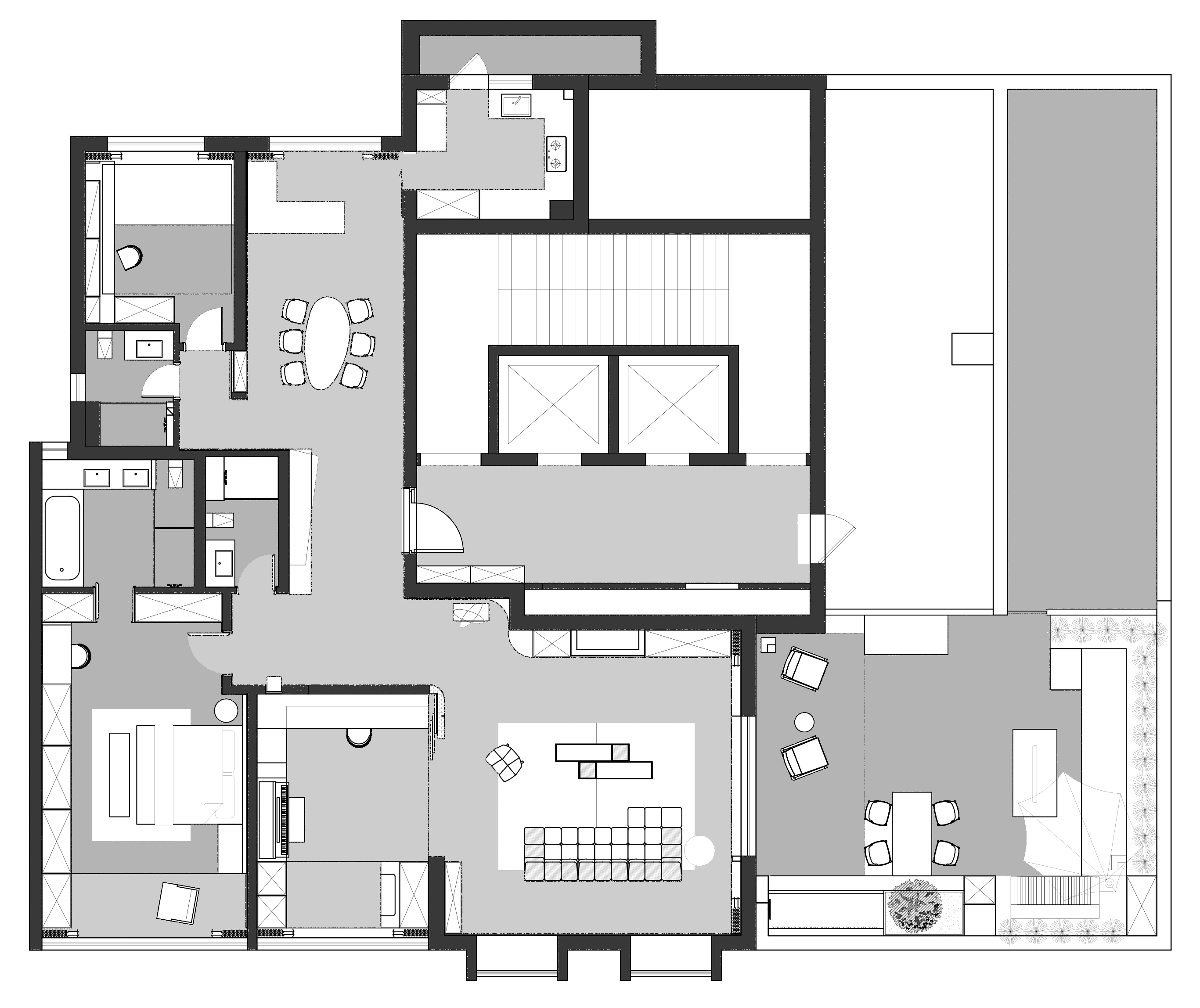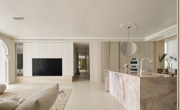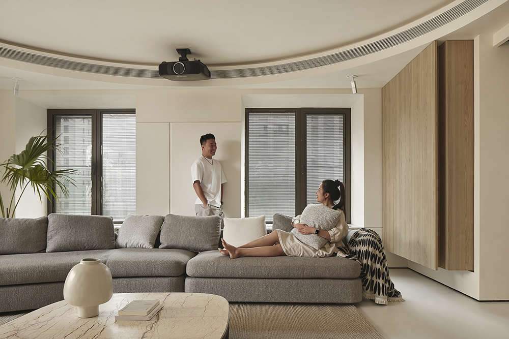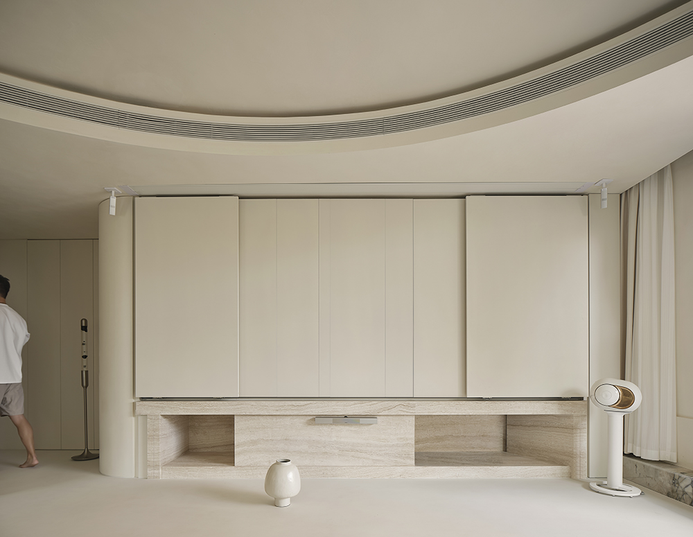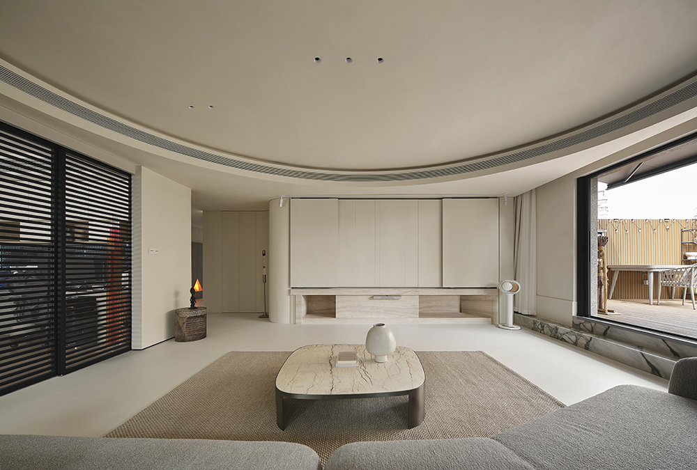 对几何线条的精密引用,围合而成家的内核,材料与色调交融的微妙变化,跟随时间的明晰光线,打造通感的视觉体验。