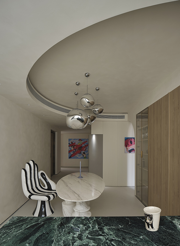 多才多艺、乐观快乐的一家三口,需要更多内外双向探索的自由空间。打开了原本的次卧空间,连接客厅,可开可和适应多种场景。业主从事设计行业,对空间的承载性与灵活性要求更高。