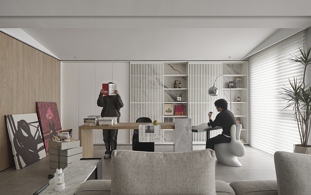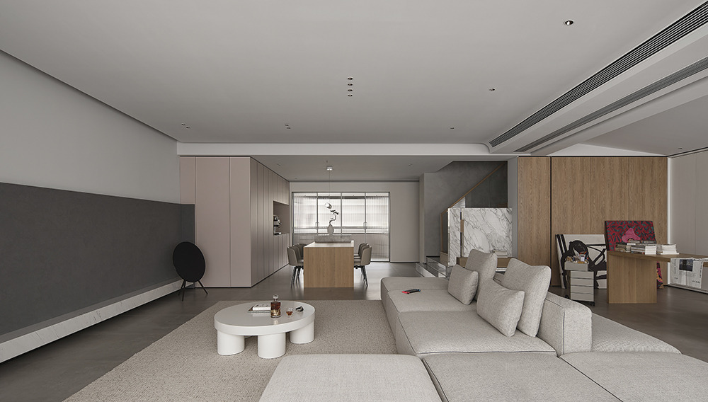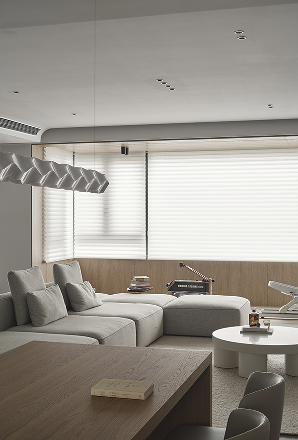 艺术是一种可以让生活有序的形式,思考本质延展空间形状,光影流连,自在如风。无论连榻而坐,还是窗边漫步,空间打破人们对客厅的固有印象,它是立体且温柔的,每一面都是另一种体验。