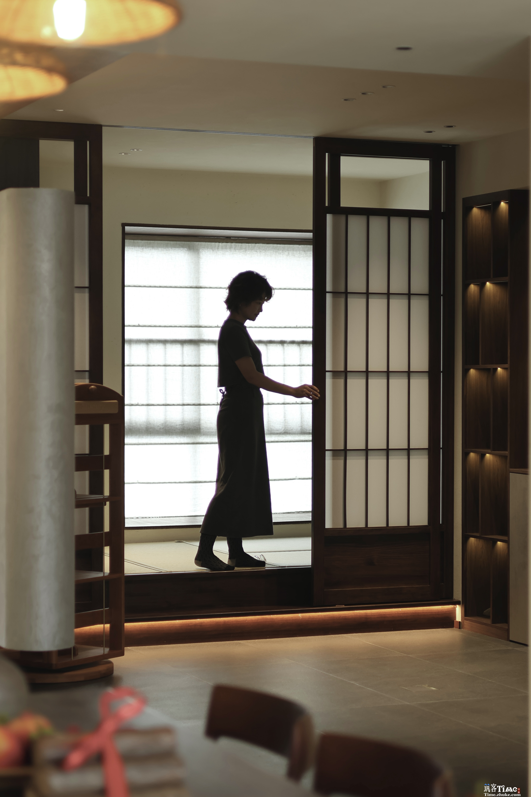 会使用是重点,电视背景墙后面的原始卧室进深很深,设计师将之一分为二,一部分设计成为榻榻米客房,另一个对着走廊的部分全部打开,成为开放式的休闲区,既消隐了长长的走廊,也让整个空间的灵活度更显,打开的空间可以是书房,也可以是未来的宝宝活动区,亲子互动区,茶区等等,多情境化是随着屋主生活的“成长”而“生长”。