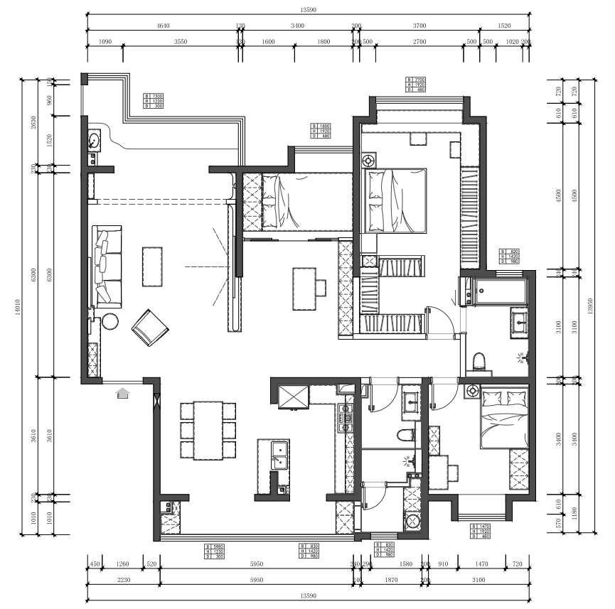 本案,紫薇·永和坊180平方米平层私宅,设计以侘寂融合雅气,明快的流线让空间“重组”结合一家三口的常住状态,三室改两室,多效利用空间的“浪费”区域,消隐窄长的廊,丰富空间的置物和储纳,造景内外,逍遥生活。