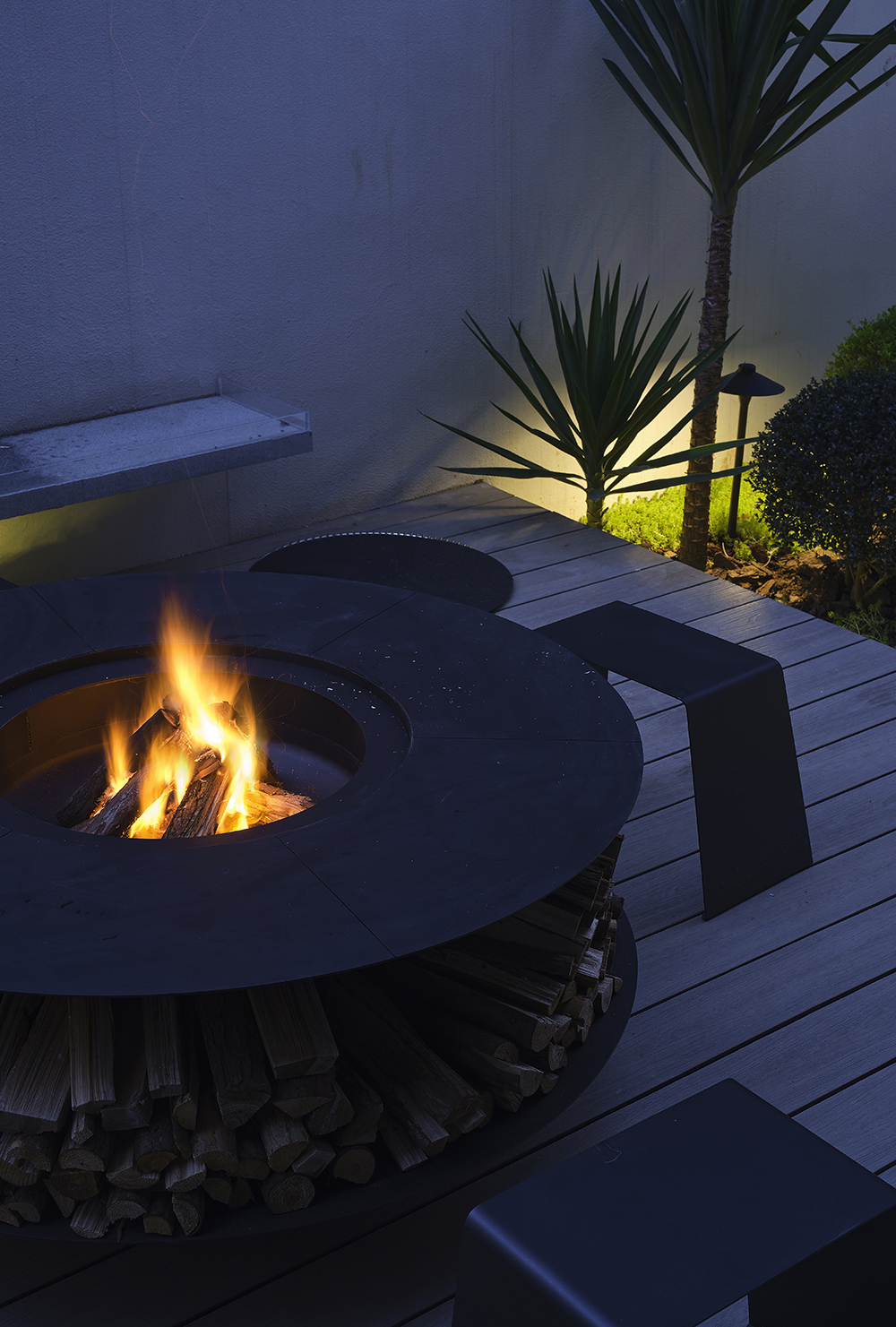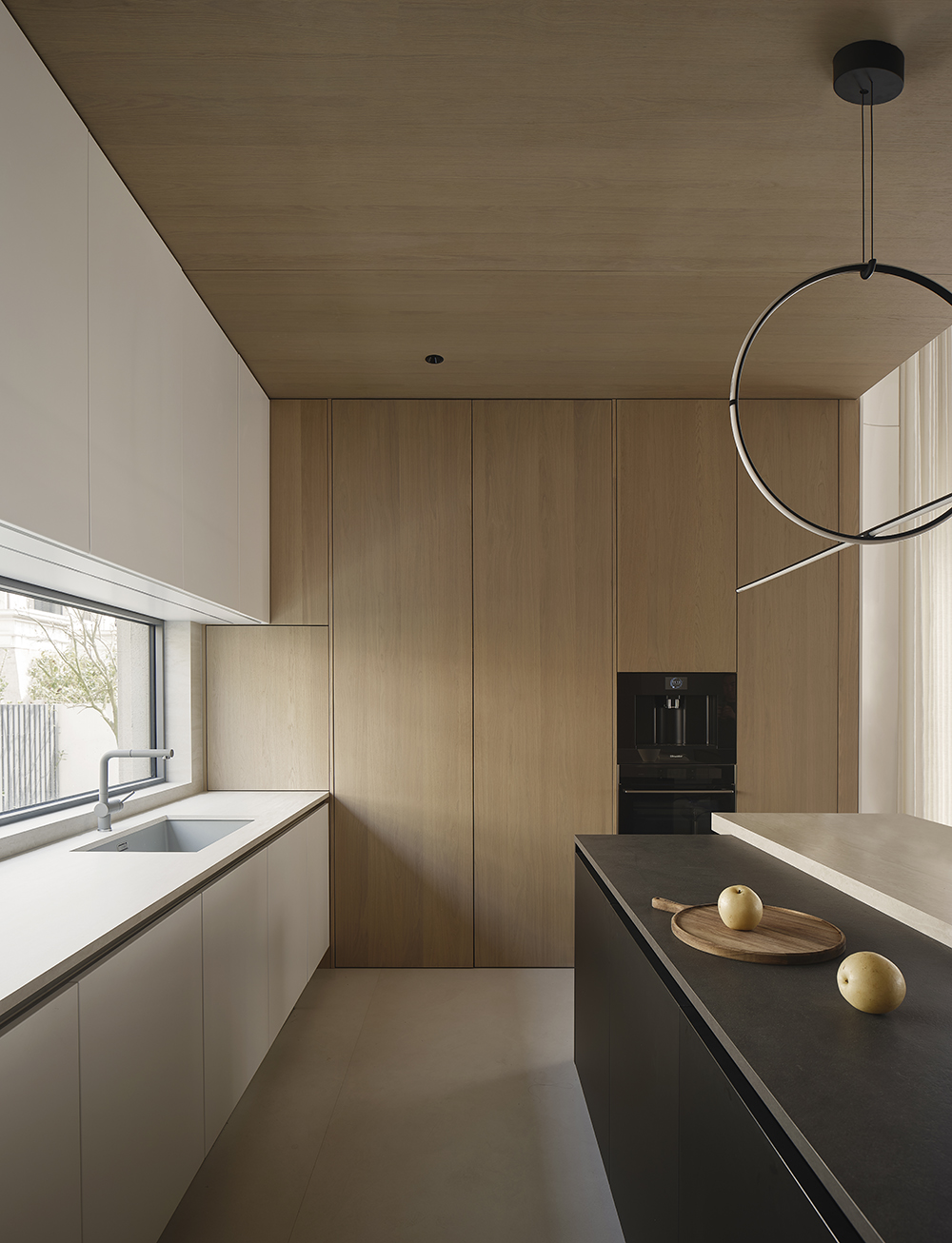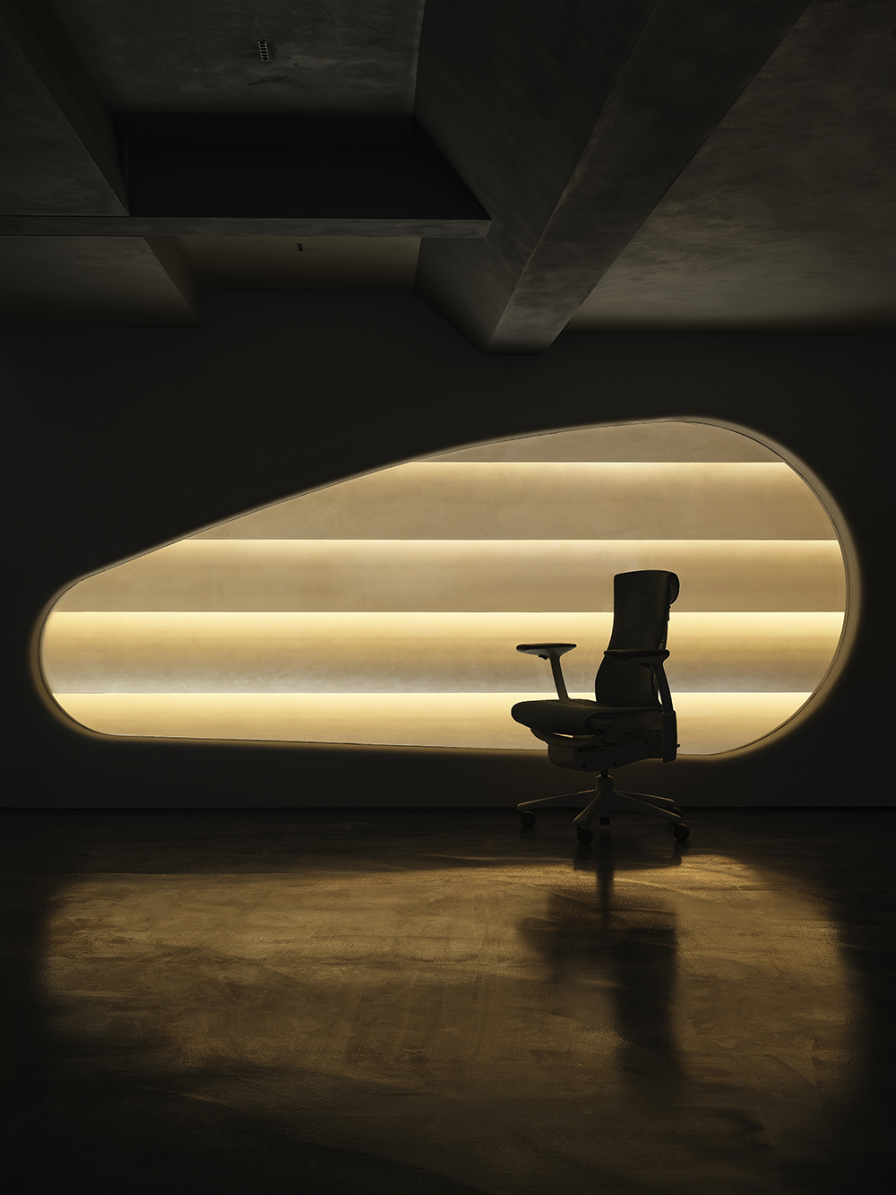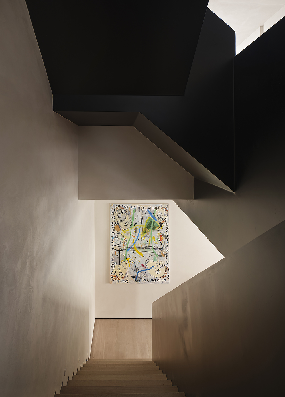 地下室不仅是一场视觉盛宴,还充分调动了人的听觉、嗅觉、触觉,感知无处不在。车库与会客区两侧都有天窗,进门处以玻璃隔断引光互通,雾化壁炉的律动升华了回家的仪式感。