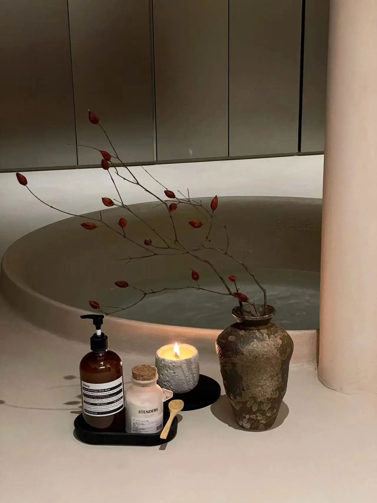 将原本的主卧与次卧打通,往右登上两步台阶,进入到私汤区域,可以边泡汤边欣赏窗边日式造景