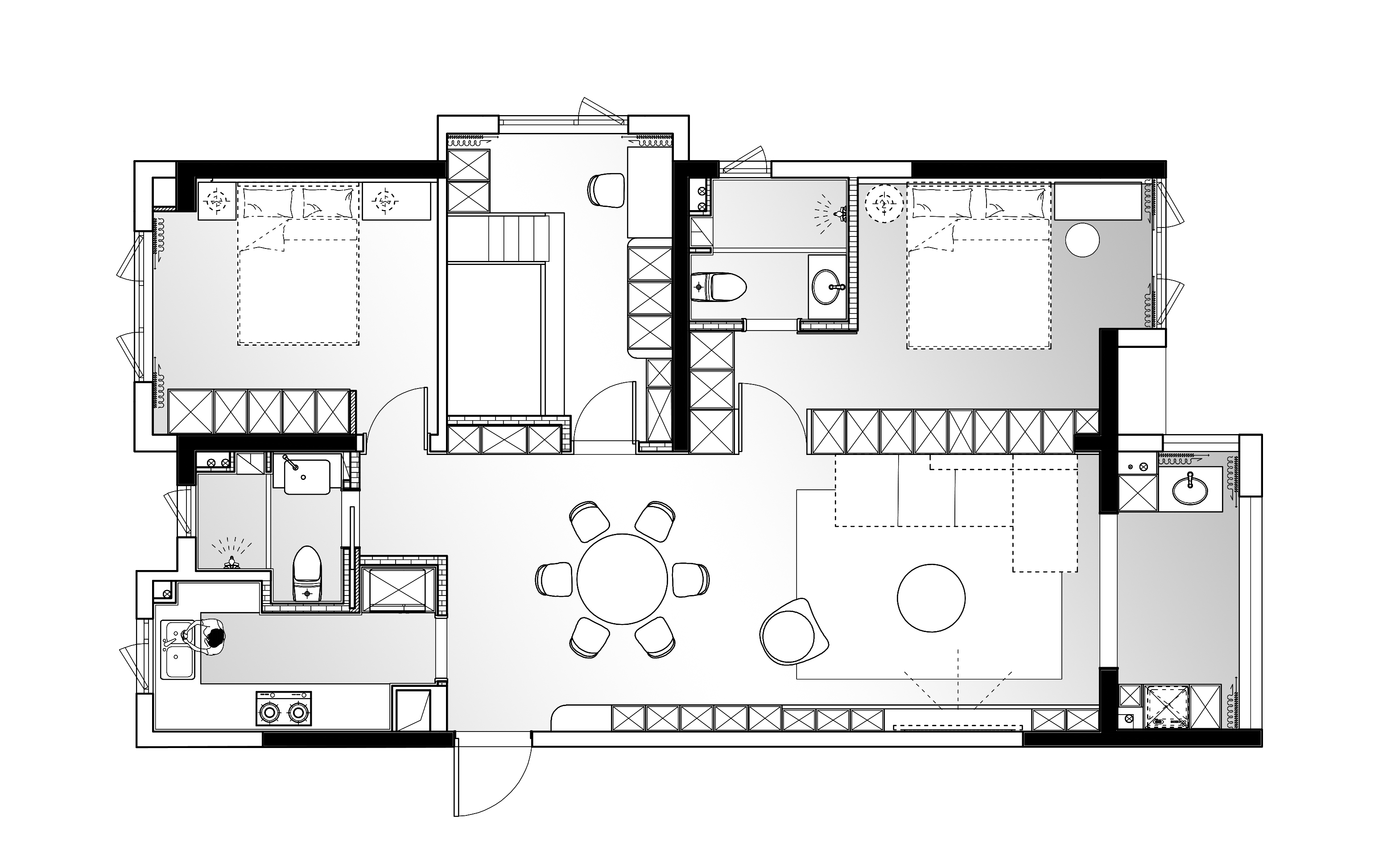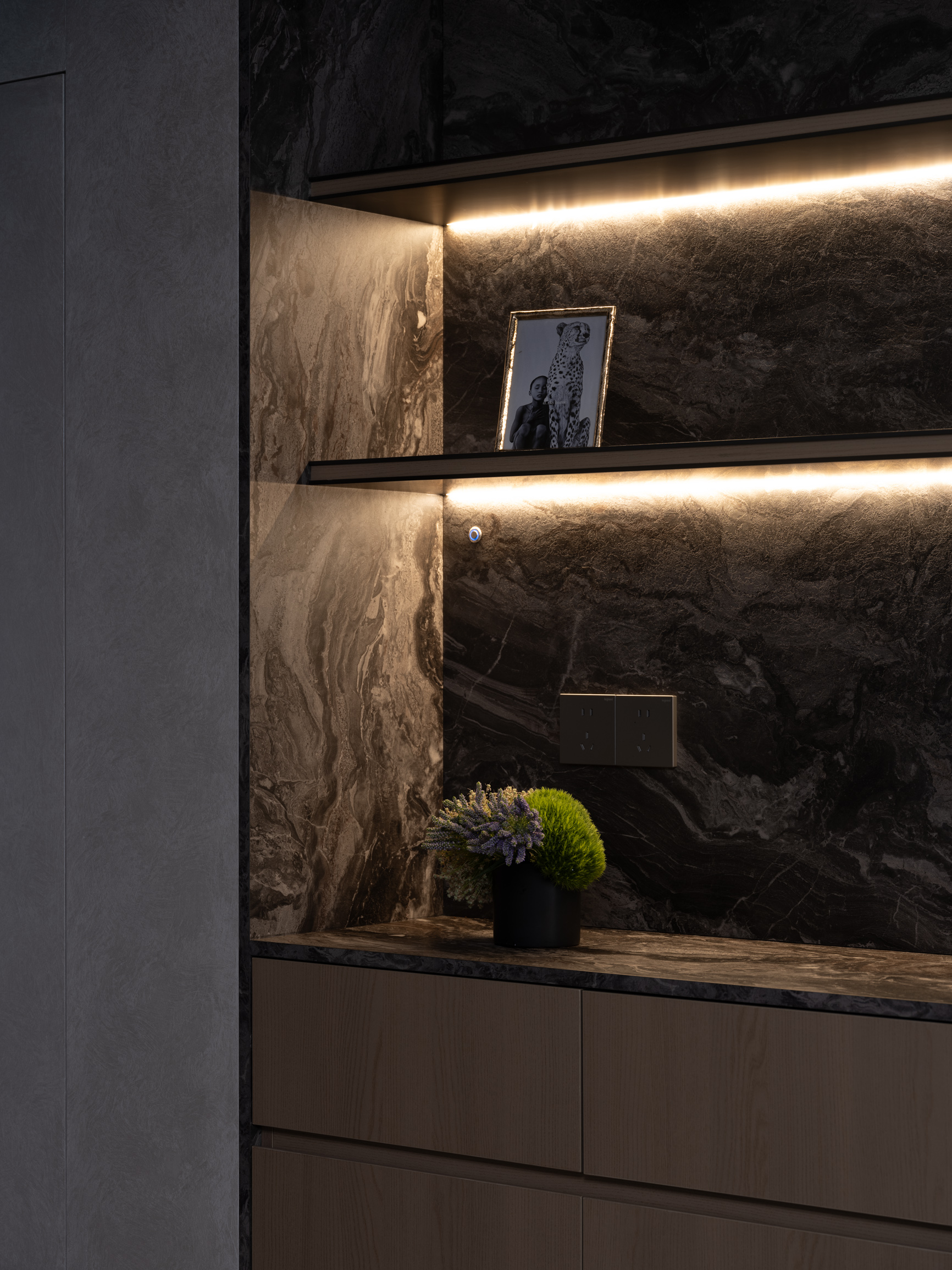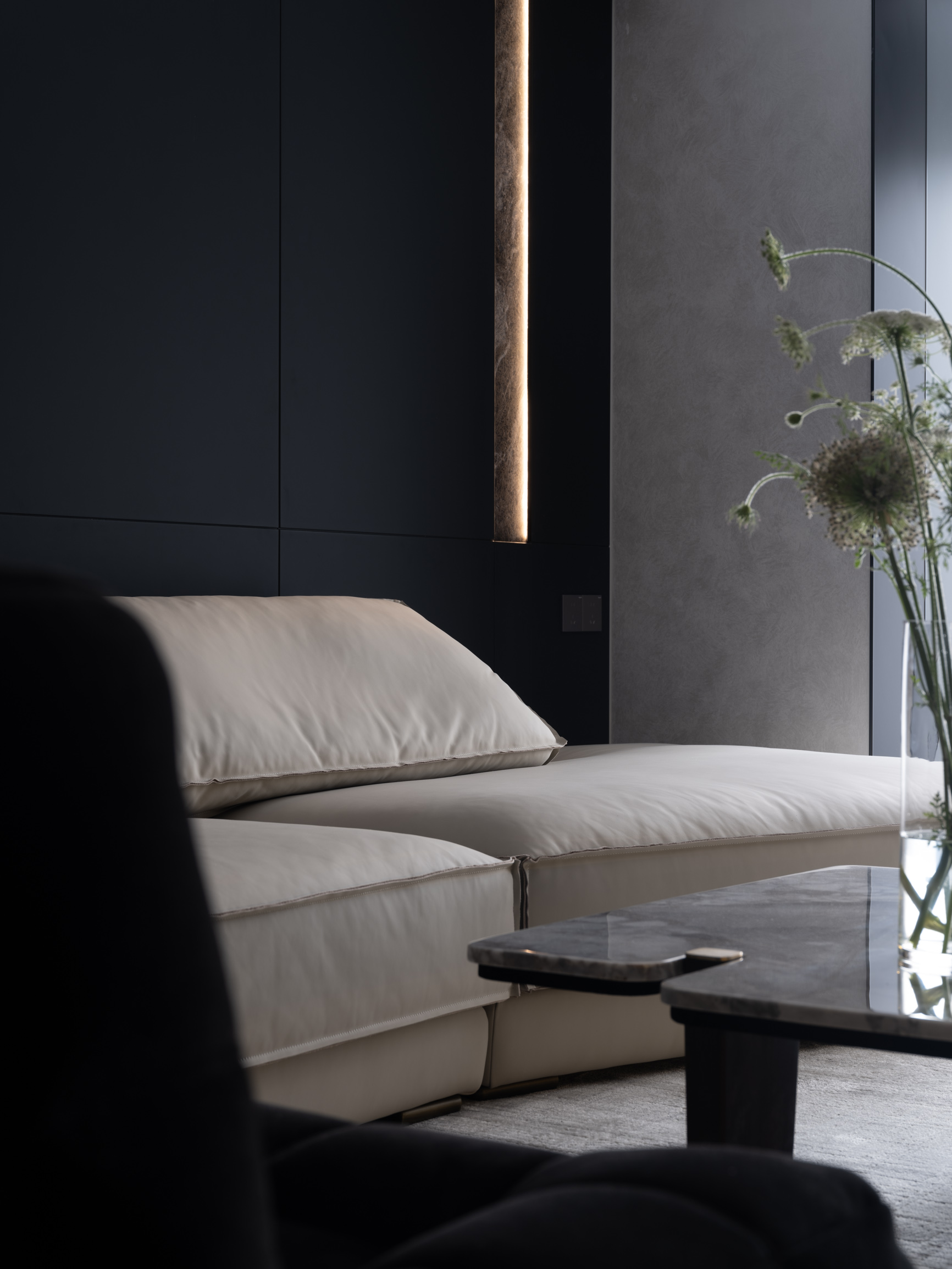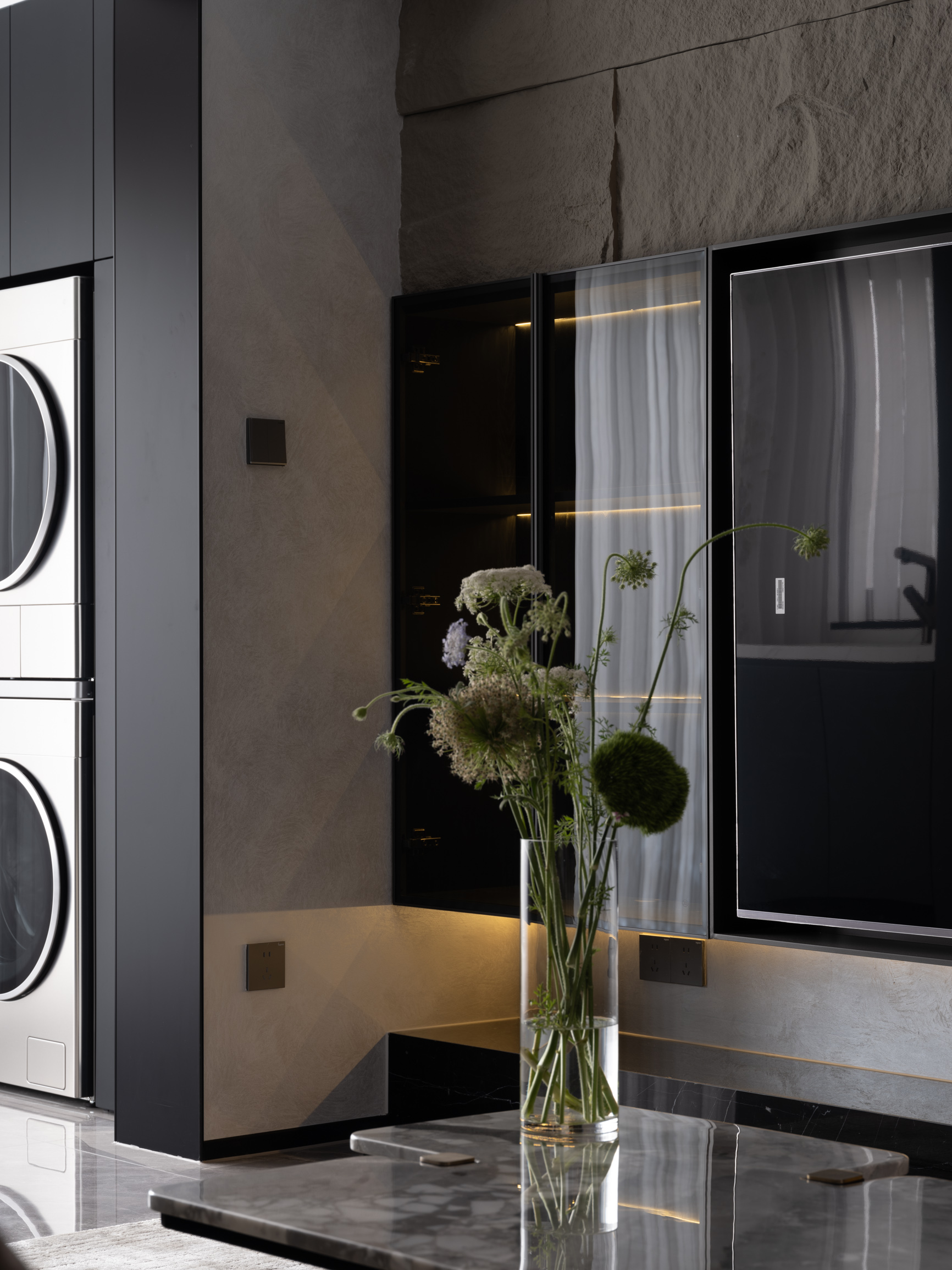 这个被黑白灰和硬朗的材质充斥的家,谈不上温馨,但却处处散发着温暖,这种温暖并不来自于风格本身,而在于考虑好空间中每一处不容易被注意到的细节,最终具化成了家的模样。