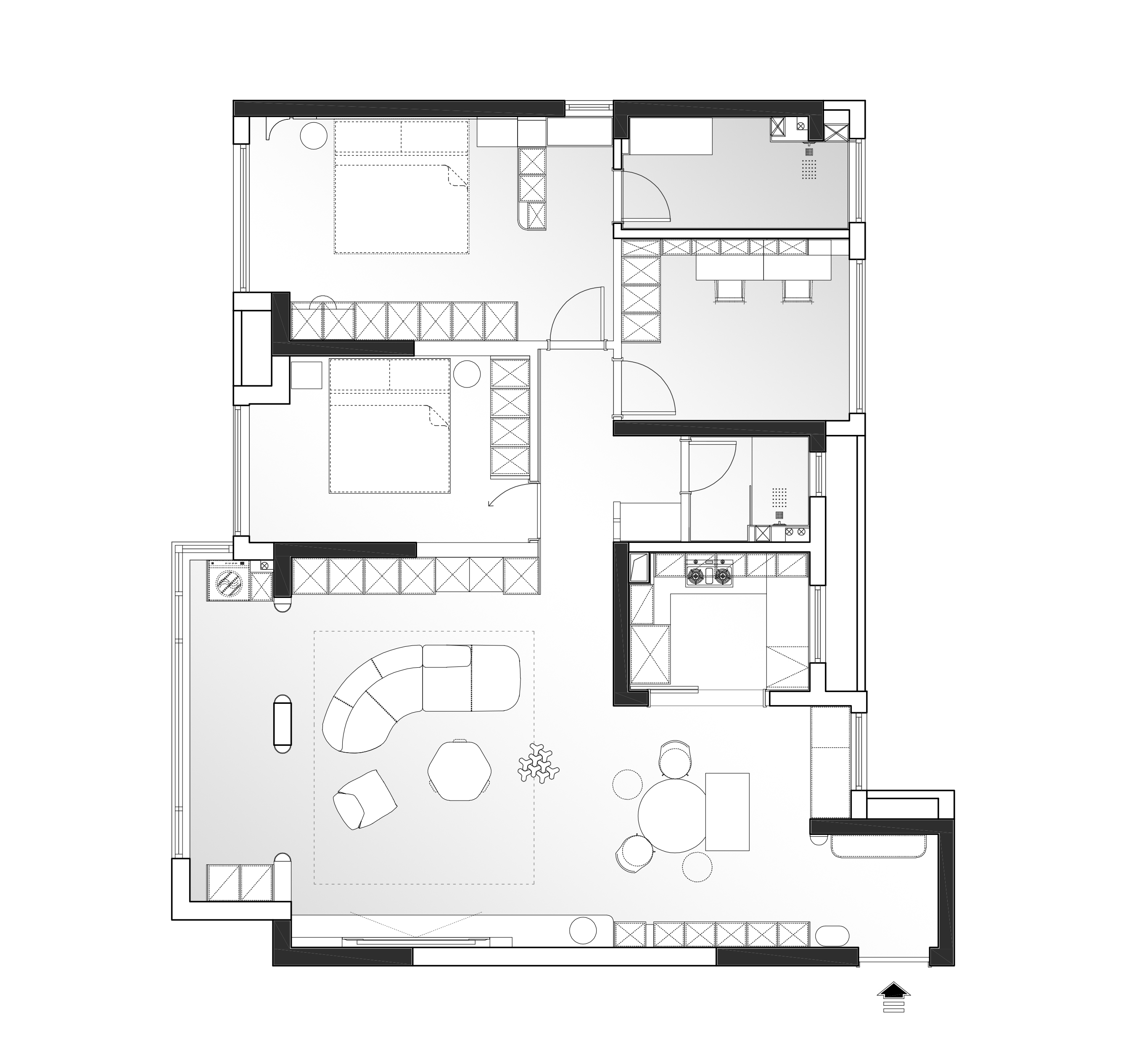 本案为年轻夫妻的家,偶尔与父母同住,在快节奏的当下,家需要成为他们心灵的栖息地、温馨的避风港;与此同时,也需要赋予空间生命力,让空间陪着居住者一同成长,随时迎接未来的新生命。