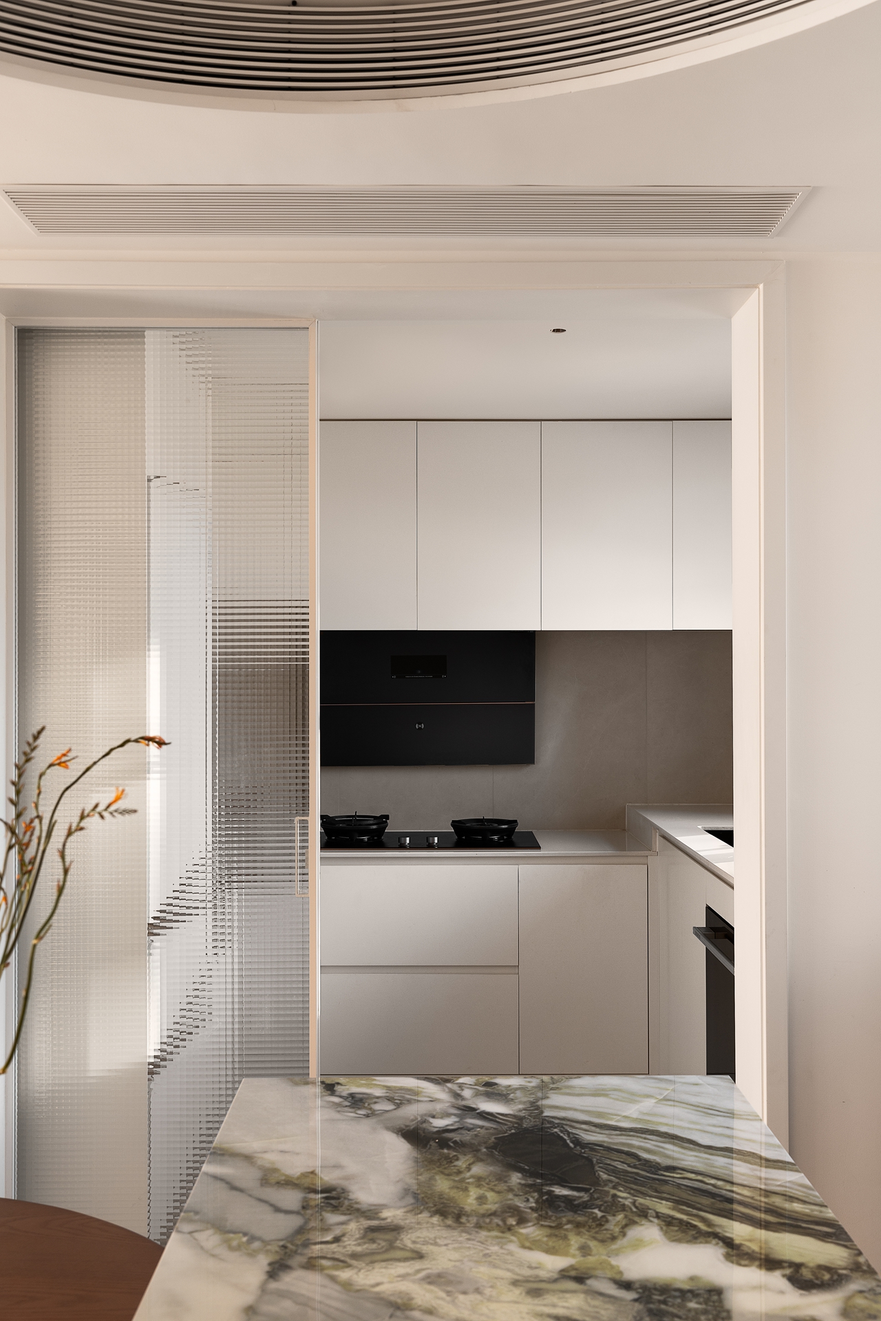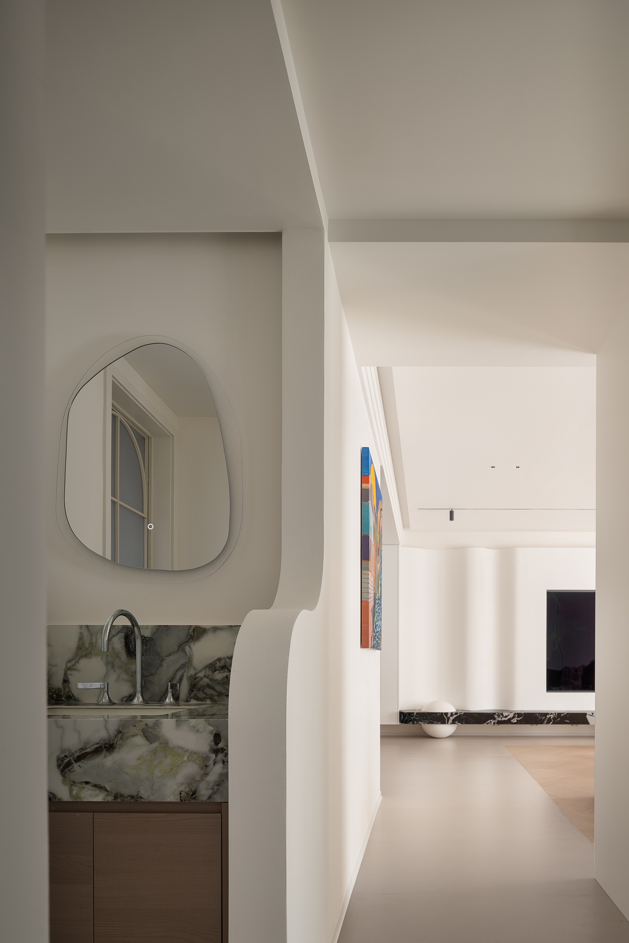 石材的精致纹理与GRG材料柔和弧度碰撞,又保留了空间使用的灵活性,松弛惬意的生活正缓缓铺展开来。