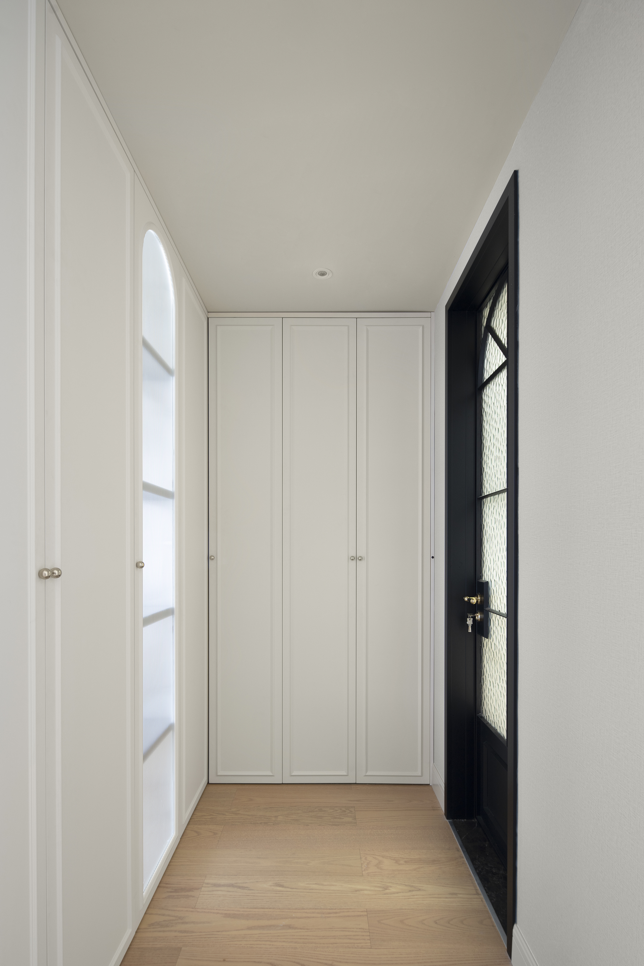 卧室与浴室通过设计划分出步入式衣帽间,形成独立的区域,不仅保证了充足的储物空间,采用玻璃材质的隔断,更增添了室内明亮度和空间感。