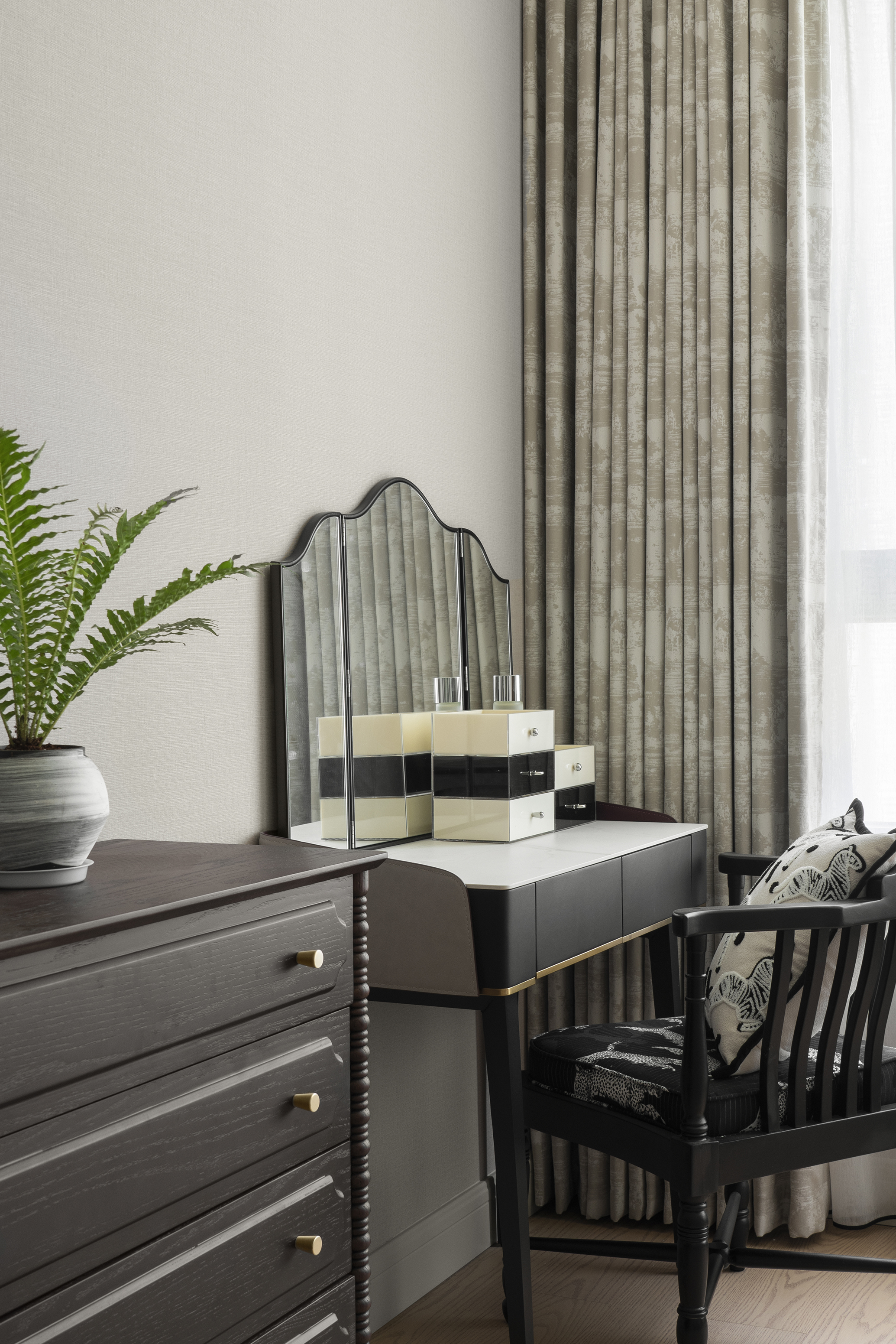 床尾增加床尾柜和梳妆台,满足女业主日常使用需求。