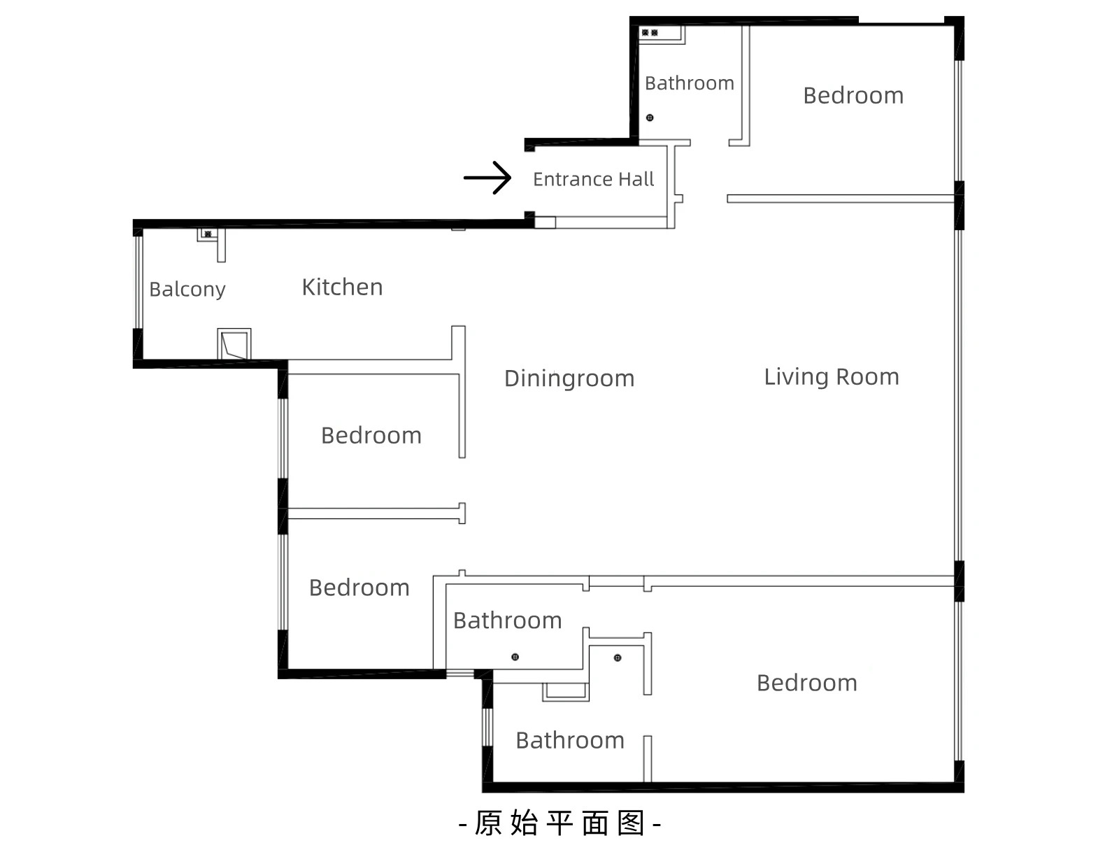 ❶ 客餐厅一体化设计,增加7米满墙收纳柜;❷ 主卧增加衣帽间,与主卫进行隔断加强隐私性;➌ 拆改墙体打通两间小次卧,扩大儿童房面积并改为双开门;❹ 各区域设计充足的储物空间,满足日常收纳需求。
