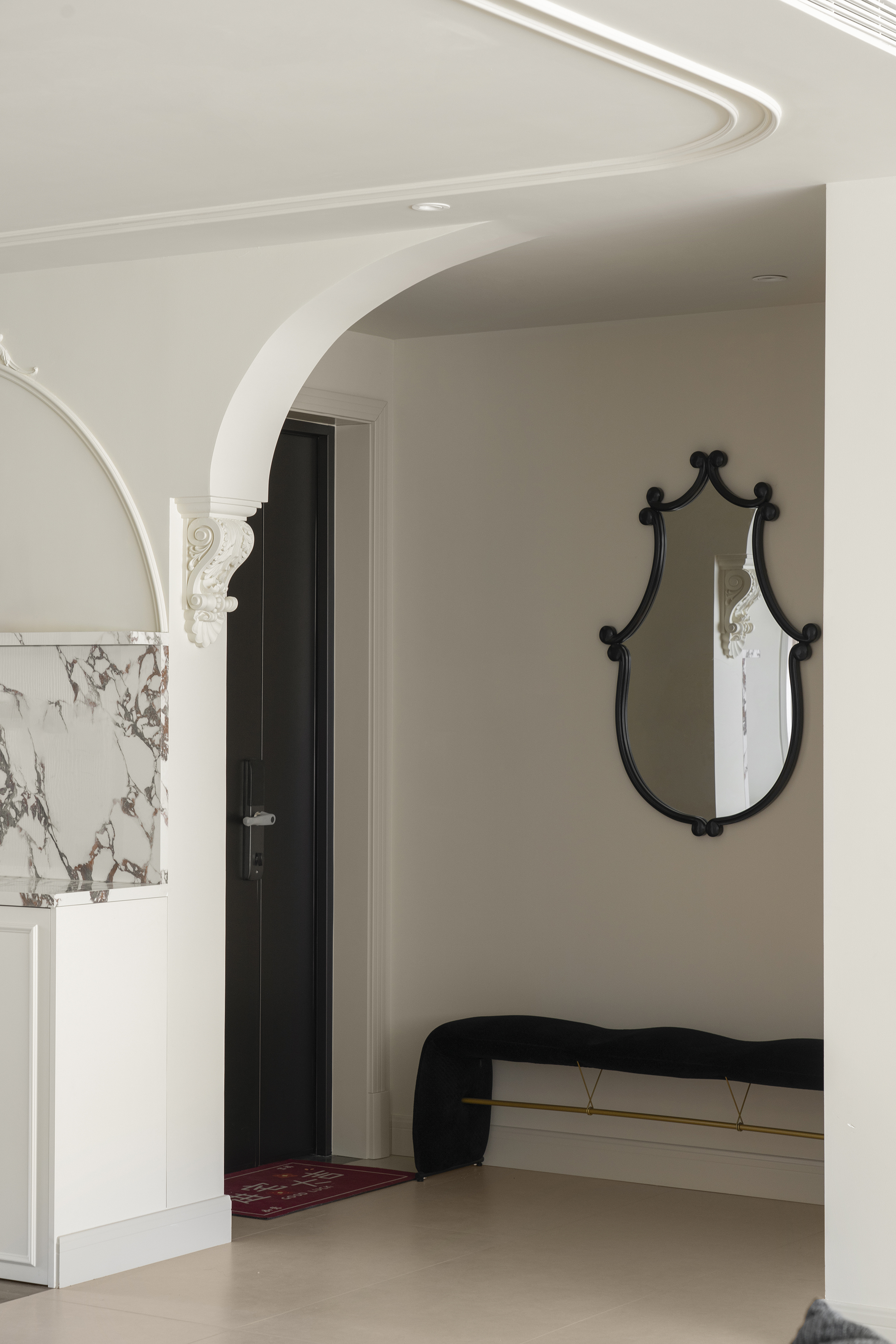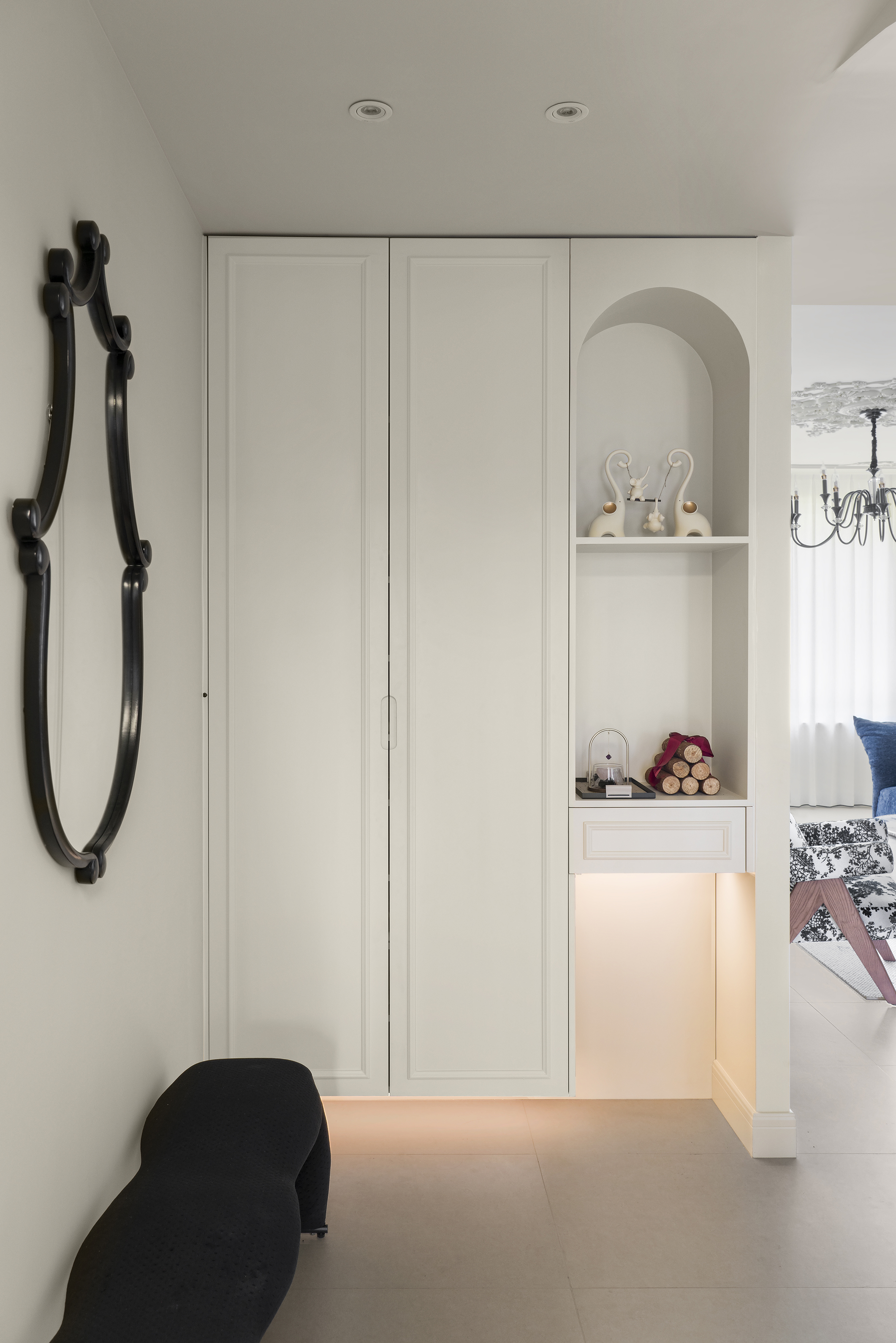 背后柜体设计了圆弧造型,整个家细节都可以呼应起来