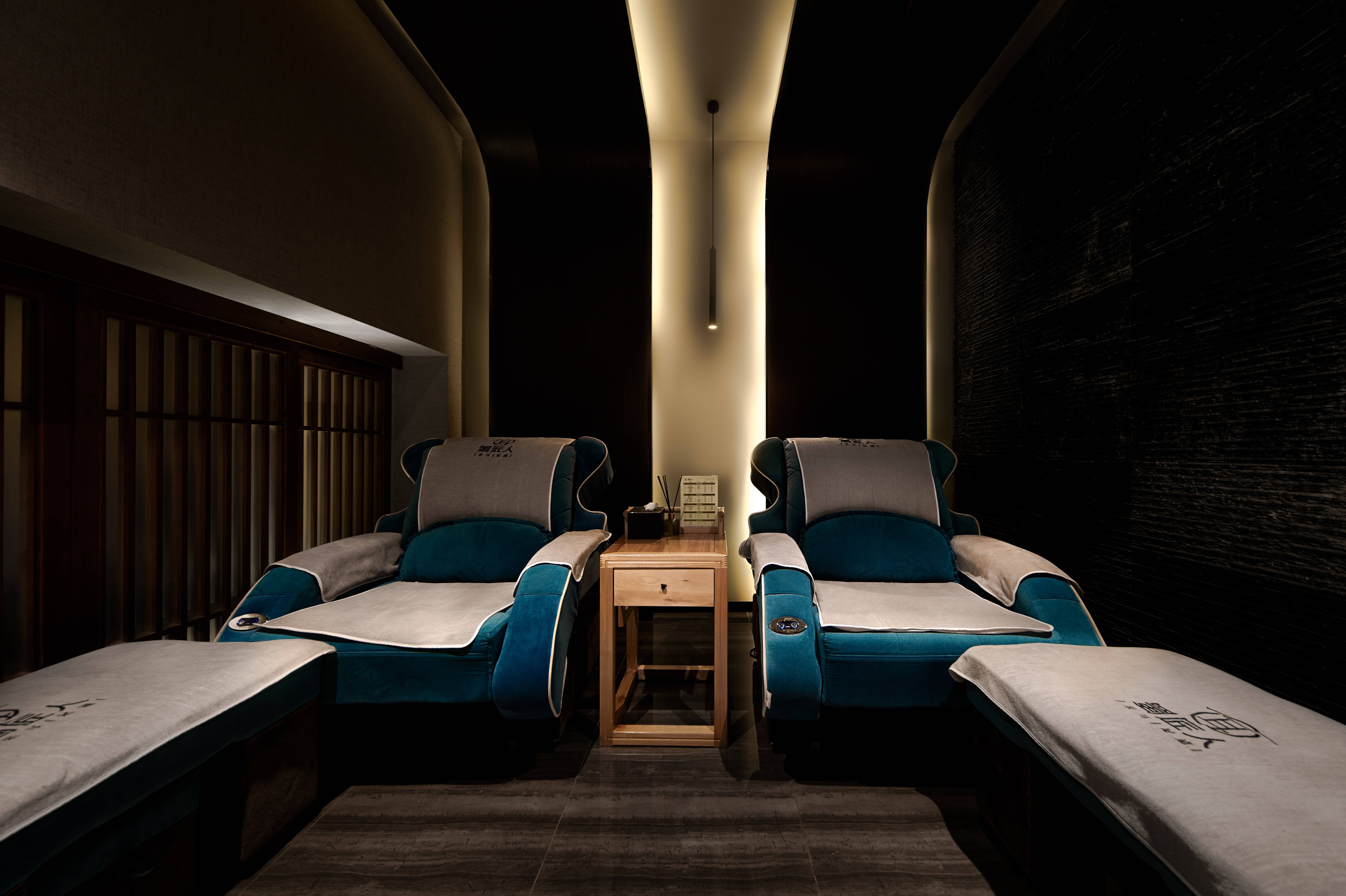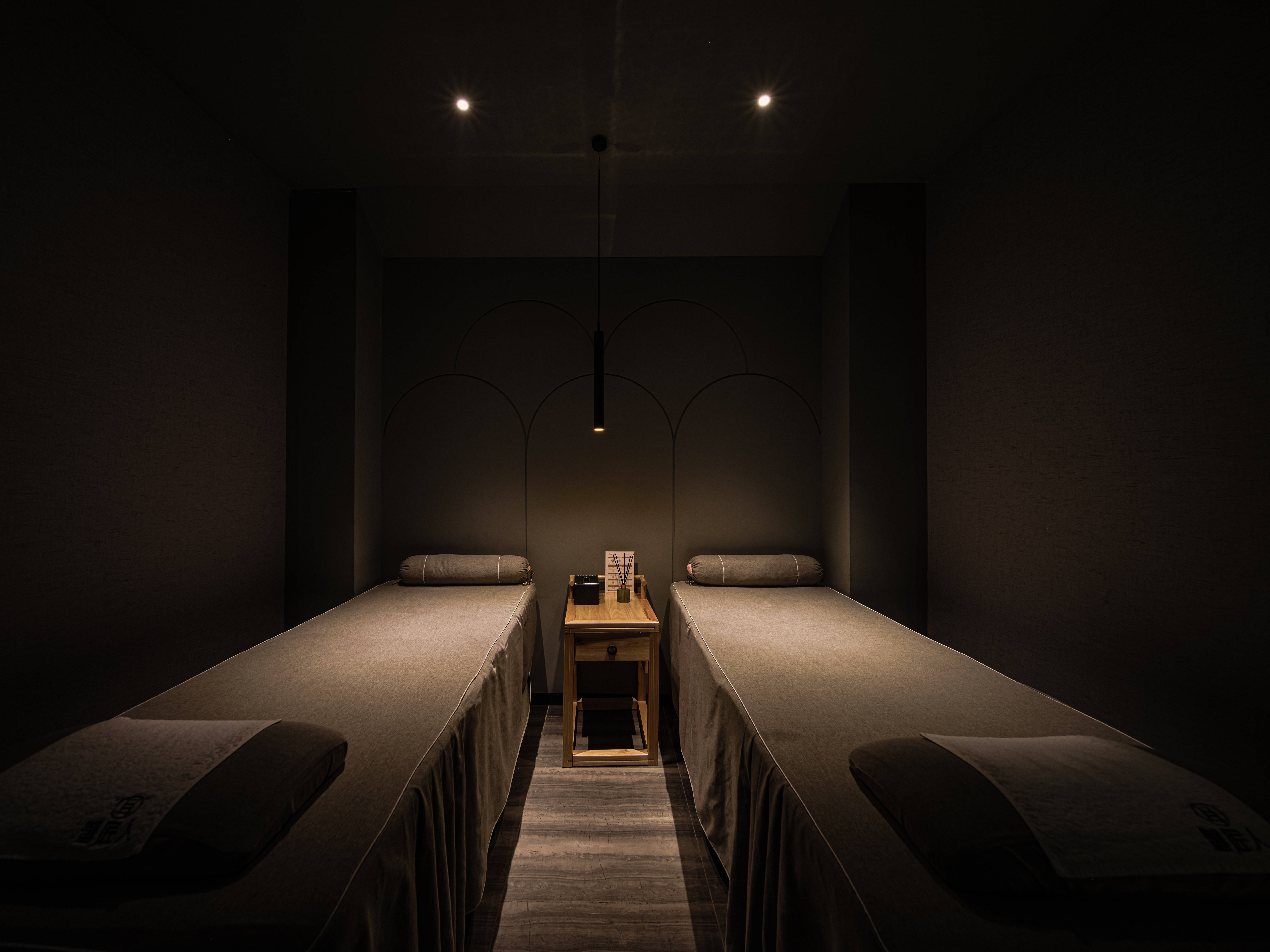 空间意境:空间中填充的黑色是一种沉浸,是铺展开来的放松,不进不退,是深邃但无需思考的成熟,点线面渐变的灯光如吉光片羽,给空间点缀柔和与温暖,层层递进又渐入佳境创造感官与身心在技师轻重节奏的手法之外另样的触感与享受