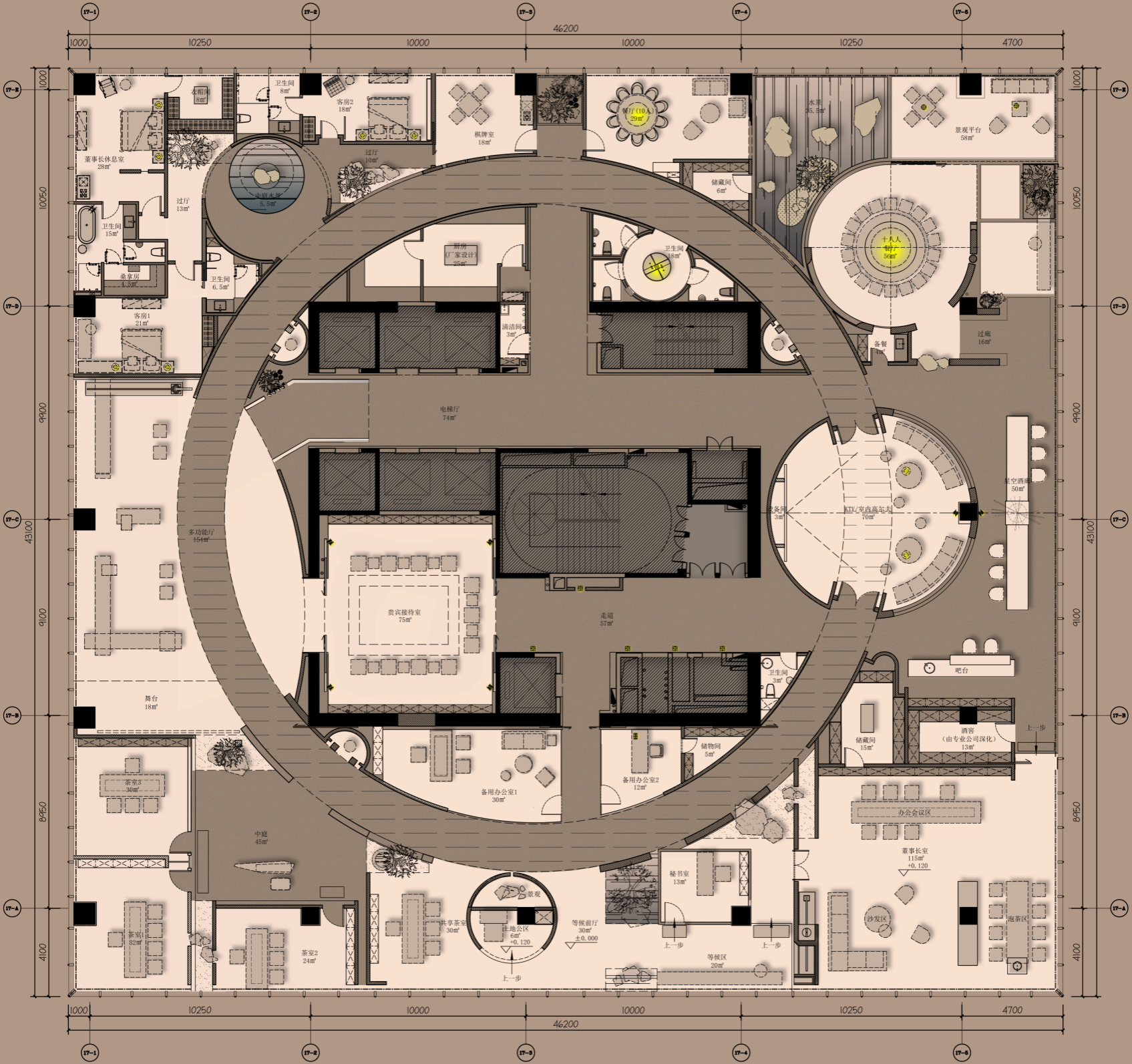 项目定位:隆恩总部办公大楼天际会所的设计策划和定位充分体现了企业精神、品牌语言以及国际化视野的融合。通过精心的空间规划、功能布局和文化融入,该大楼不仅成为了企业面向国际的一张名片,也为员工提供了舒适、健康的工作环境。
