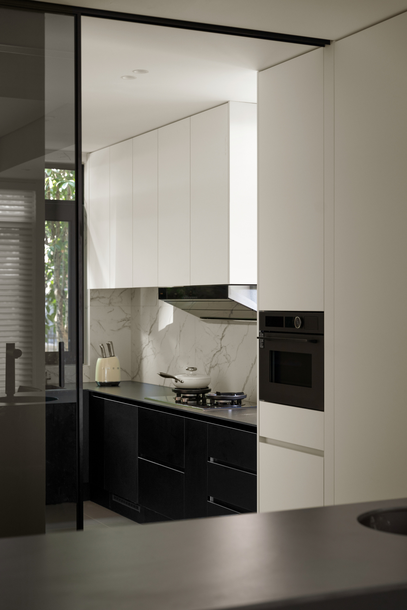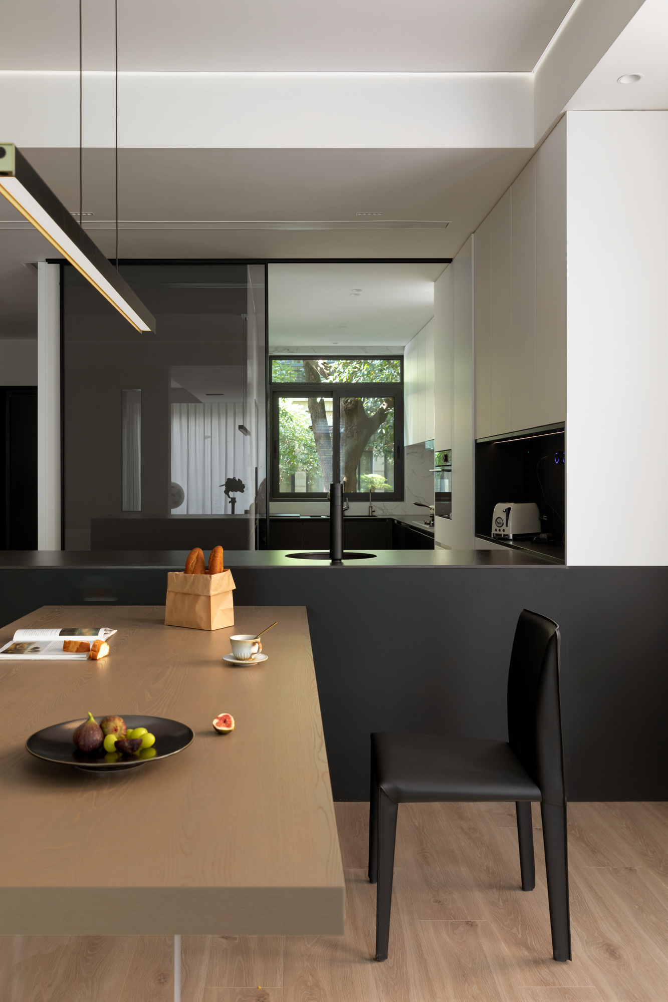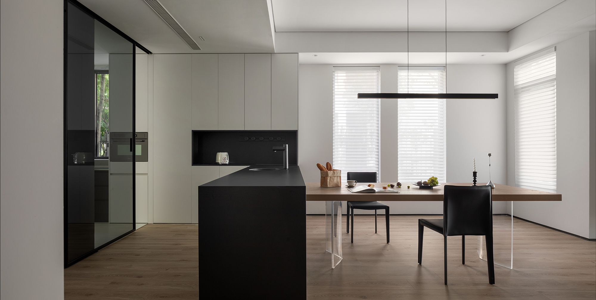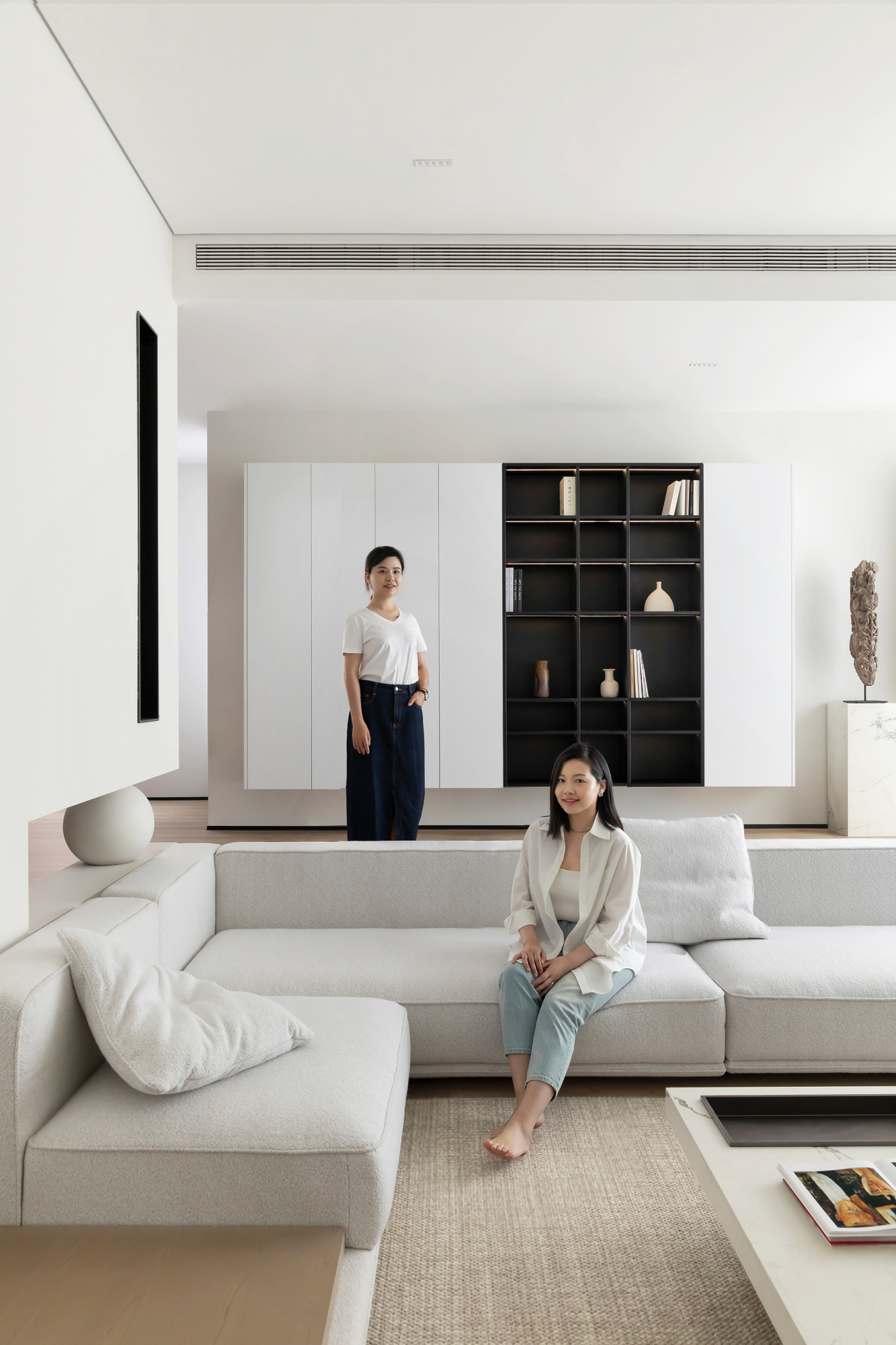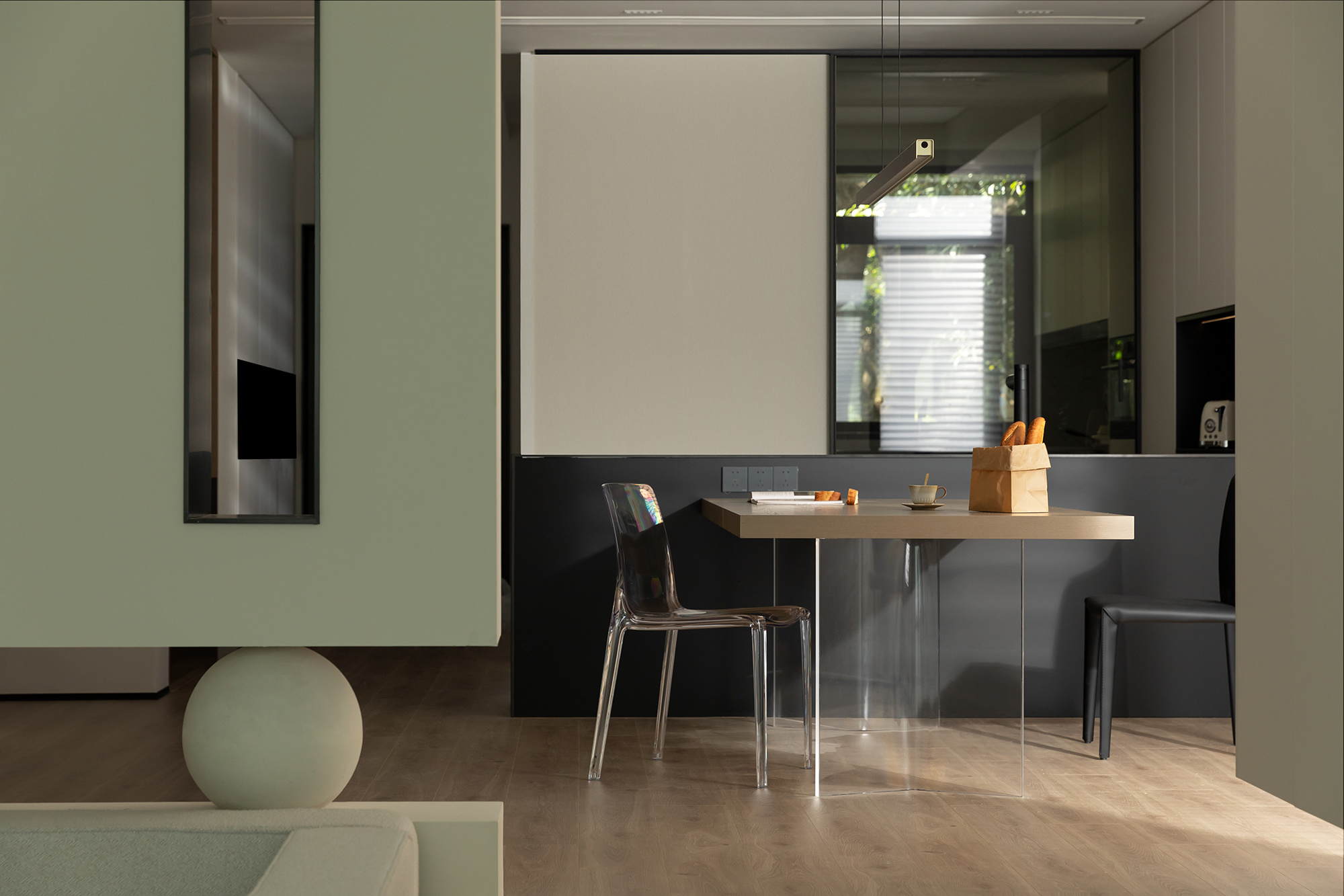 和包容性极强的极简主义一样,温馨的家也需要包容与理解、妥协与共创。在一开始设计方案快要敲定时,重视私密感的狄先生注意到家里一进门就望到客厅,不利于隐私保护,提出加一面隔断墙的要求。这和查理小姐追求一通到底的空间感、讲究通透采光的需求背道而驰。