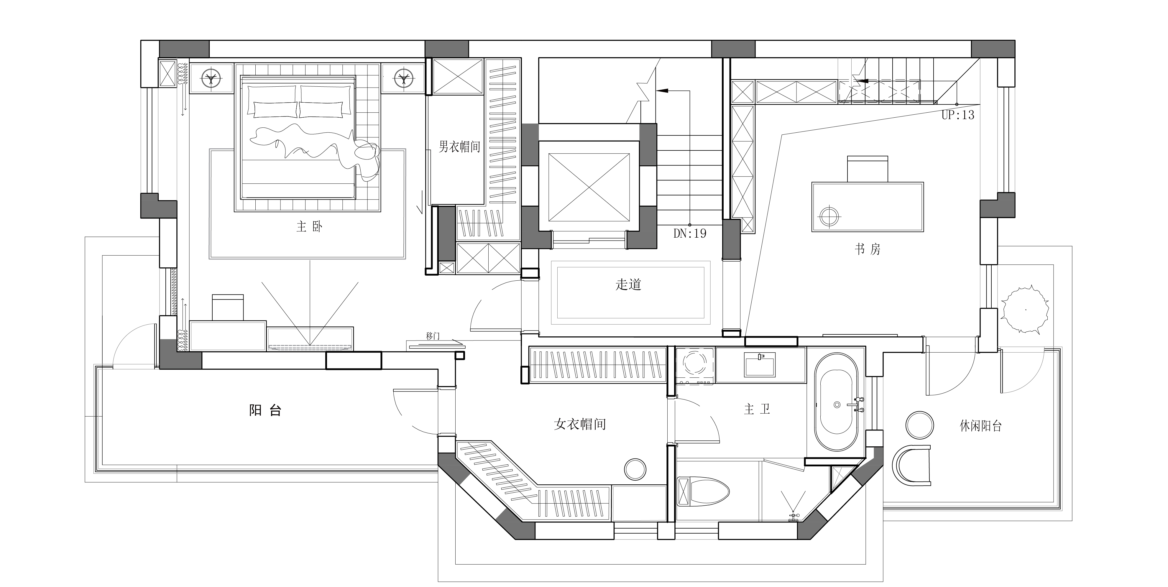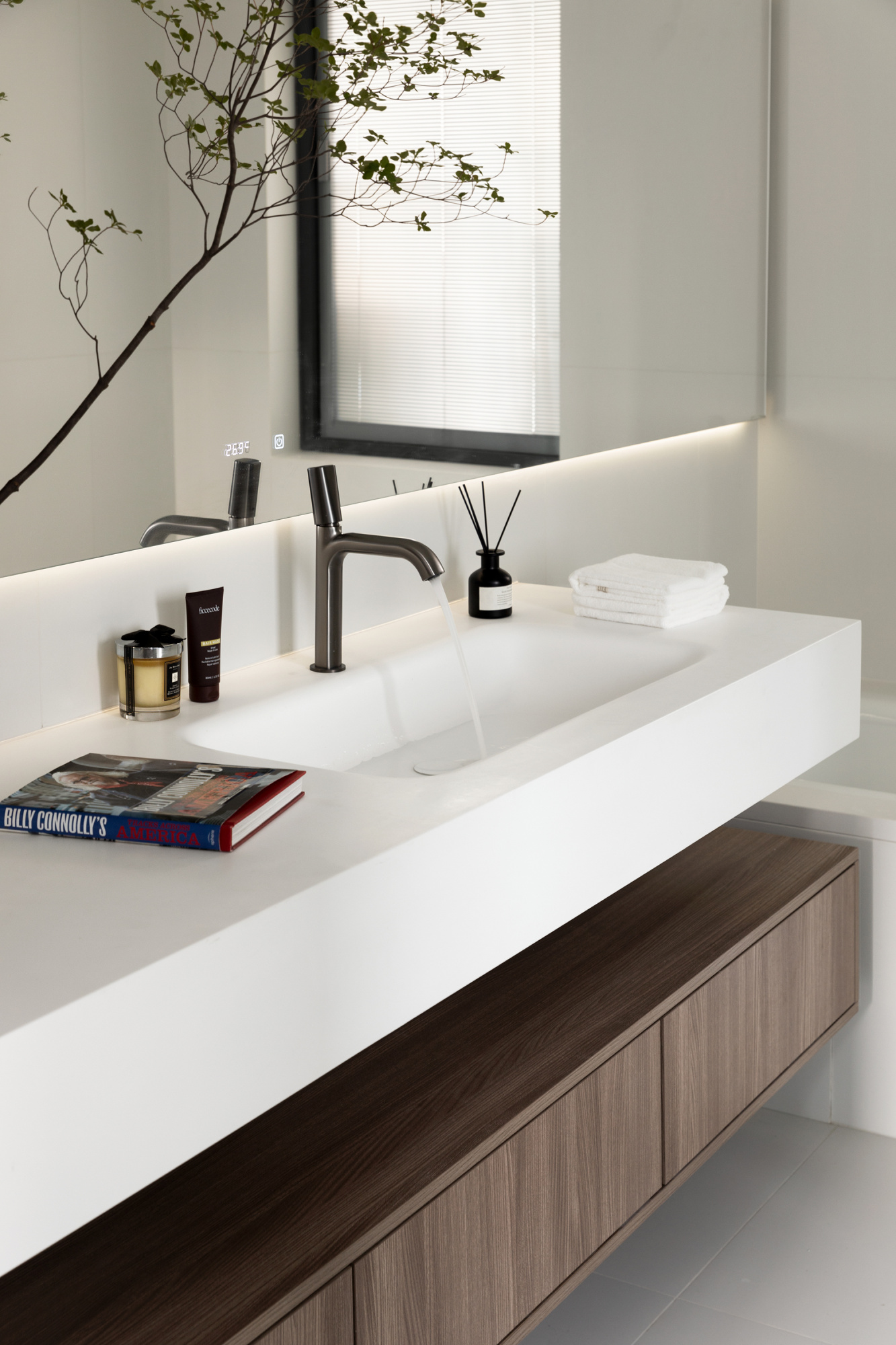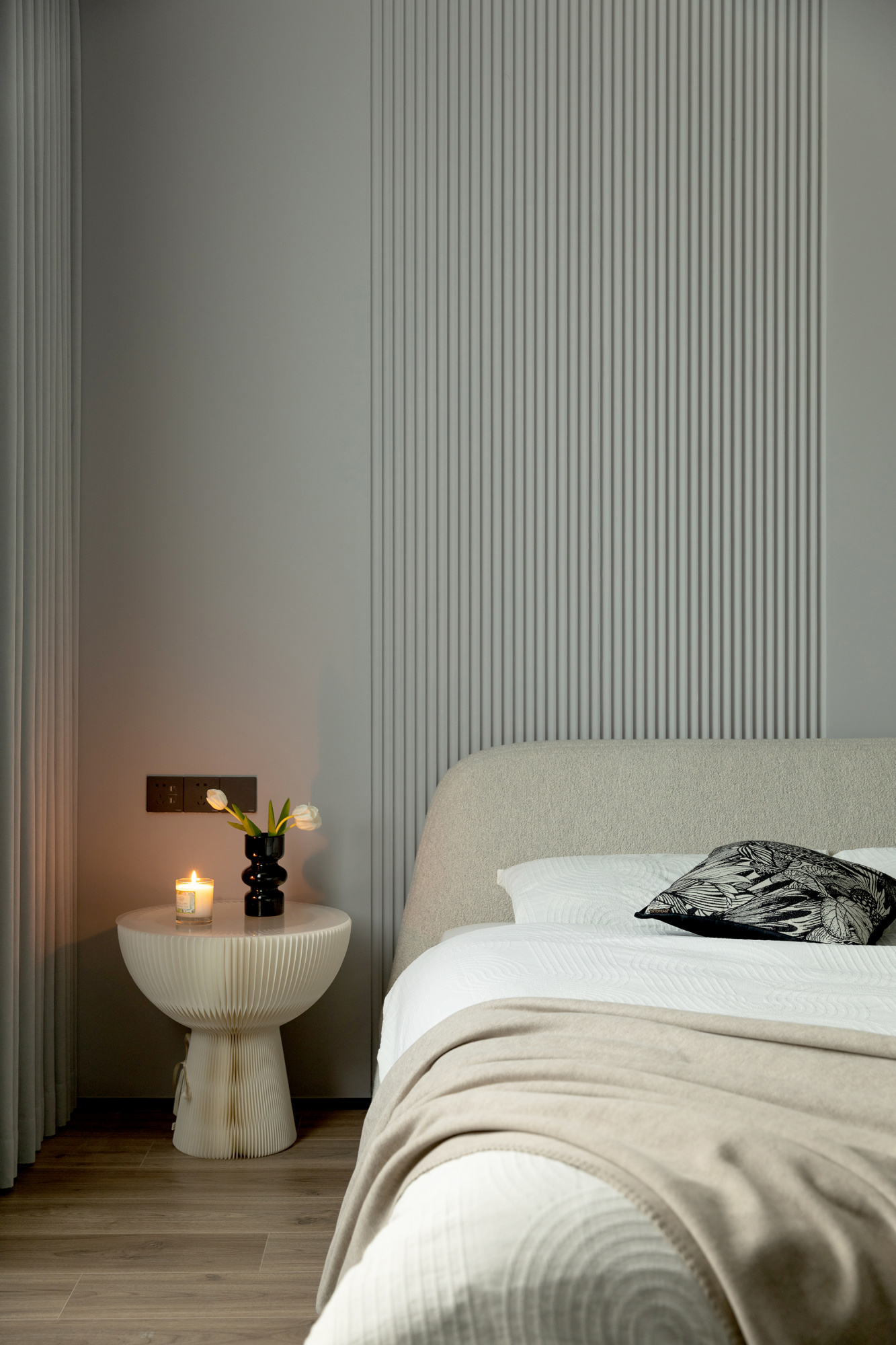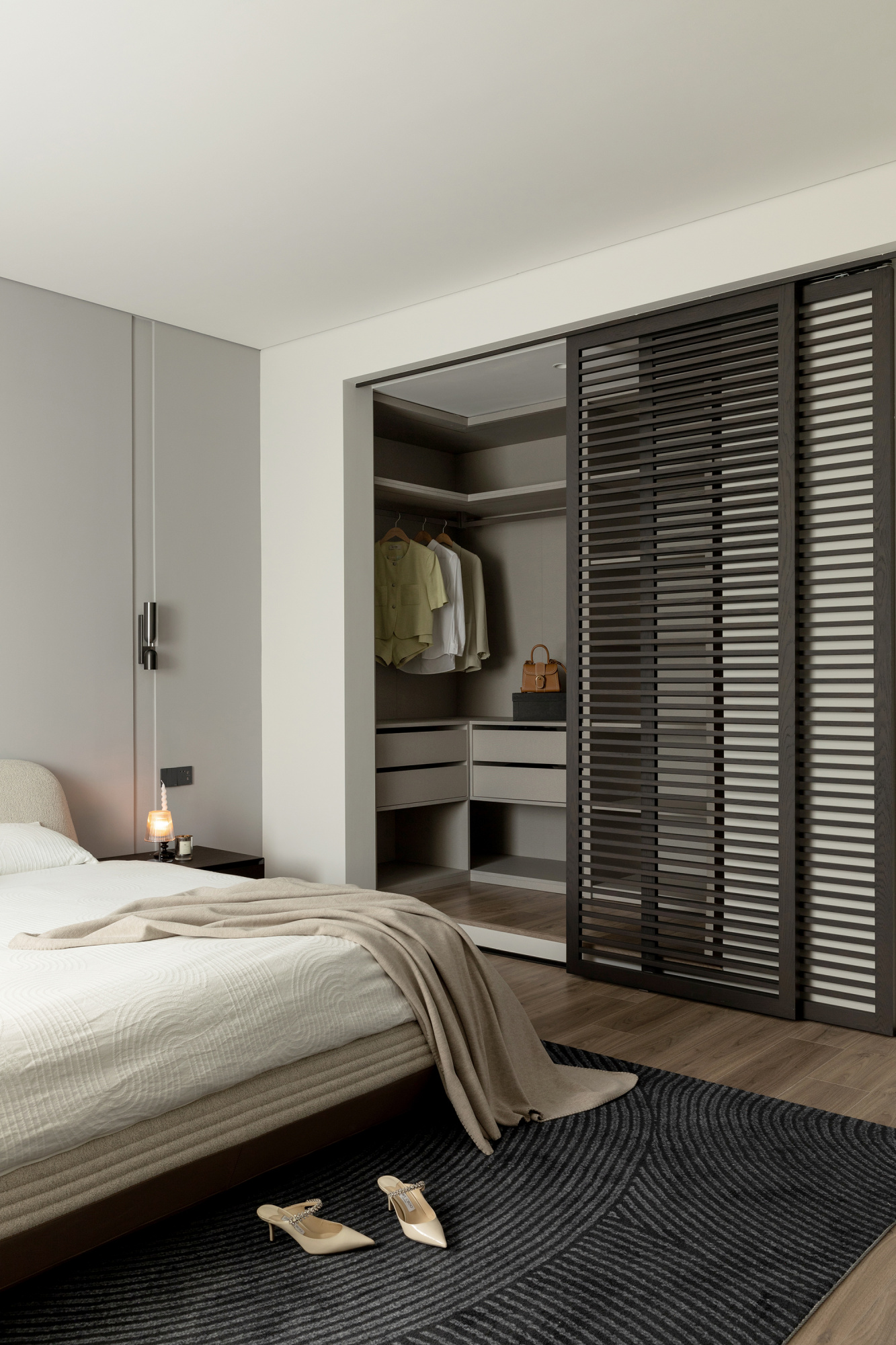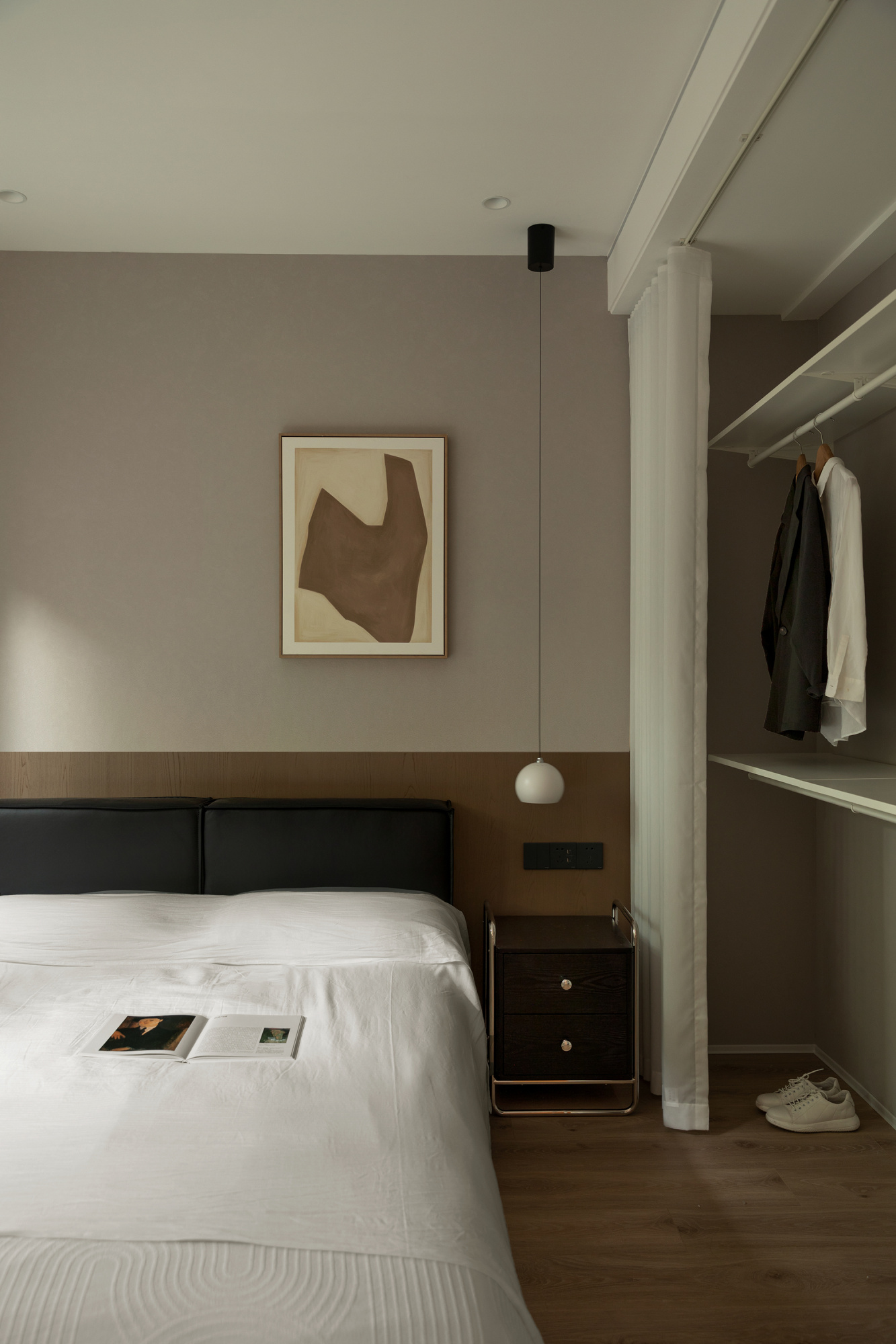 能合得来的人不一定非要性格相似、审美一致,鲜明的反差有时反而能碰撞、融合出意想不到的趣味。浪漫的查理小姐情感细腻,憧憬一个艺术博物馆般的家,线条简约高级,氛围宁静愉悦,能长长久久地沉淀美好回忆,是住上15年也不觉过时乏味的家。而“钢铁直男”狄先生以理性思维审视空间结构,重视功能划分和空间收纳,强调隐私性。