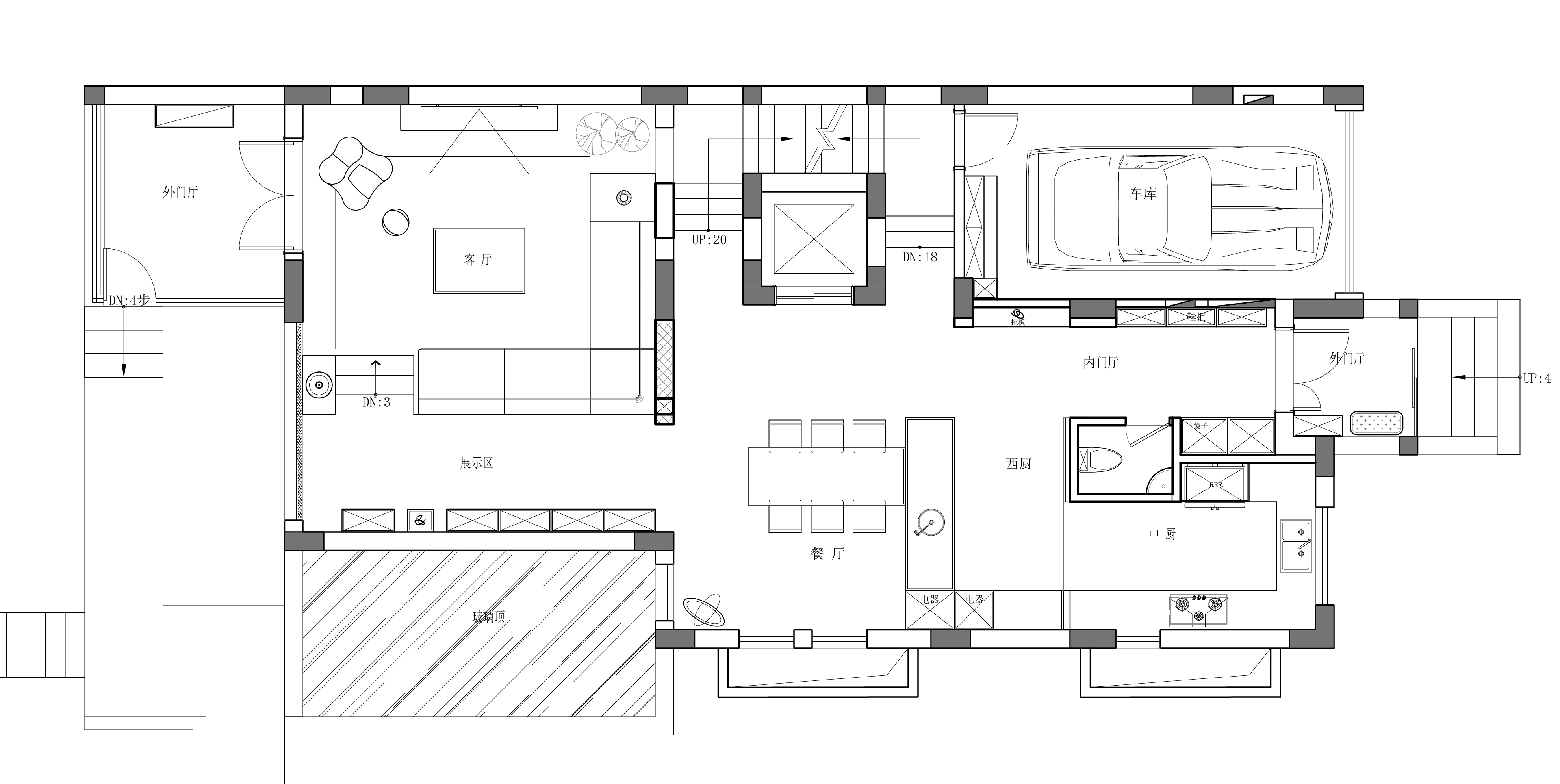 对于一个家来说,空间结构如何与积极情绪产生联结互动,是构筑愉快记忆点的关键。设计师抓住房屋原有的下沉结构条件,在家打造围合式的半开放下沉客厅。