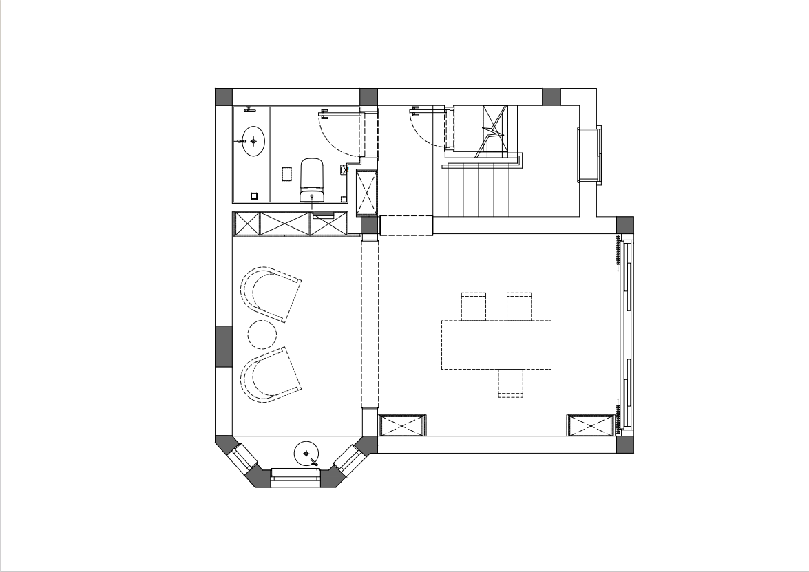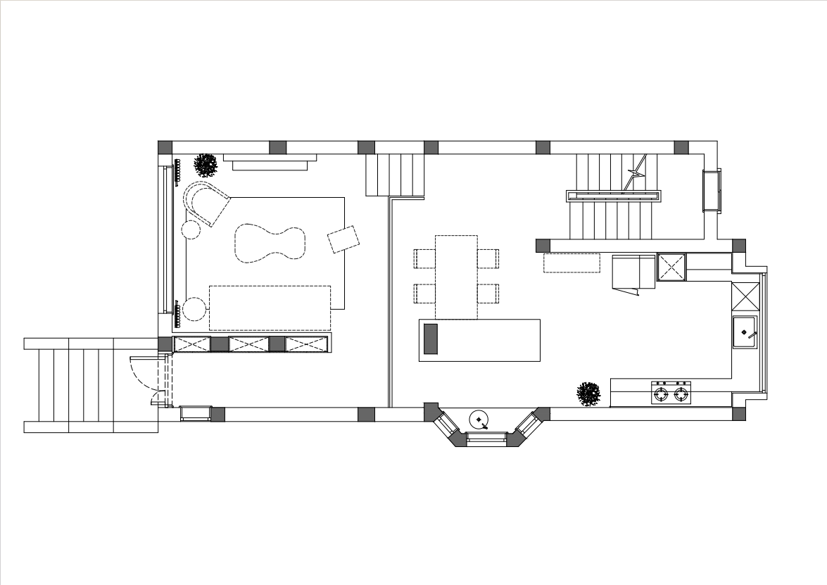 空间布局:空间布局的创新点体现在错层结构和区域的巧妙分隔上。错层设计不仅使客厅和餐厅之间形成自然的高低差,增加了空间的层次感,还使得两个区域既独立又相互联系,创造出一种开放而又私密的氛围。客厅区域没有电视,而是通过温馨的软装布置和自然景观的引入,使得这个区域充满了生活气息与舒适感。厨房餐厅设计则采用全开放式布局,三面开窗让自然光充满整个空间,岛台巧妙包裹了承重柱,同时也是厨房的主要收纳区域,这样既美观又充分利用了空间。设计中的多重空间划分,使得不同功能区之间既有明确的界限,又不失整体的流动感,创造出舒适且富有趣味的生活空间。