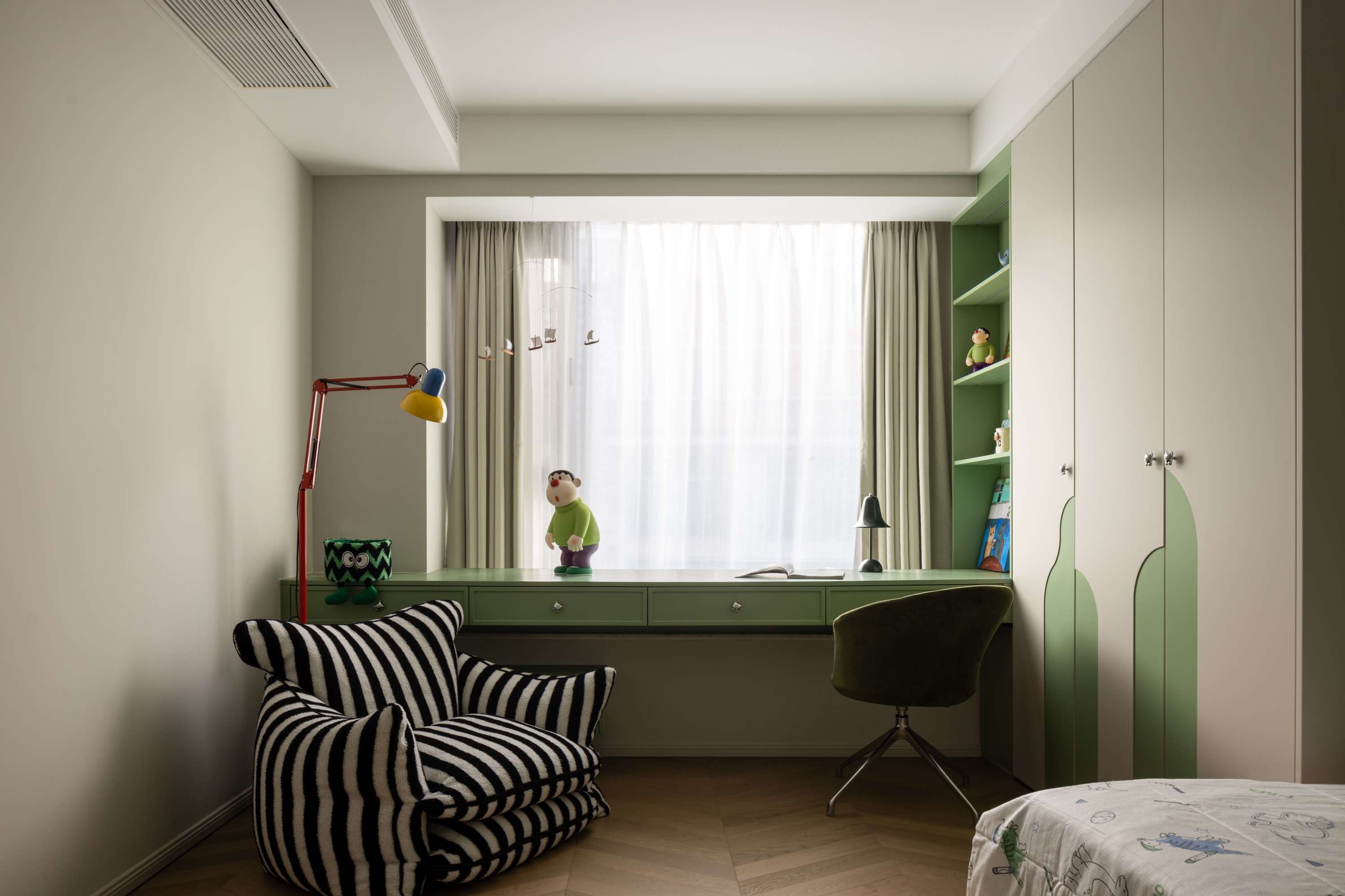 用户体验:自家投入使用后,业主表示这个家已经超出了他们的期待,特别是它赋予他们一种度假的生活感受。每天回到家中,经过玄关的宁静转换,他们能够完全放松身心,远离外界的压力。客餐厅区域的设计带来了非常愉悦的体验,尤其是在晚餐时分,三面开窗带来的自然余晖和温暖的壁炉为家人提供了一个舒适的聚集空间。厨房的开放式布局和岛台的巧妙设计,使得家庭成员之间的互动更加方便和亲密。主卧的莫兰迪系色调让他们在疲惫的工作后能得到充分的休息和放松,而孩子们的房间则被设计得富有趣味与温馨,既满足了孩子们的需求,也给他们创造了一个安全、愉快的成长空间。整体而言,业主对这个室内设计充满了喜爱,他们感受到了设计所带来的情感共鸣和生活品质的提升。家不再是单纯的栖息地,而成为了一个可以让全家人都得到放松和满足的理想空间。在这个“真实世界的乌托邦”中,业主找到了属于他们的心灵栖息地,生活的每一刻都充满了温暖、宁静和幸福。