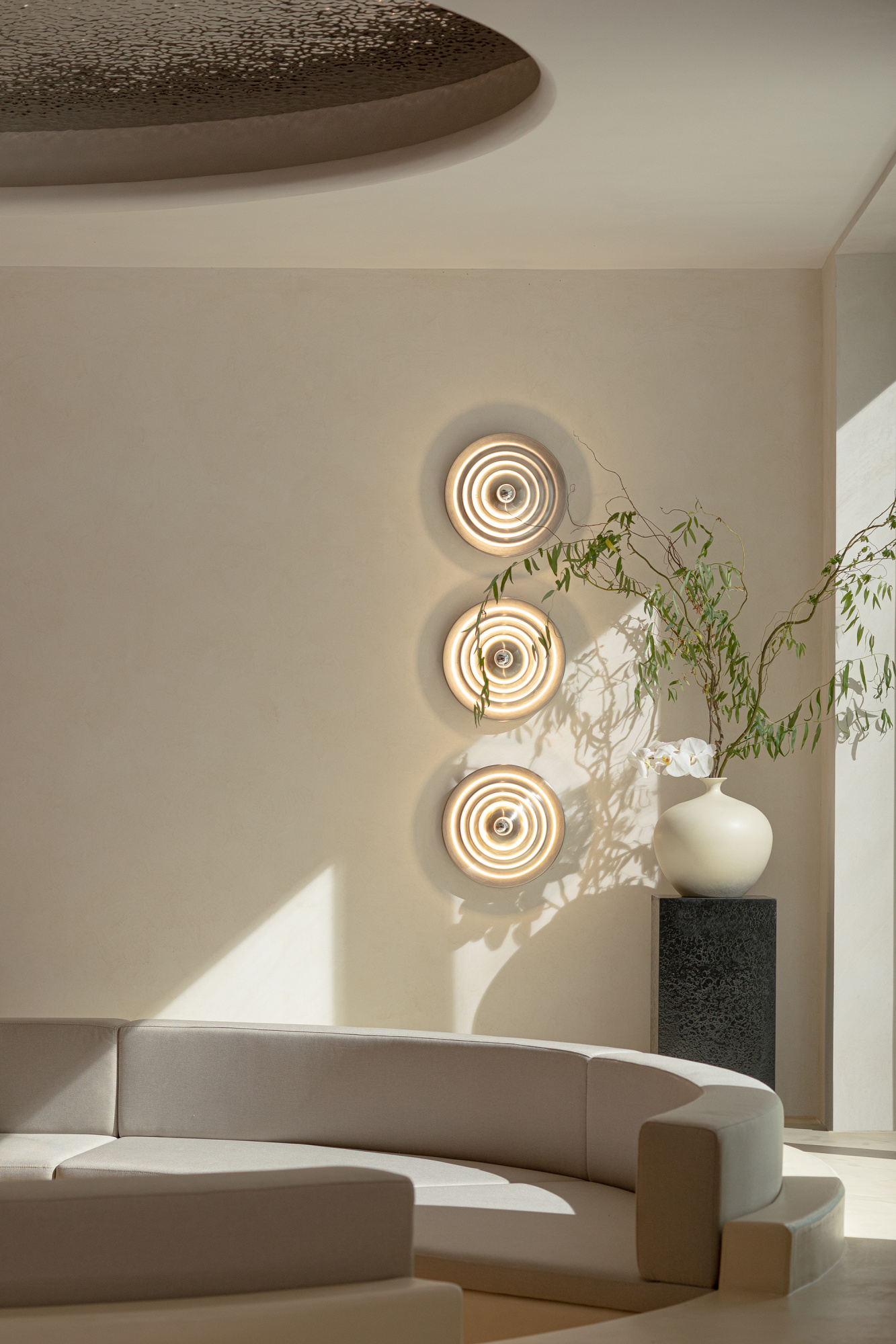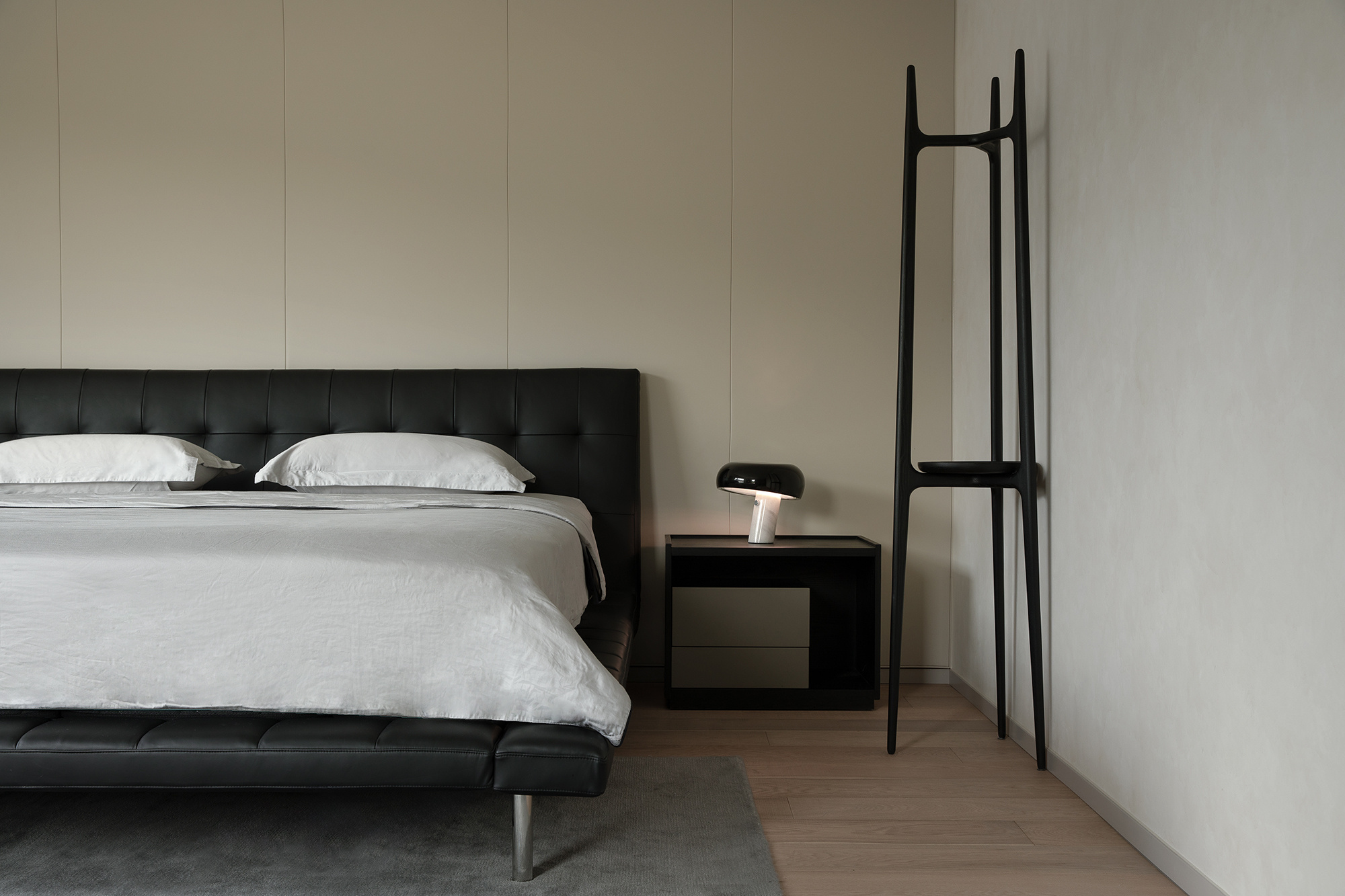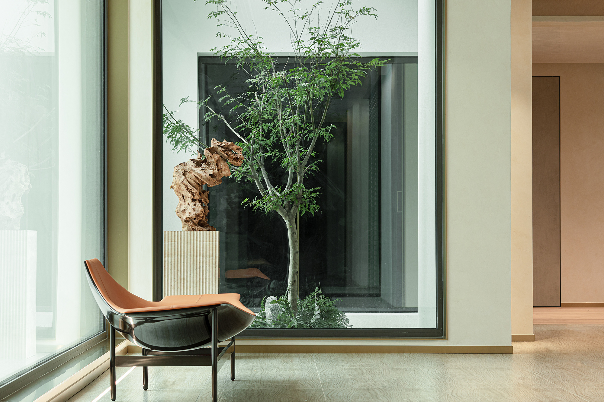 从窗口向外望去,世界一片空明,树梢的绿意鲜嫩可爱,地上落了些尚未打扫的树叶,穿过一片树顶,是更远的天空。回望眼前,亲密的卧室里,身体参与每一处空间的感受,皮质光滑,纱帘轻柔,地毯温暖,一盏灯就可以安定人心。在这里,需要放下全部,用身体、情感和心灵去“观看”,才能真正获得独属于自我的时刻。