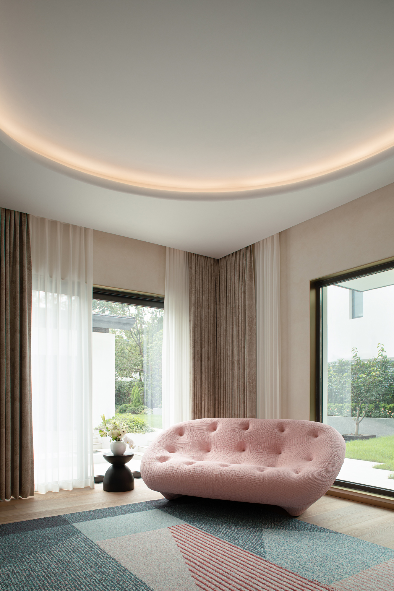 因为业主极其重视家庭教育与陪伴,设计师在光线最好的区域为其打造了家庭室。对于热爱音乐,从事音乐教育的女主人来说,音乐展现了极度丰盛,由辉煌的声音与景象组织而成的世界。