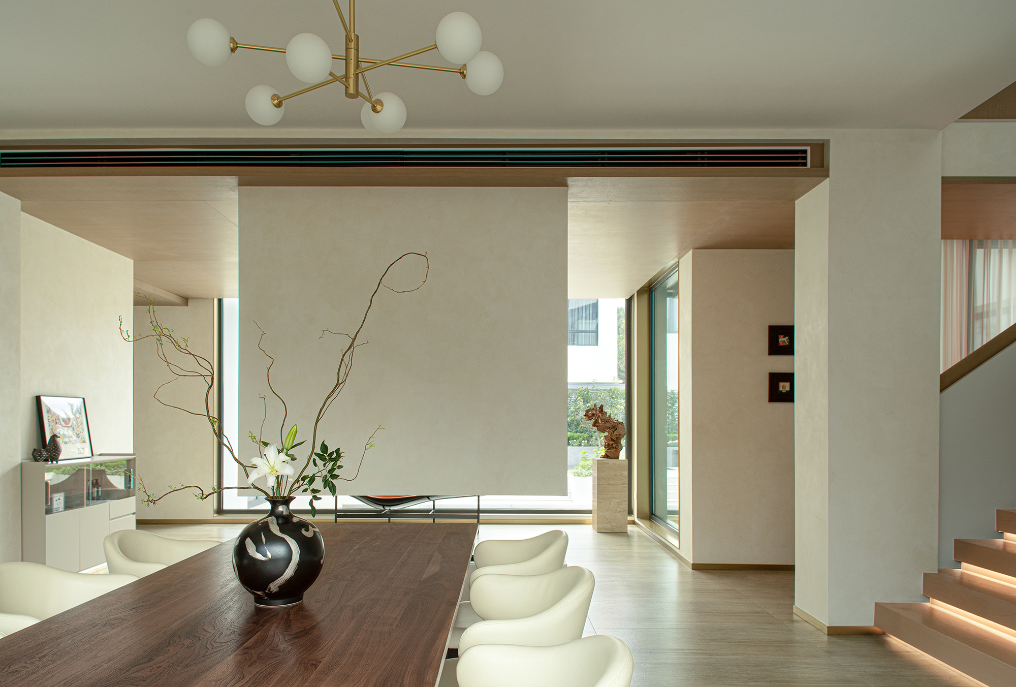 设计团队希望这一处住宅成为生活的转换器,居住者能远离城市喧嚣,享受自然的滋养,实现身心的真正松弛。在功能上满足当代人的需求,节奏舒缓、整体连贯,内外和谐,在每一片植物每一缕风中,以最细腻和微妙的方式,感知人与空间共同生长。