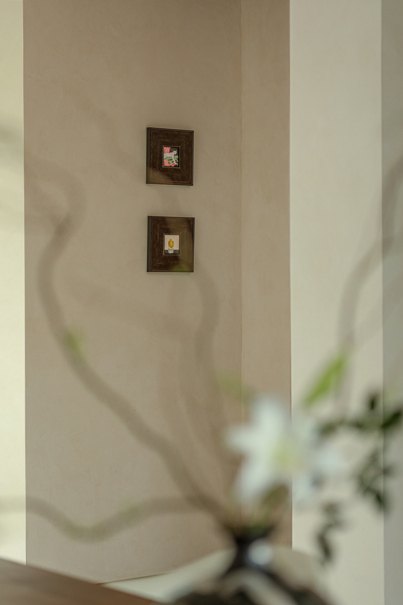 入户正对着的玄关利用造景的方式与户外形成互动,在玻璃盒子里种下了一颗枫树,生命的气息扑面而来,鸟儿从顶部悠闲散步,有时候飞进来一探究竟,又瞬间飞走,只剩下枫树枝条晃荡几下。