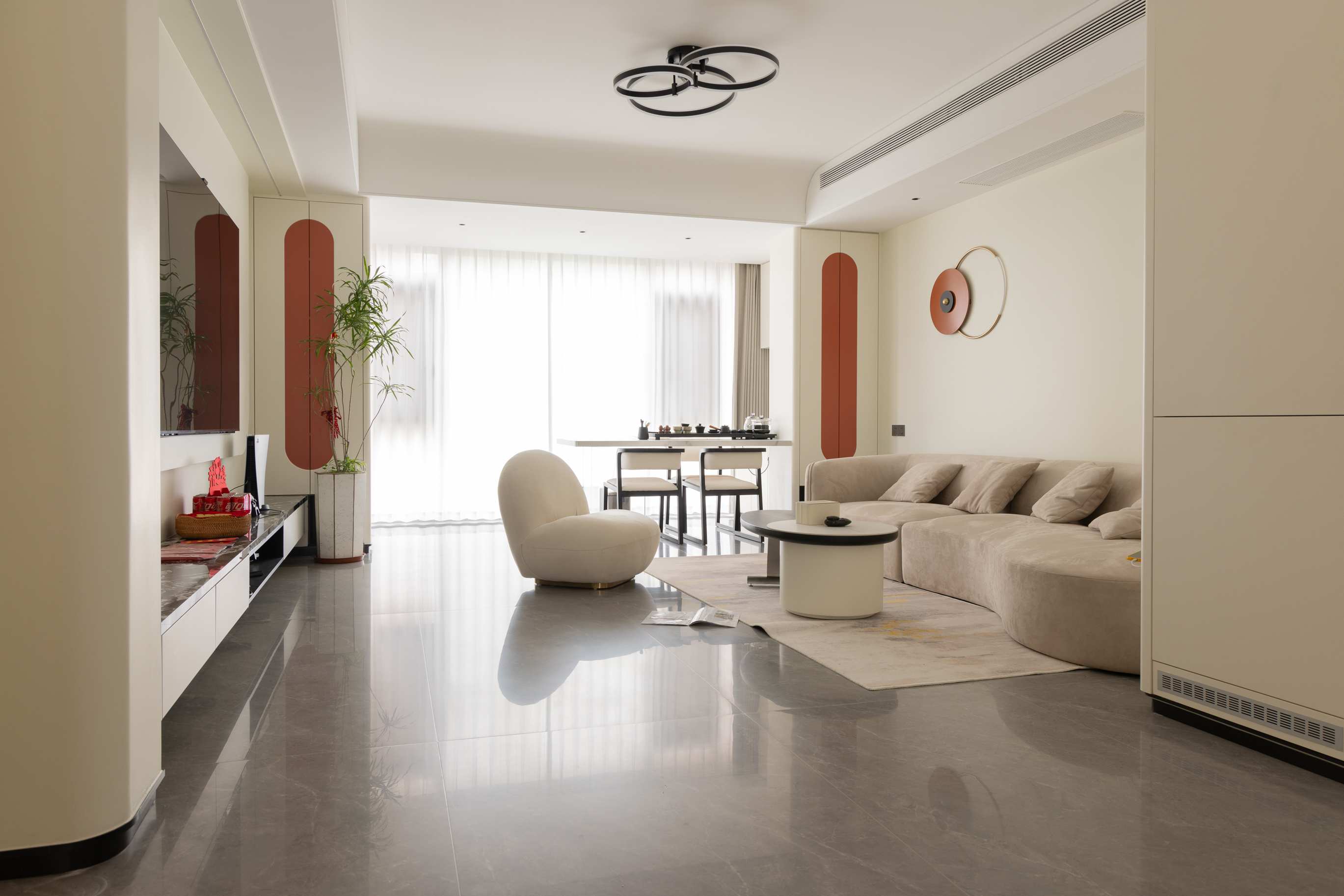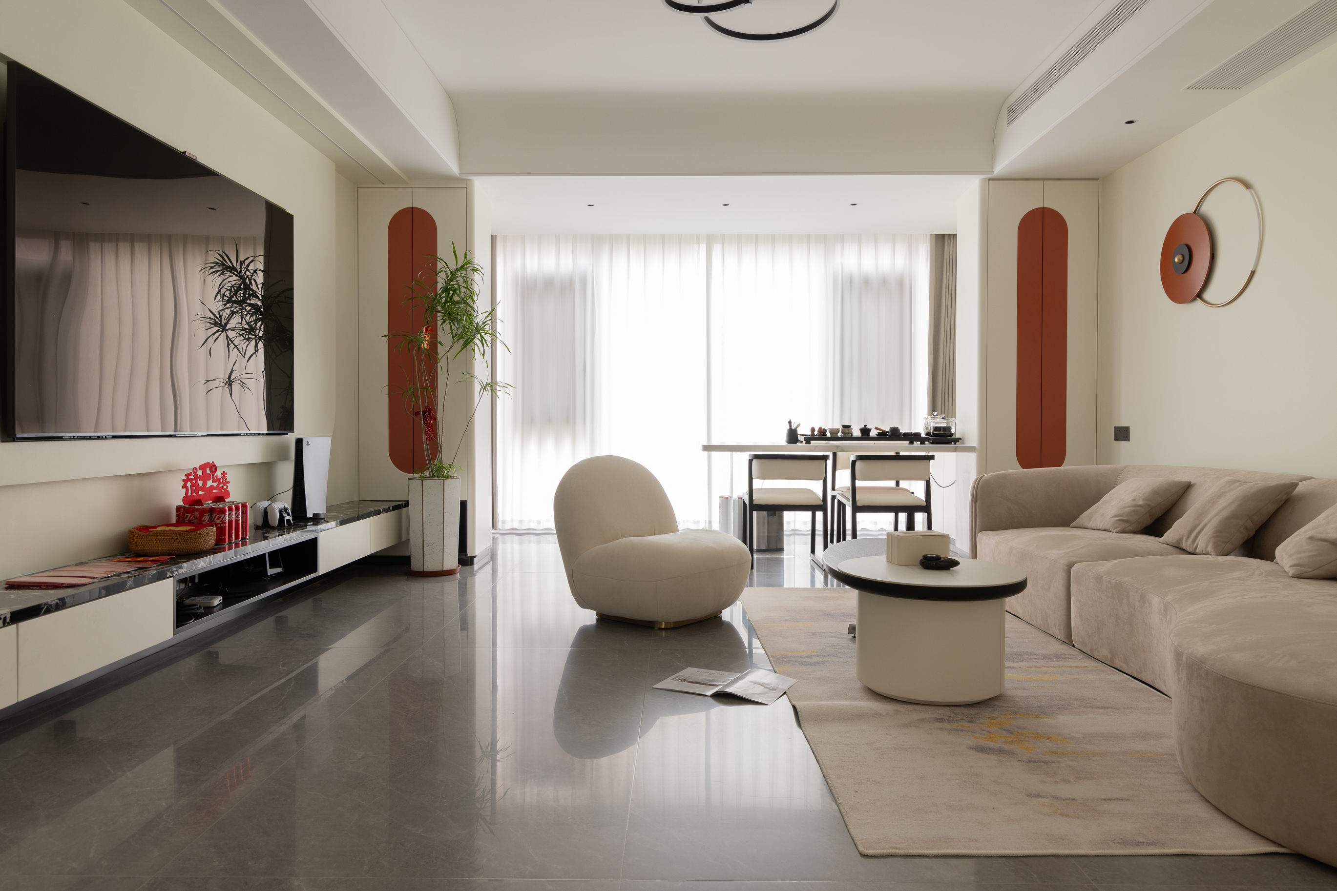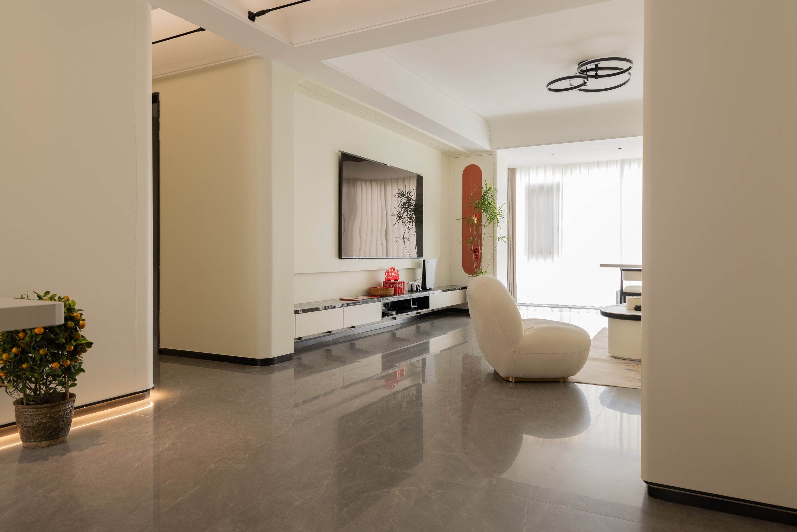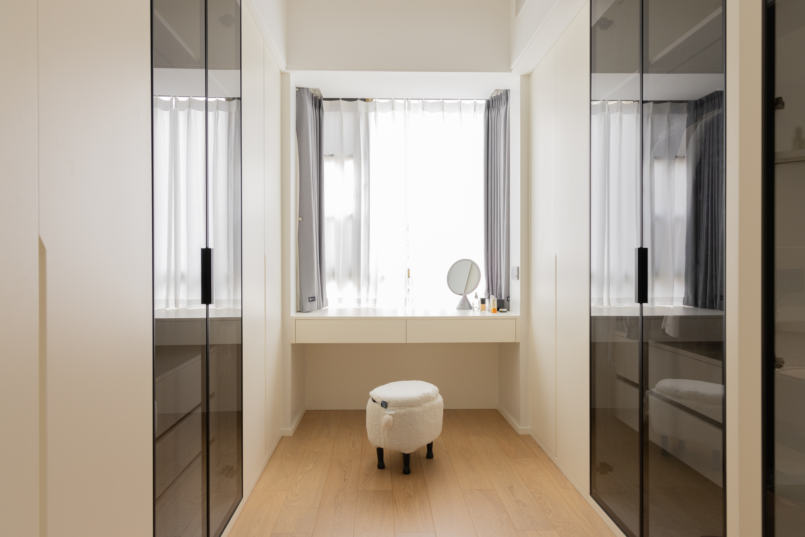空间意境:通过装饰柜子和简洁干净的方式修饰承重墙,用色彩点缀空间