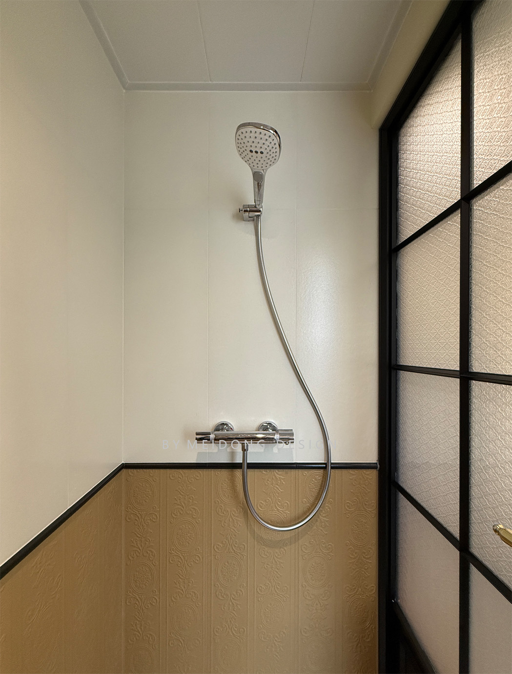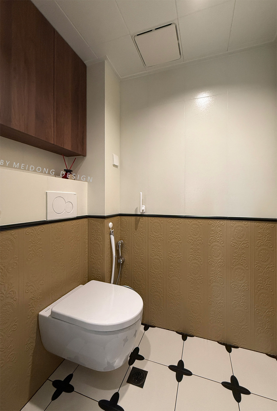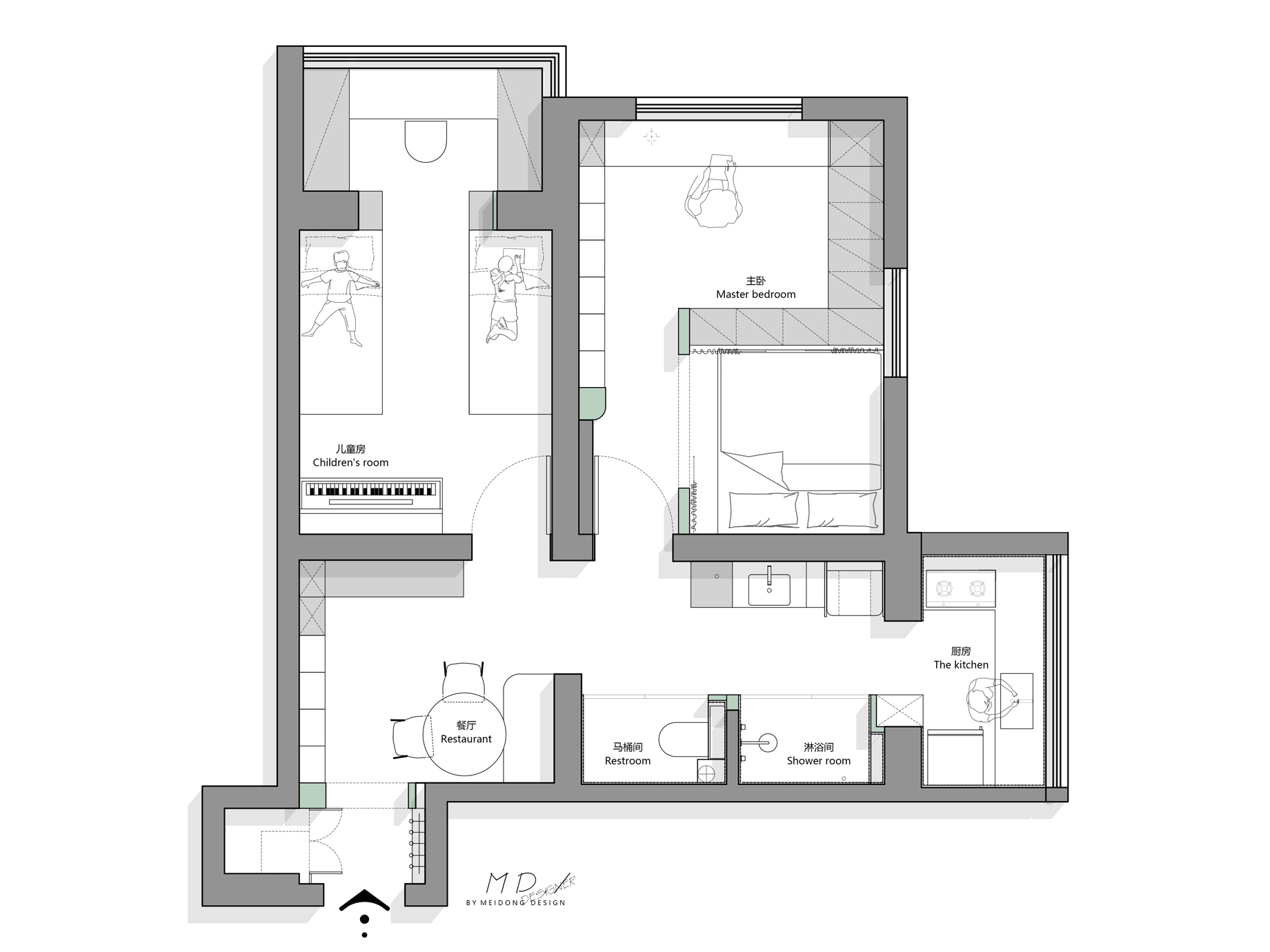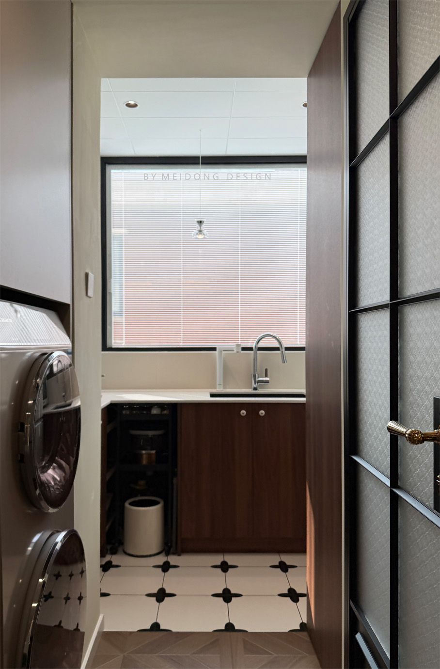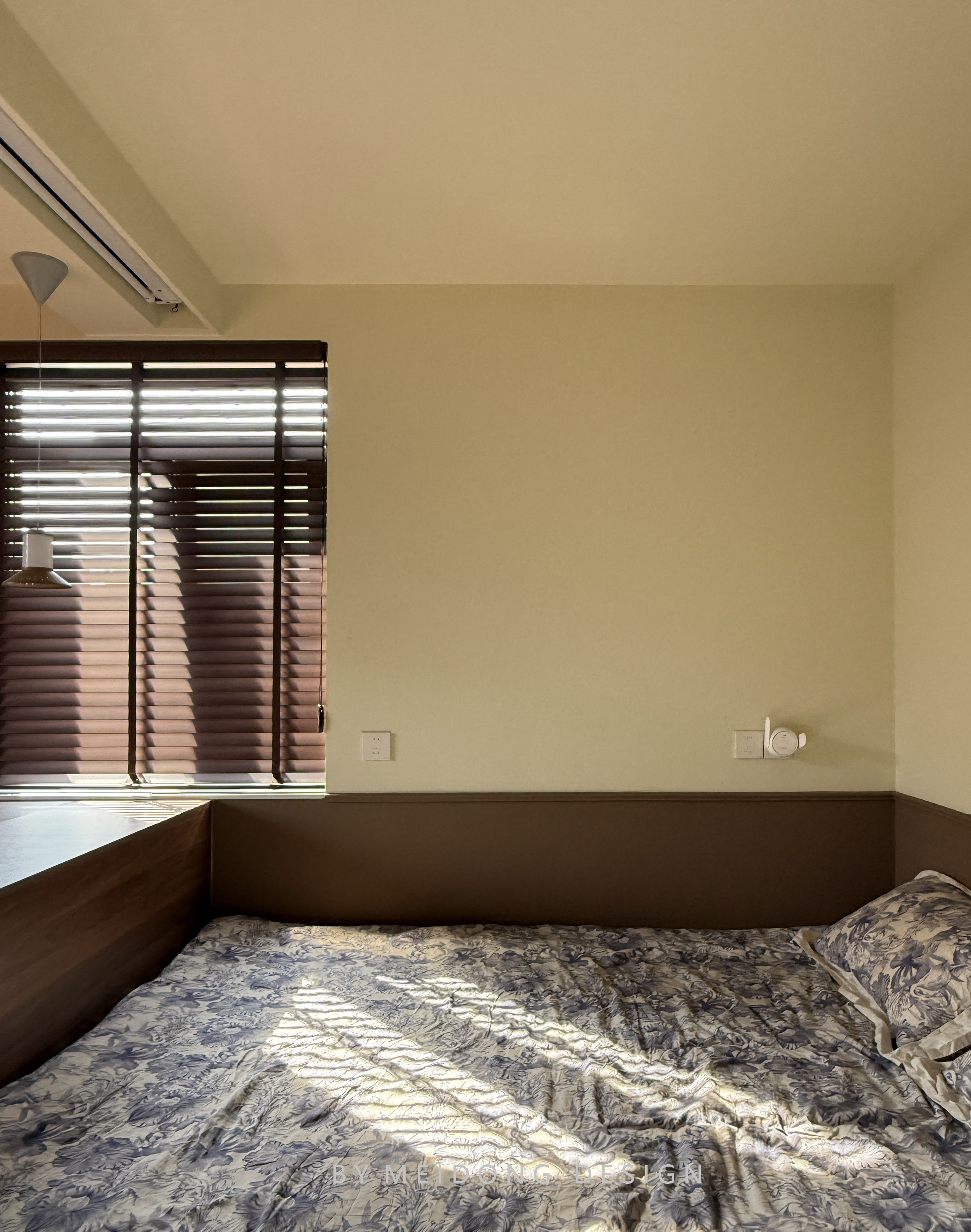 改善老破小传统布局,实现了卫生间三分离的布局,更适合一家四口的使用需求,用金属门作为分隔,省掉了墙体的厚度,让空间尺度更加舒适