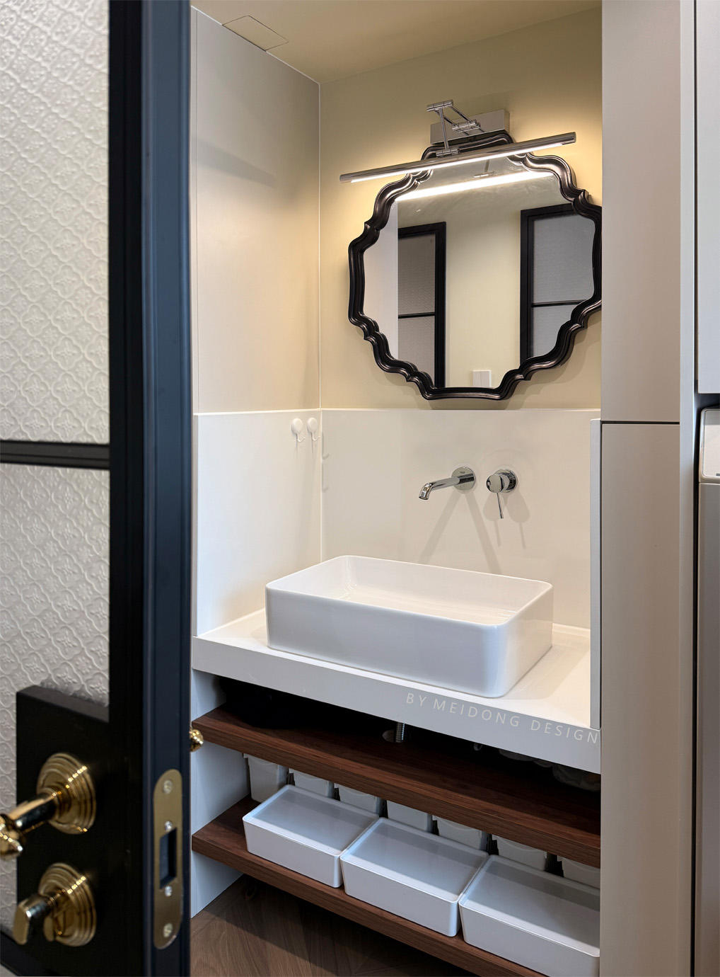 解决了屋主原有对老破小改造的顾虑,从实用性到美观度都非常符合屋主的要求,定制柜体完全按照屋主原有收纳盒的尺寸逐一调整尺寸,日后使用更加方便便捷