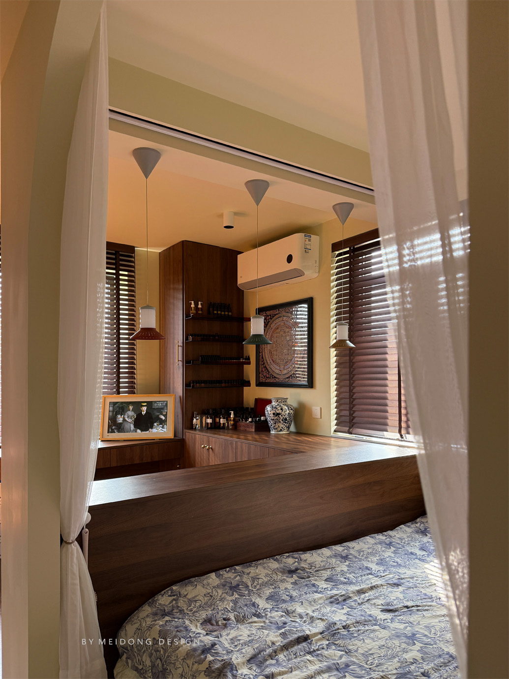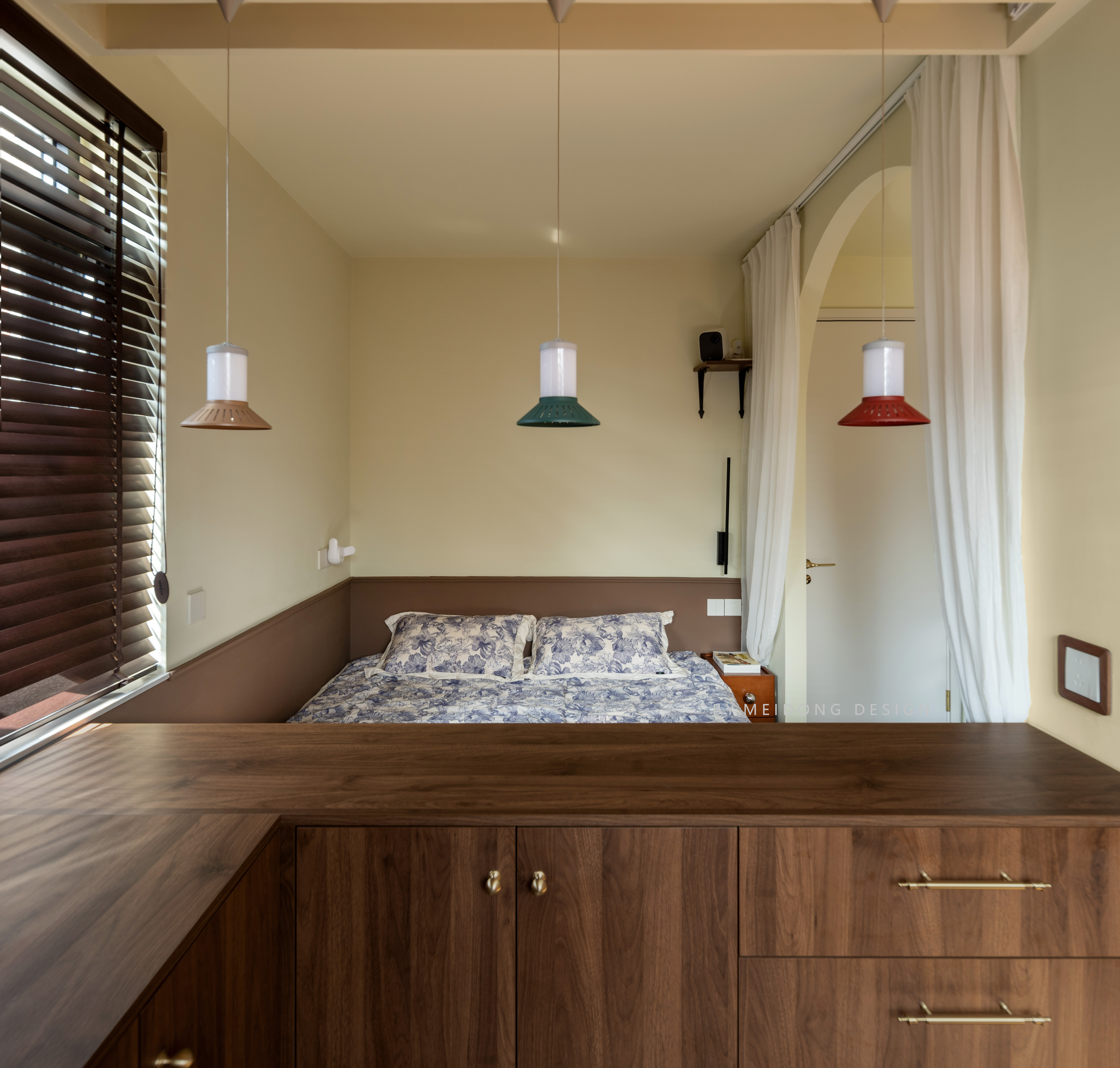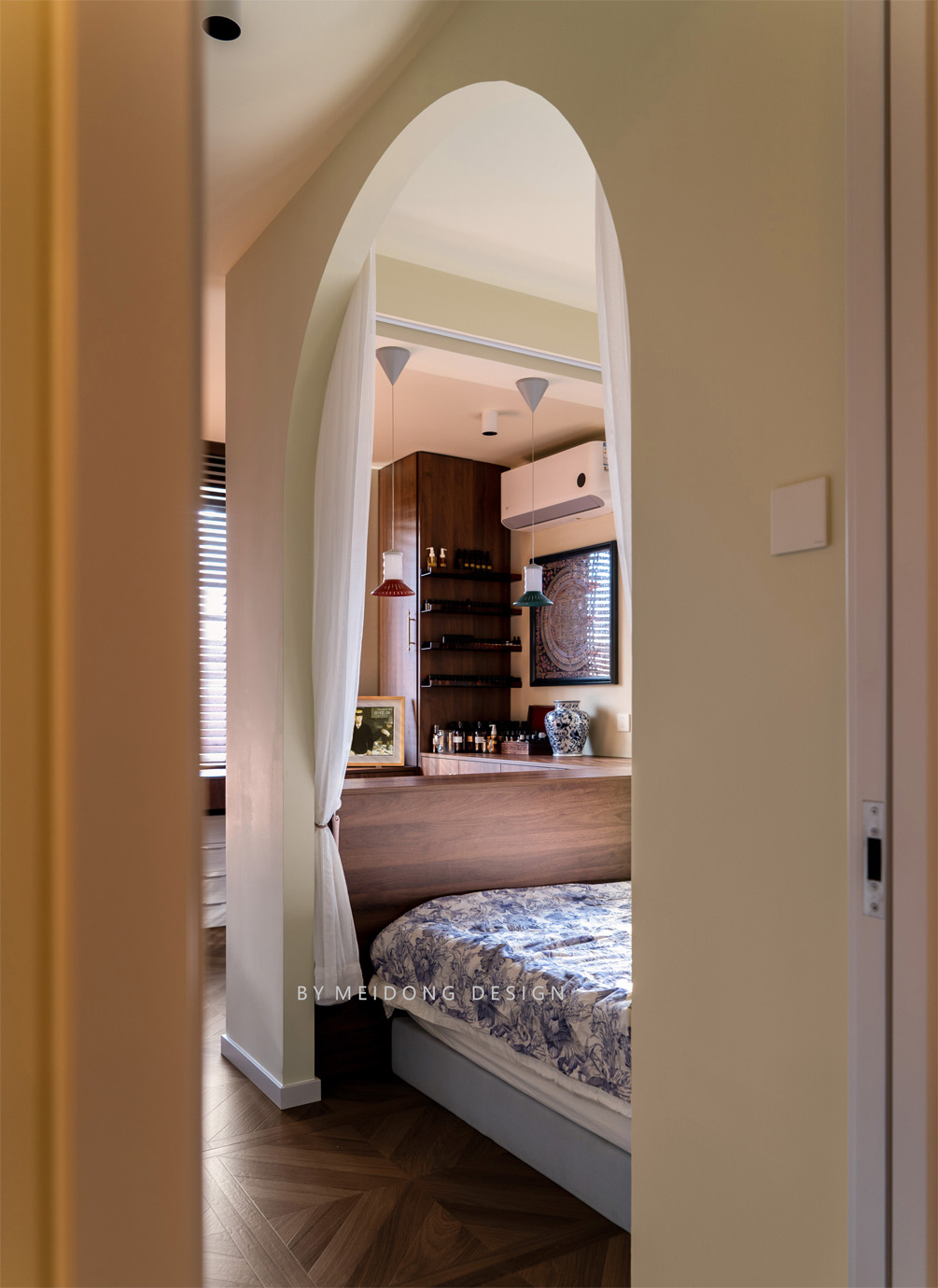 较大的卧室通过造型隔断划分空间,提升空间利用率