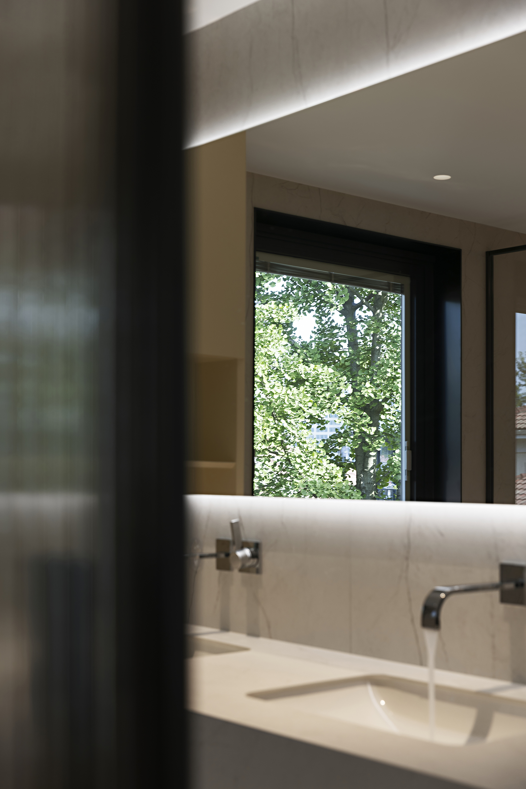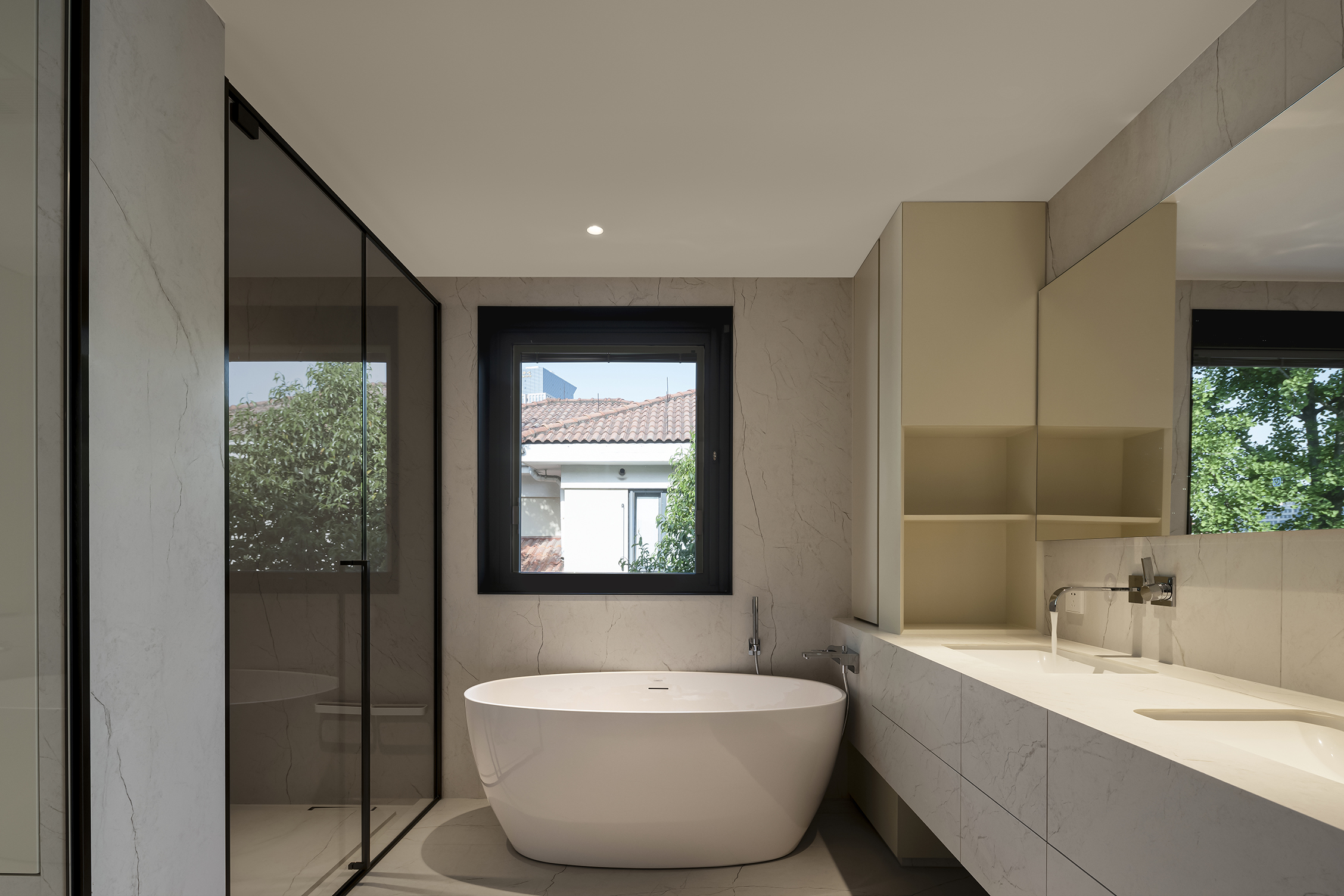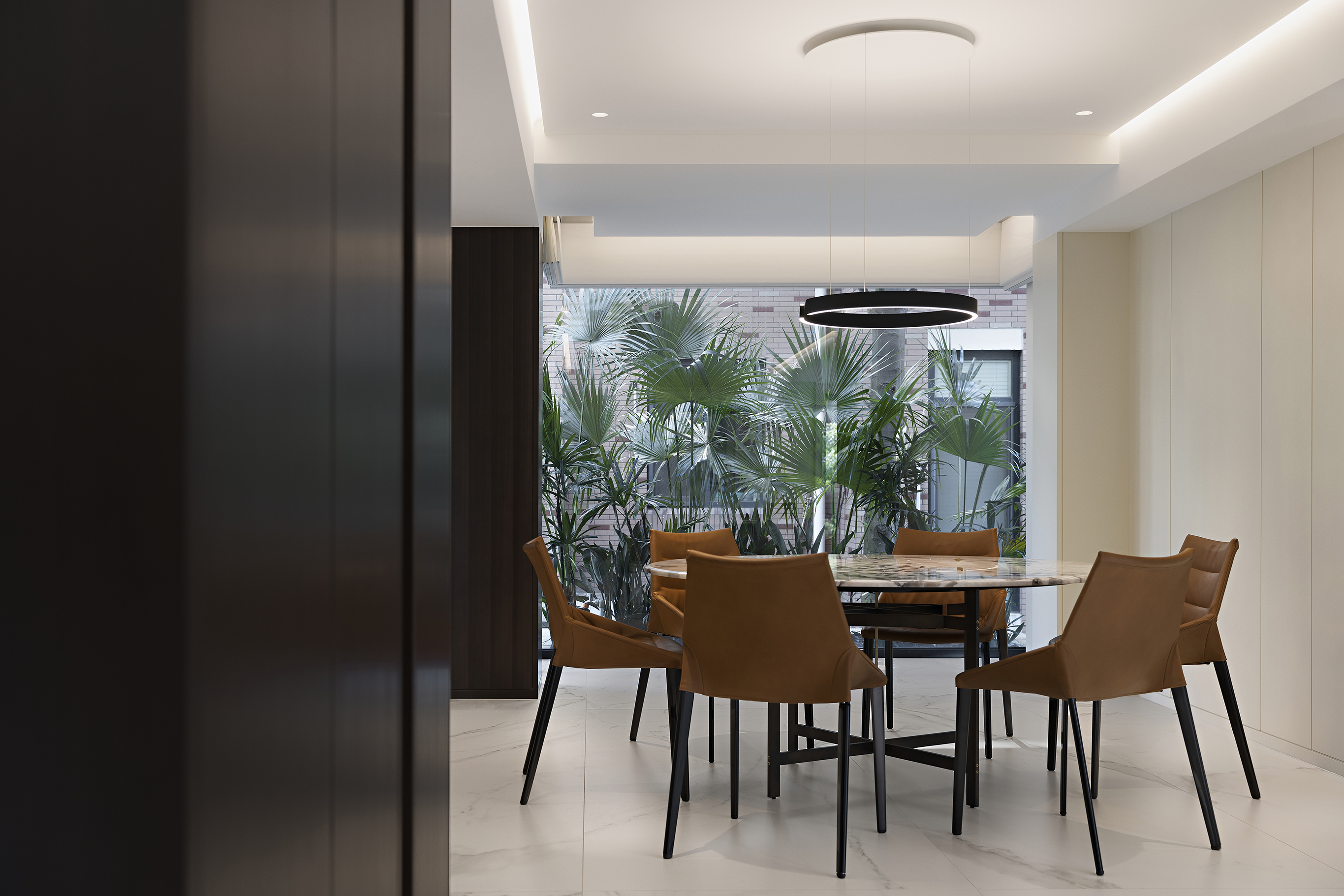 去风格化,通过大面积的通透玻璃将自然光线引室内,享受早晚、感受四季