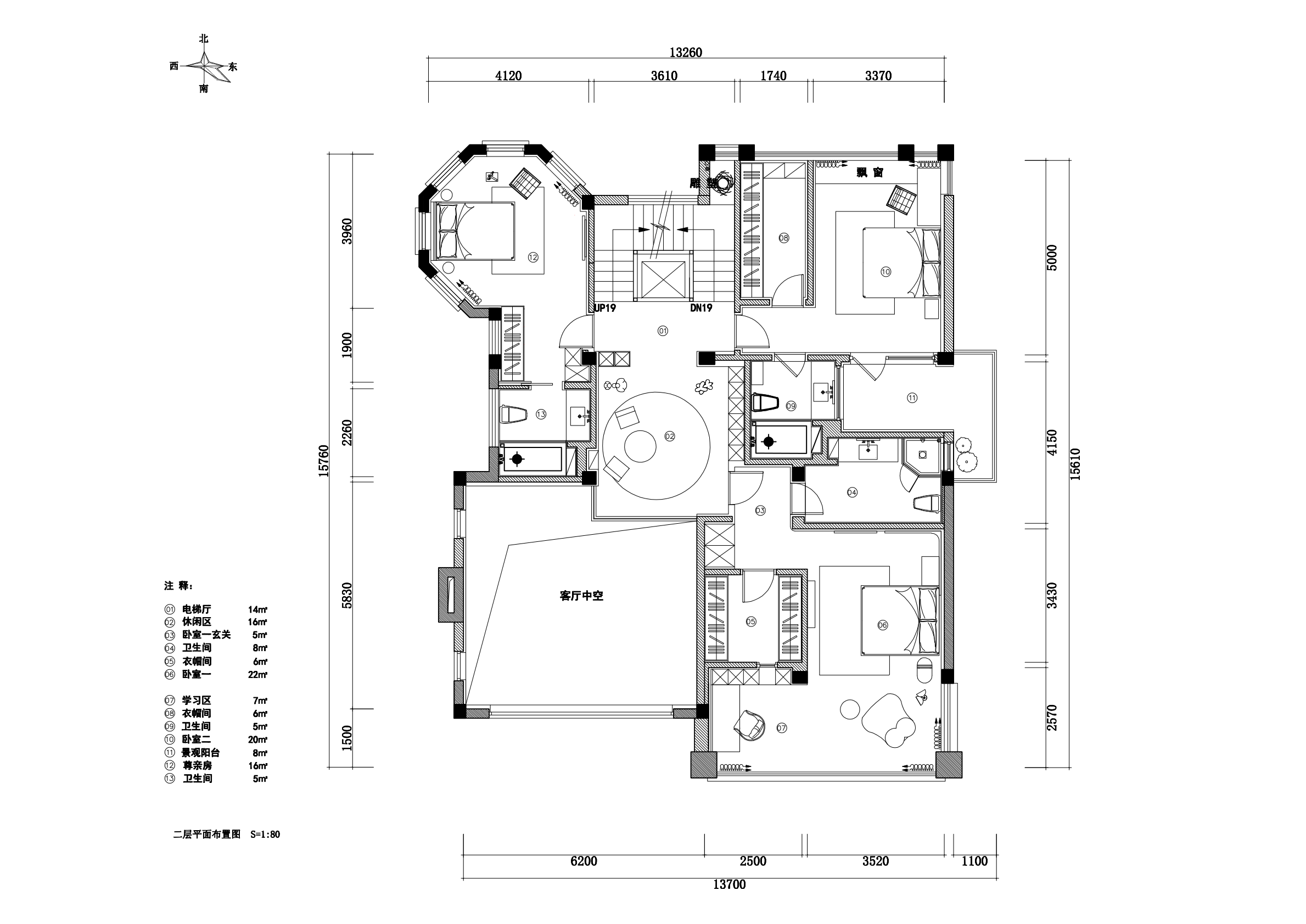 一、保留别墅挑空客厅的同时,充分考虑到了二层两兄弟套房的通风与采光