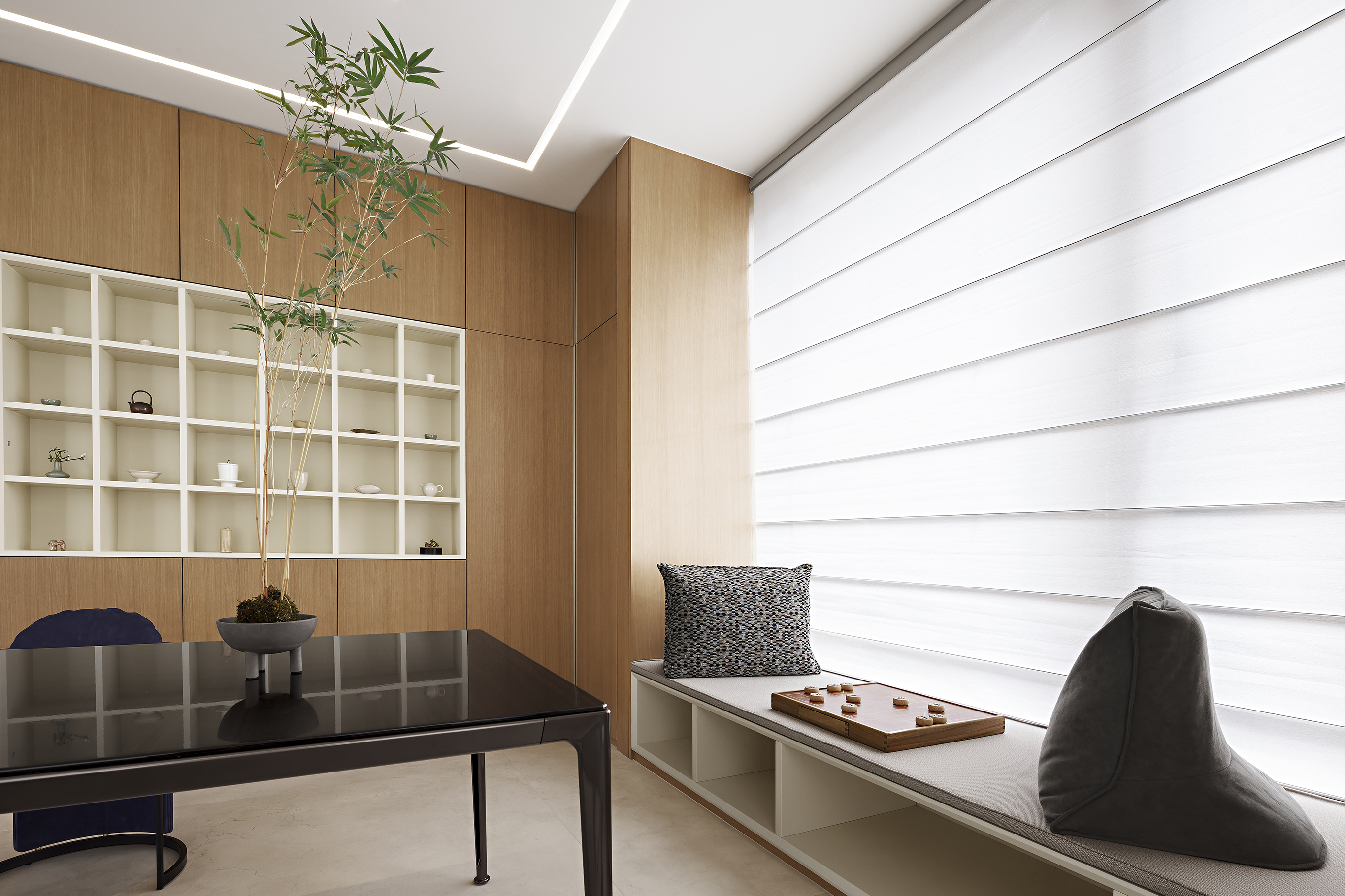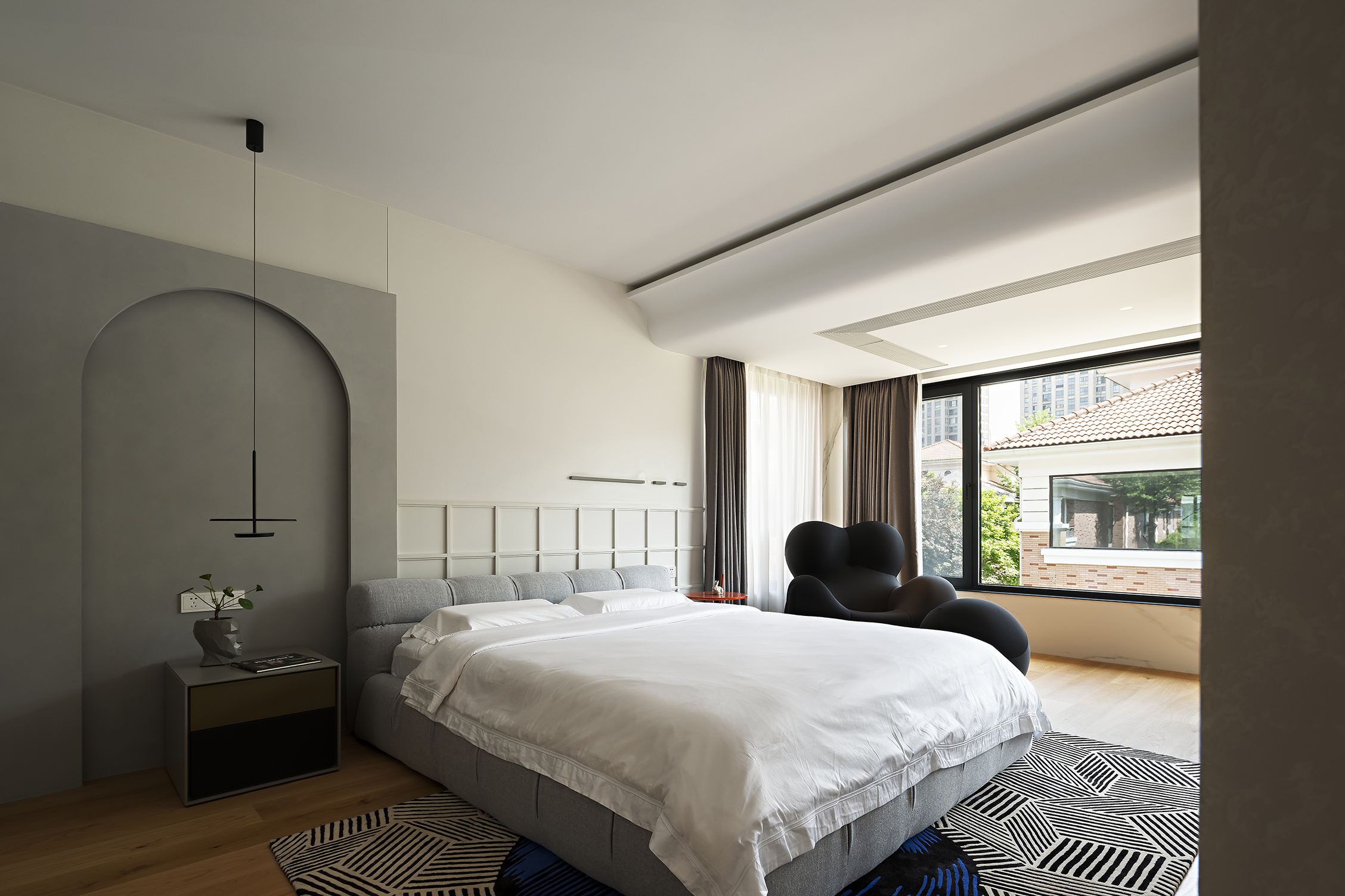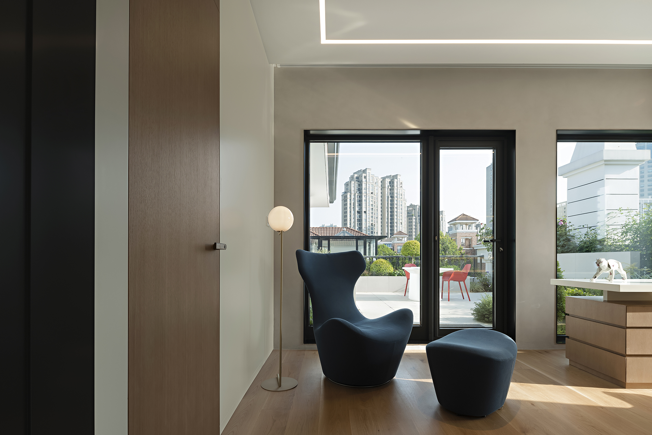 三、将自然景观引入室内,三层主卧套房可以分别从主卧和书房看到露台的花园
