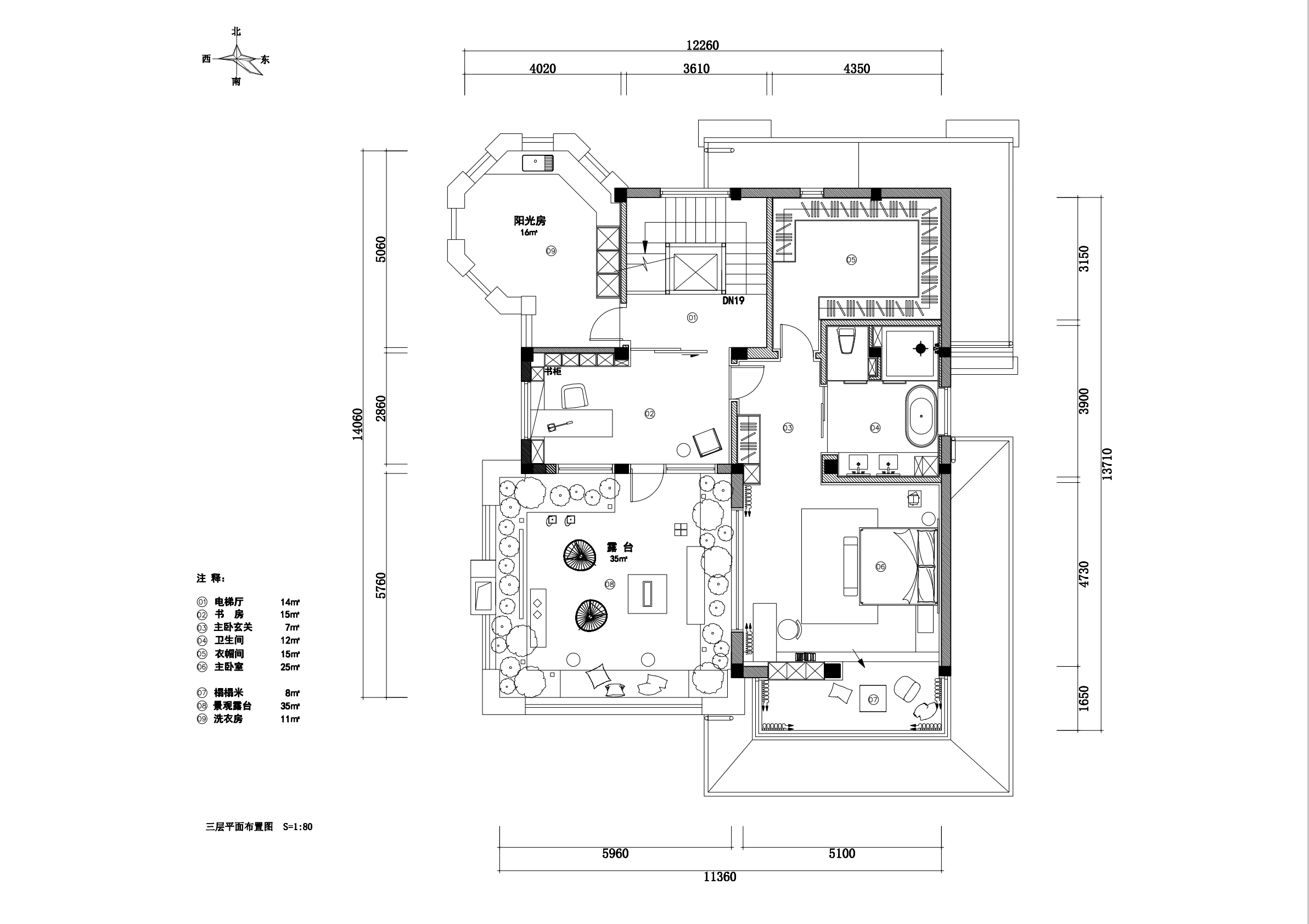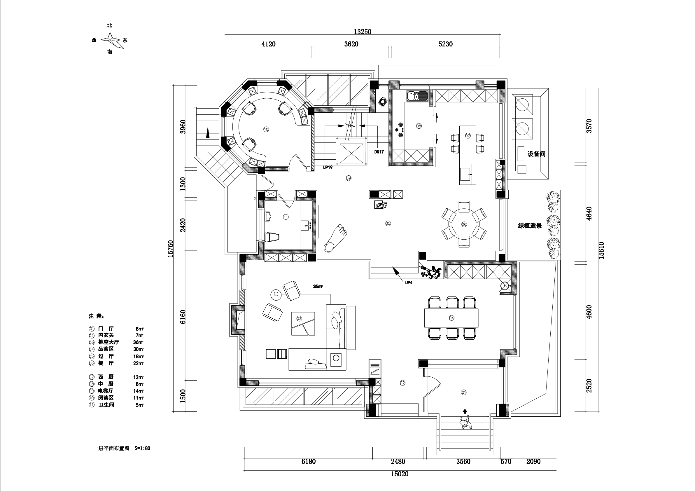 二、重新优化楼梯位置、怎加观光电梯的功能,优化了中西厨的功能及动线、将花园的景观引入室内