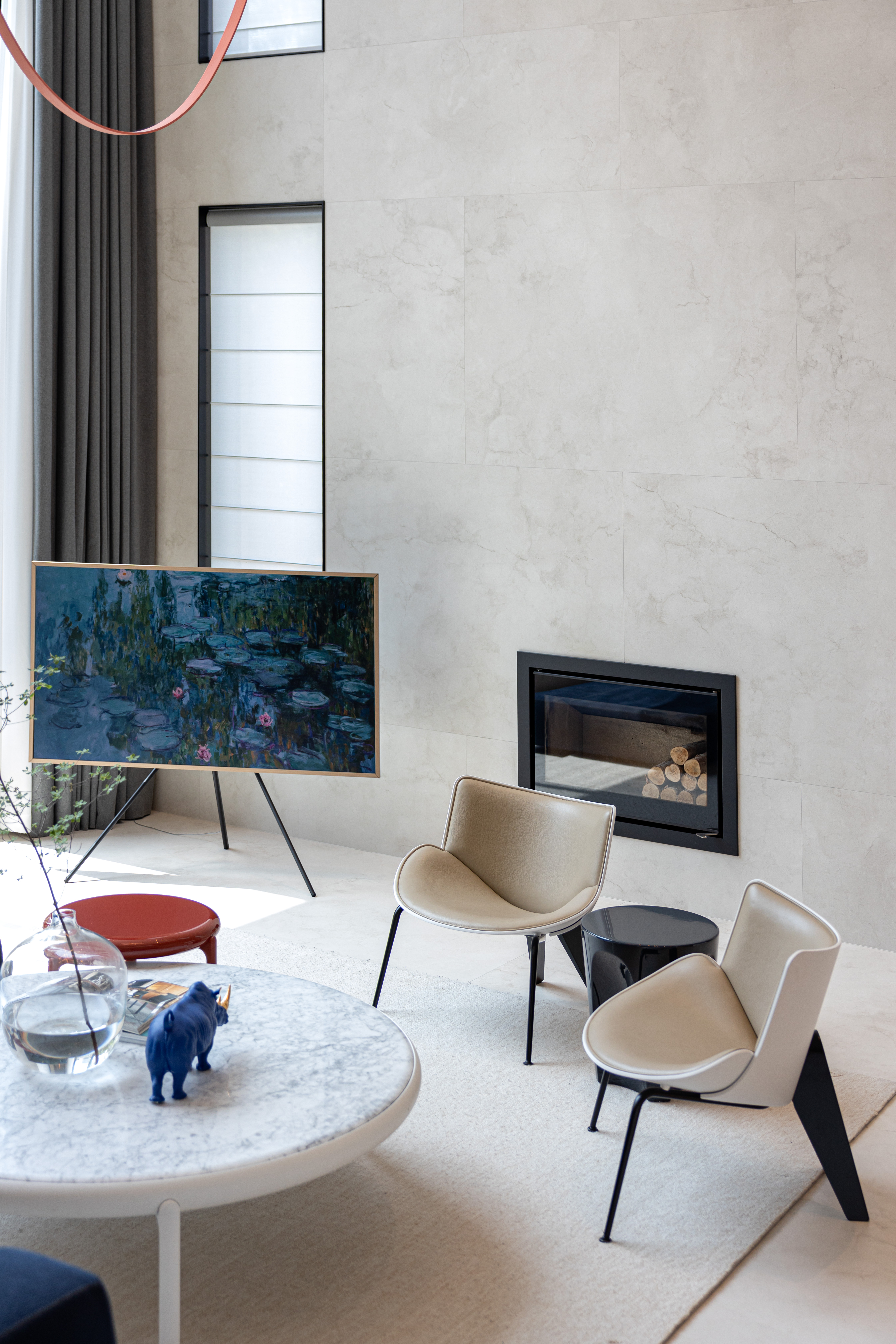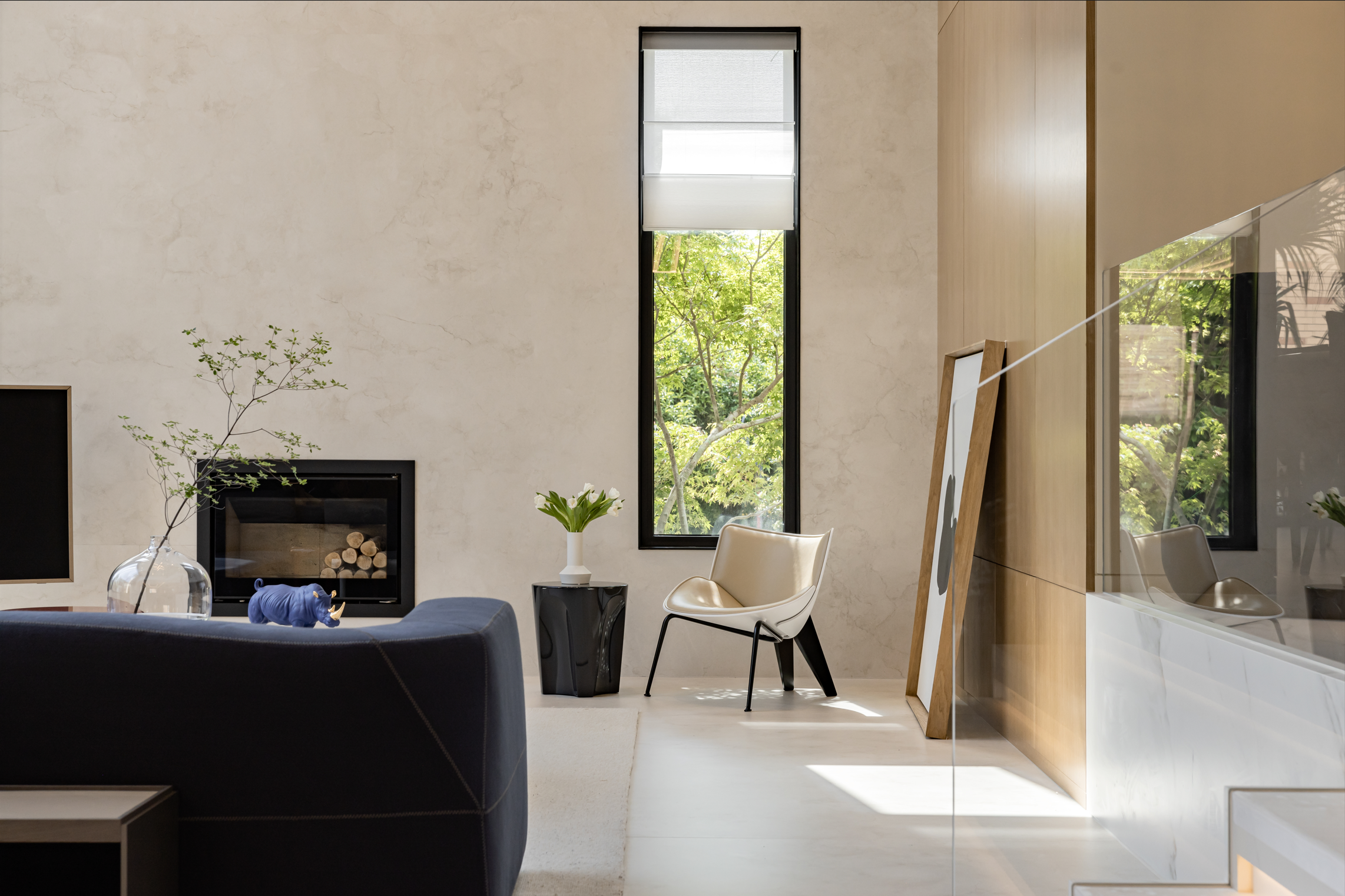 选用环保的艺术涂料,不同的空间选用不同的质感:负一层防潮防霉,一层硬度高、易清洁,二三层肌理丰富、环保