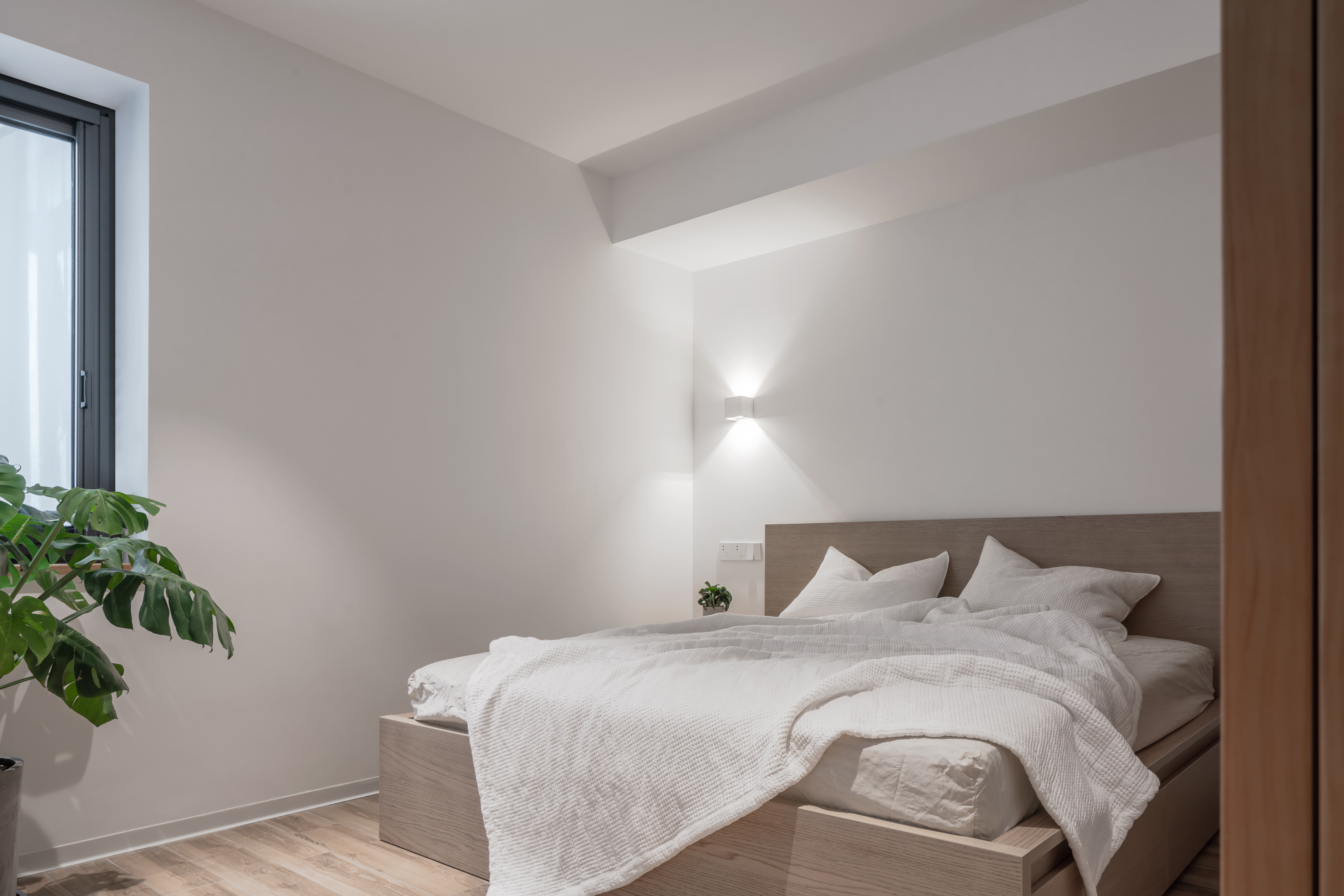 项目定位:各个空间尽量借助建筑尽可能透进来的光线引入室内,没有多余的炫技手法,主要材料以松木和乳胶漆为主,将建筑与周围物业环境结合考虑透景关系,重在心理感受和使用便利性。