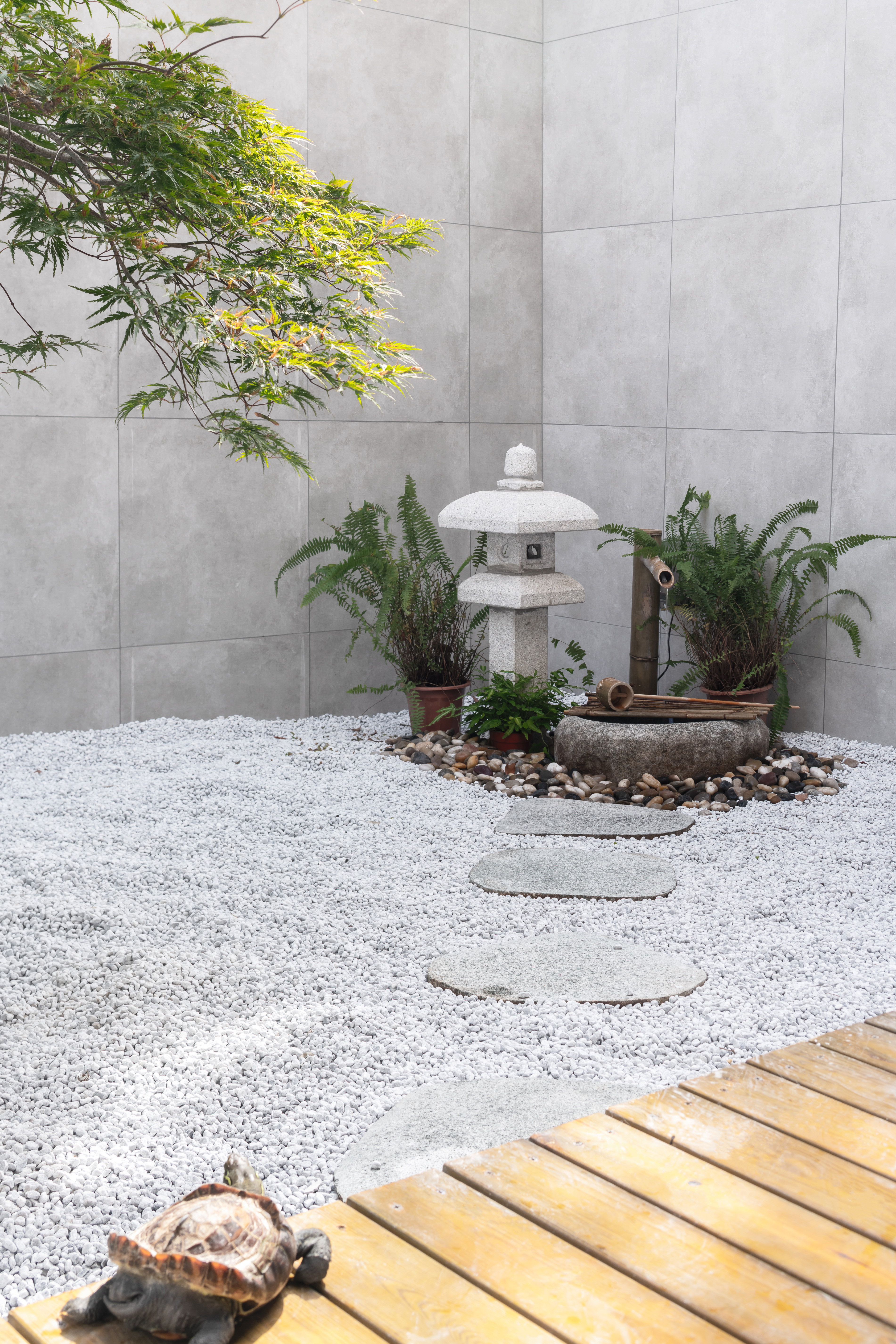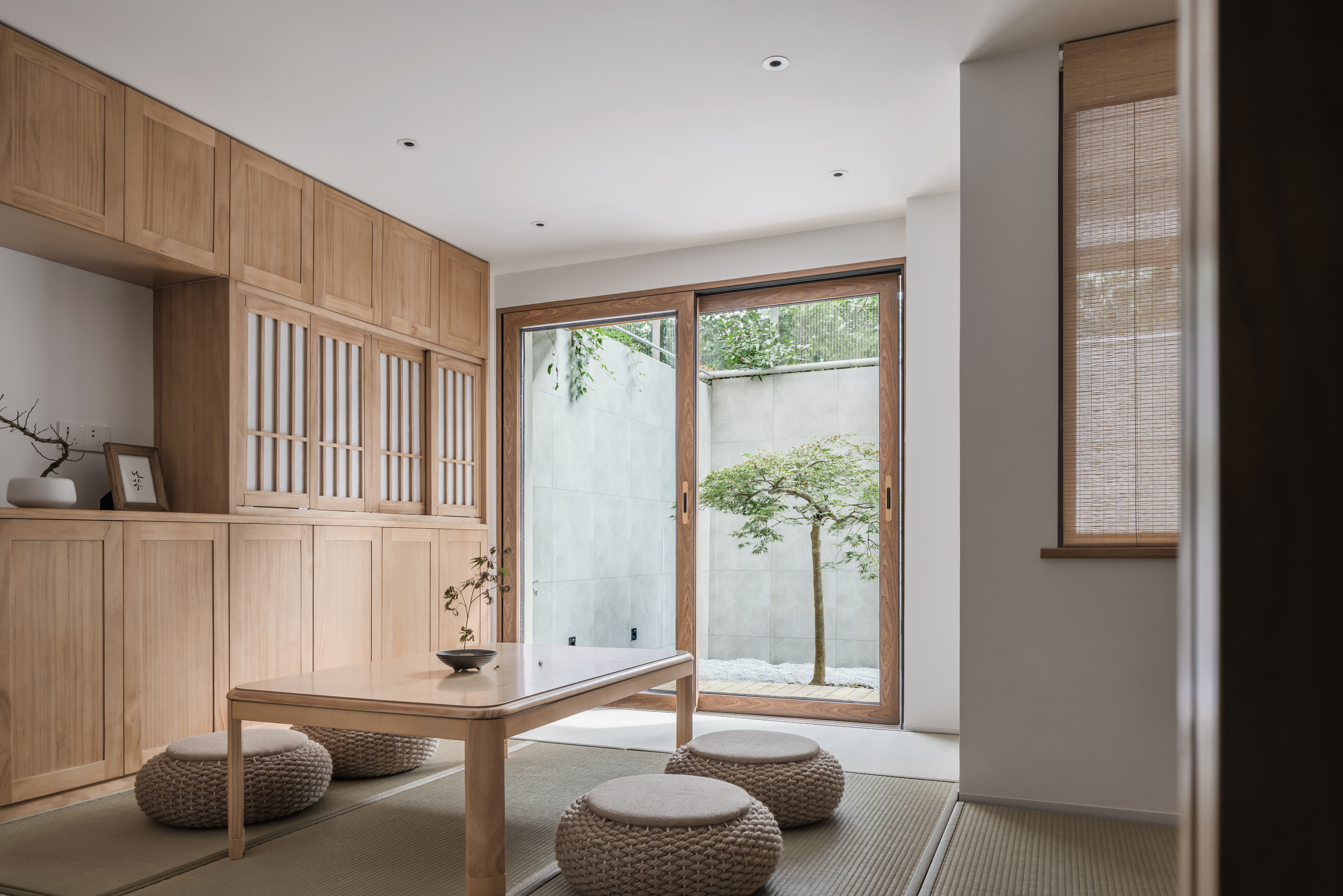 空间意境:业主日本留学回国,想要打造一种和风禅意的感觉,茶室和枯山水也是不可少的元素