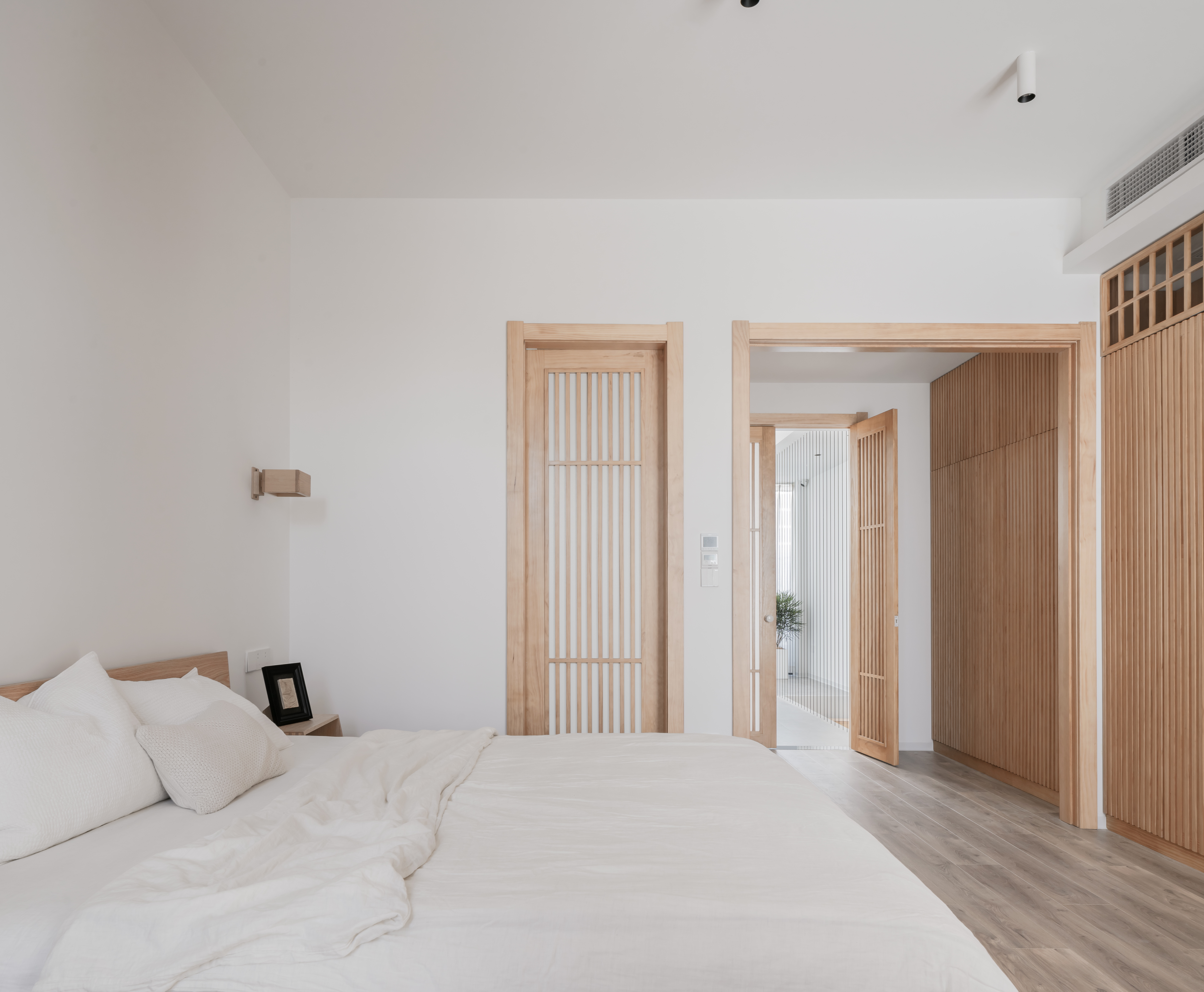 设计师兼顾了三代人的不同需求,在采光、功能、动线、适老化等方面进行了细致的改造,为屋主一家打造了静谧、简约、温馨的日式原木风居所。