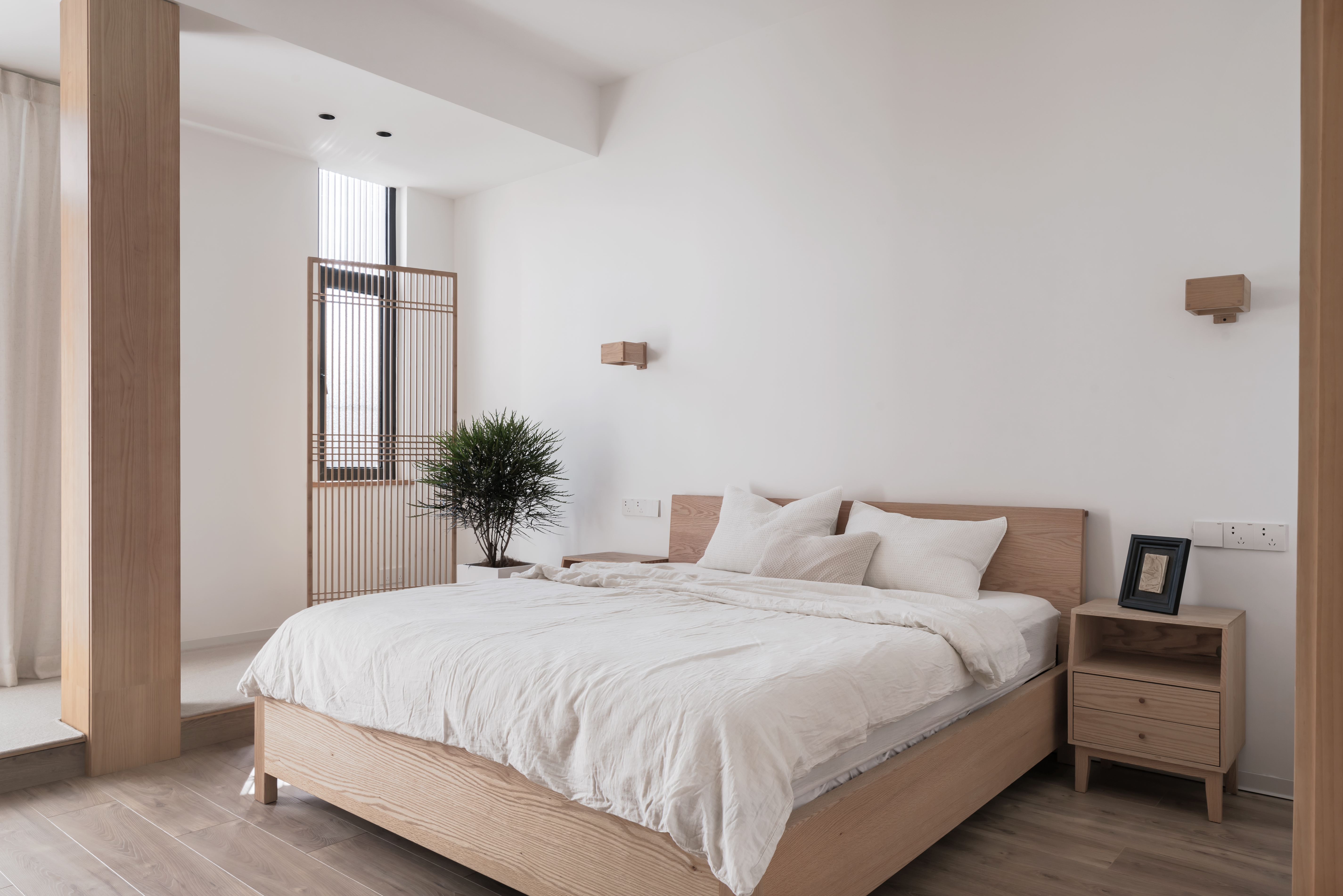 设计选材:松木原木板,纯色瓷砖,乳胶漆;选用日式建筑中具有代表性的松木作为主要材料,自然环保。主要体现在功能、收纳、采光,不需要额外的材料标新立异,主要体现采光,借光,通风,透景等心里感受。