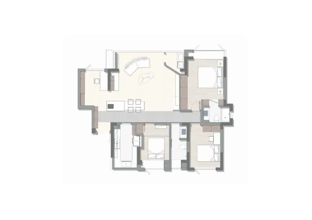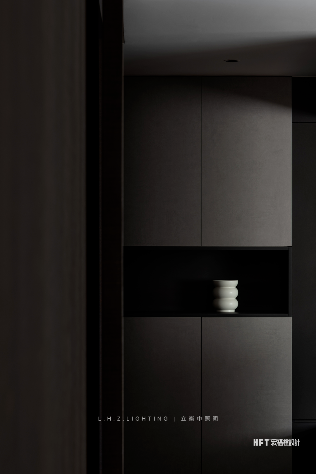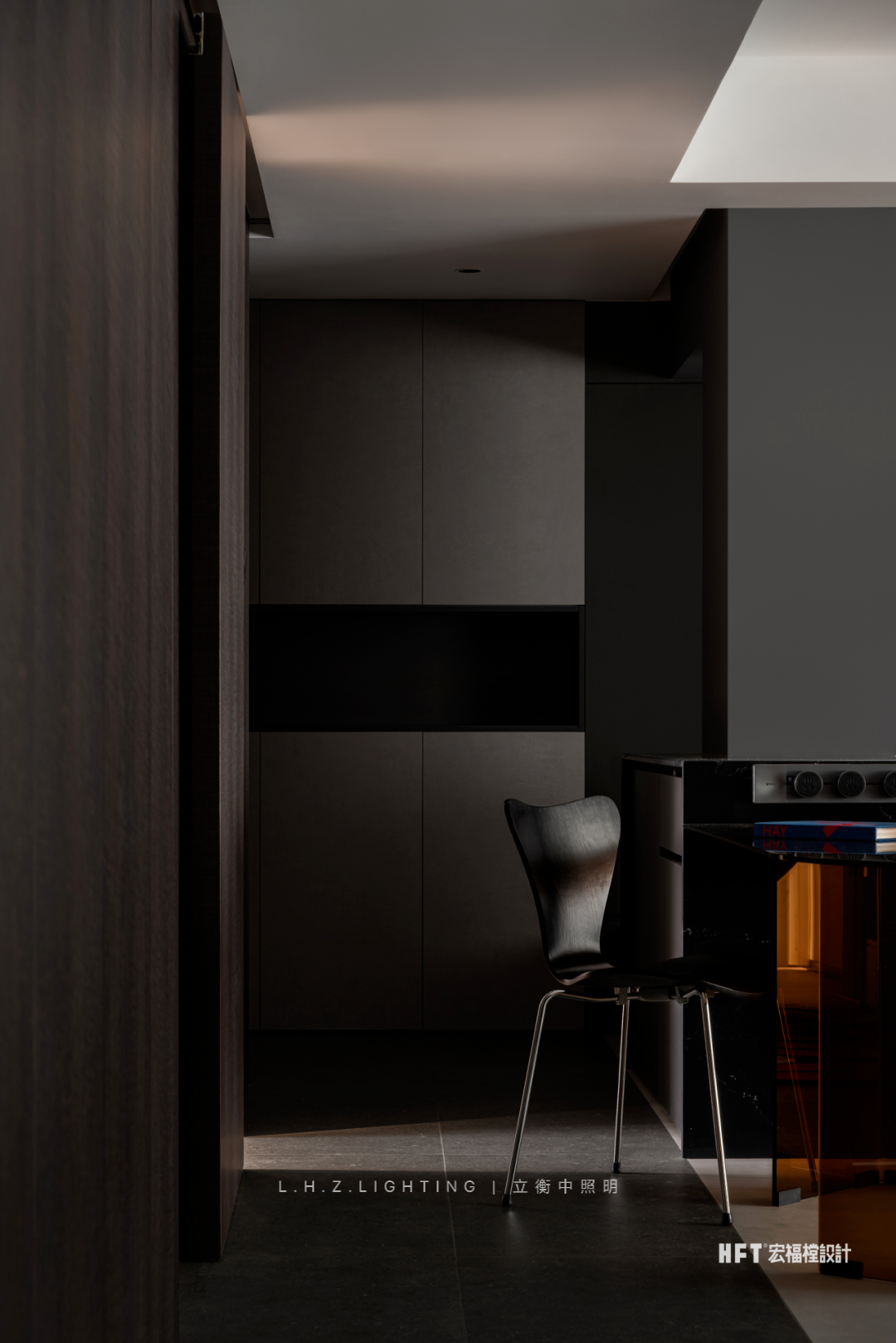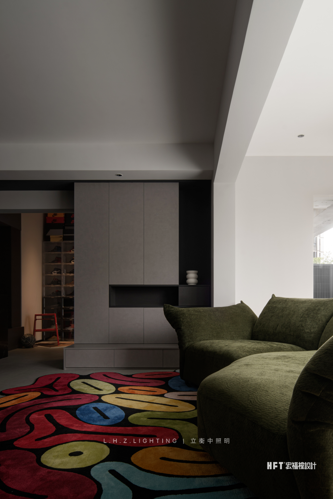 照明设计说明:130㎡艺术空间暗夜如墨,点点星光。颜色与情绪息息相关,由黑白灰粉饰的基调中注入部分色彩,中和空间温度的同时,调动多巴胺的分泌,营造愉悦感官。干净利落的线条,暗色为基调进行渲染,再以恰到好处的彩色进行搭配,活泼中不失秩序,产生安适、清新的快乐情绪,暖色灯光为整个客厅空间增添了一份暖意。蕴藏着暗黑美丽空间,优雅与沉稳被紧密包裹着,氛围灯光将材质呈现得更加纯粹使得空间充满高级感,在冷色调风格中,控制光线的数量和角度,使得空间更加亲近。黑色不再被视为一种节制,而是成为另一种形式,通过黑色和灯光的结合,呈现出独特的氛围和情绪。