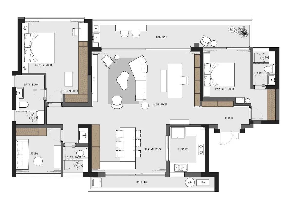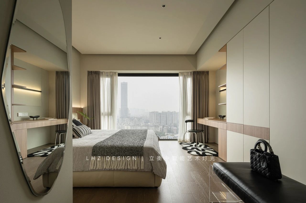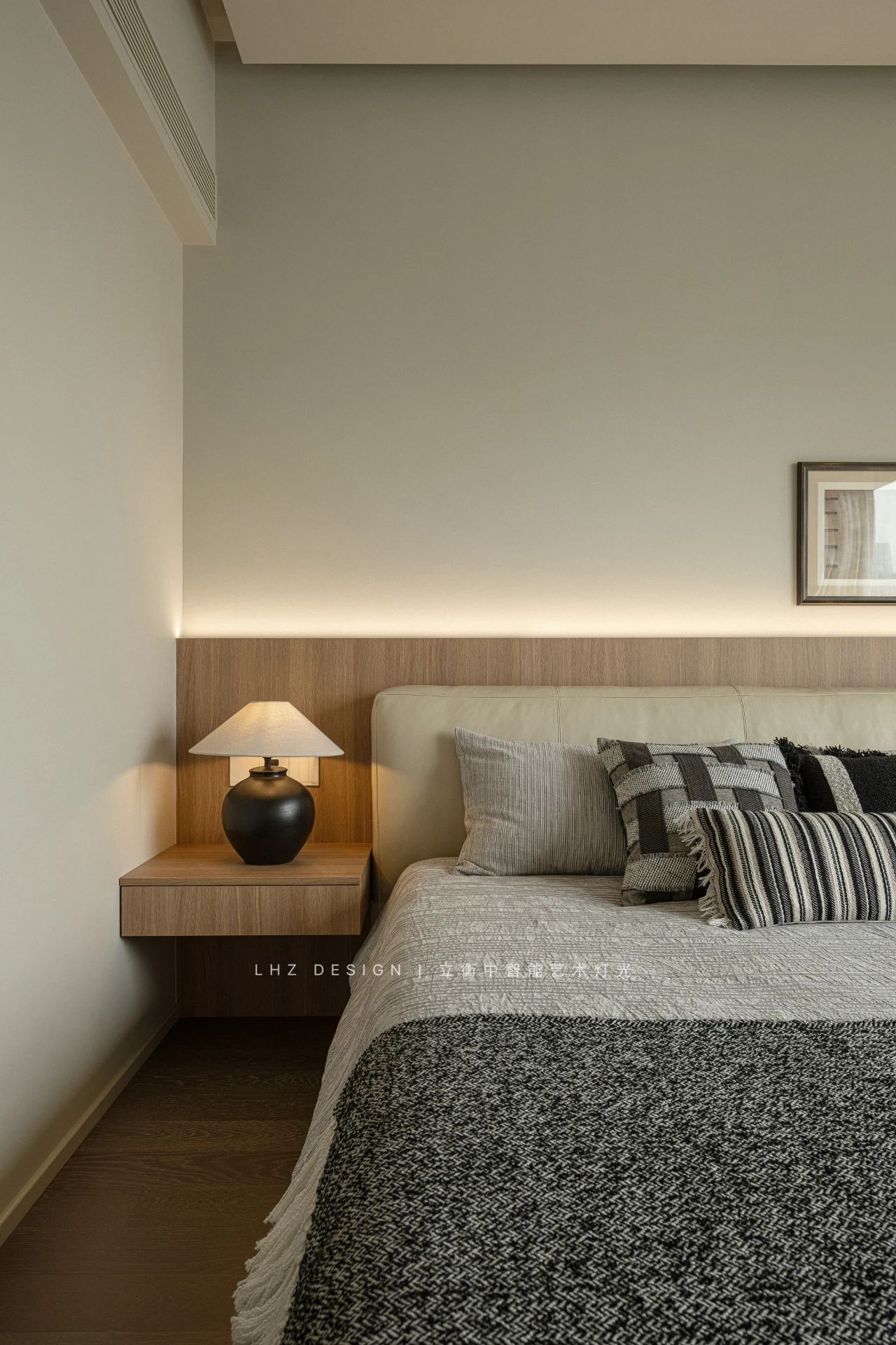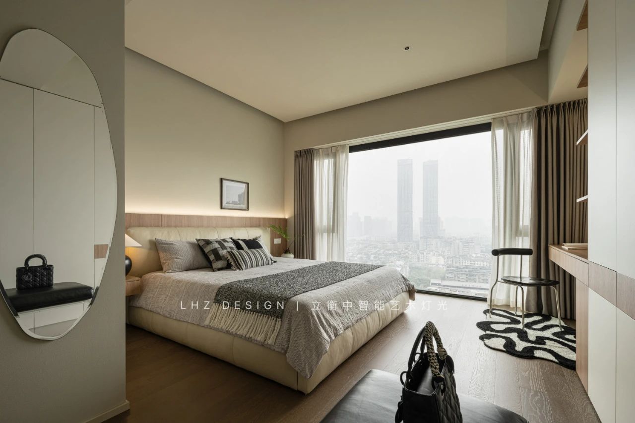 全屋选用3500K色温,除了射灯的重点照明外,也增加了氛围感设计,搭配台灯、灯带增添氛围光,在不同层次的光影铺设下,整个空间浸润着细腻美学。时间变换,光影升温,空间沉浸于柔光散射下的层次渐变,演绎现实与浪漫交织的生活剧场。