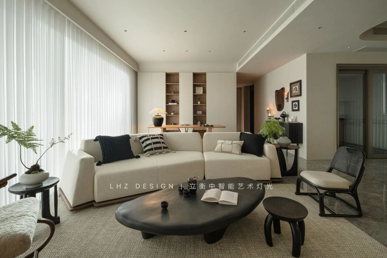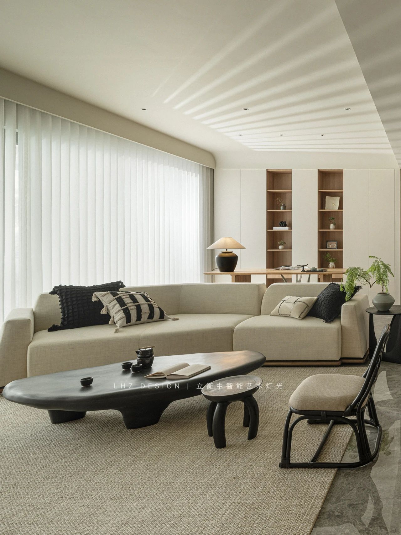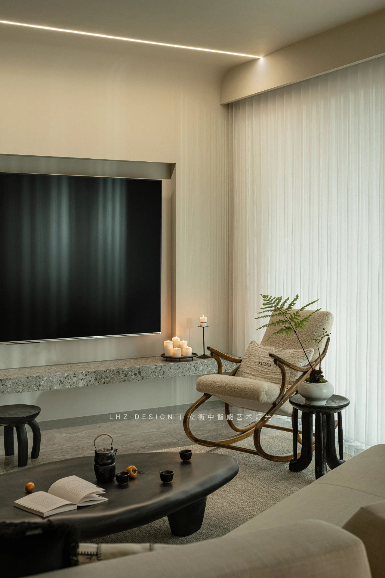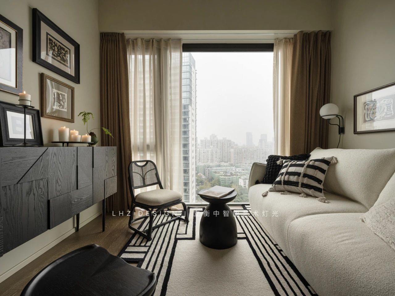 在这个快节奏的时代,有一个与性格契合的家是一件幸福的事。可以慢慢感受到内心的平静,以及找到对生活的那一份热爱。生命要有裂缝,阳光才能照进来。太阳通过窗帘叶片照进客厅空间里都是阳光的痕迹,平静、安然、静谧,通过斑斑点点的光影诉说浪漫。