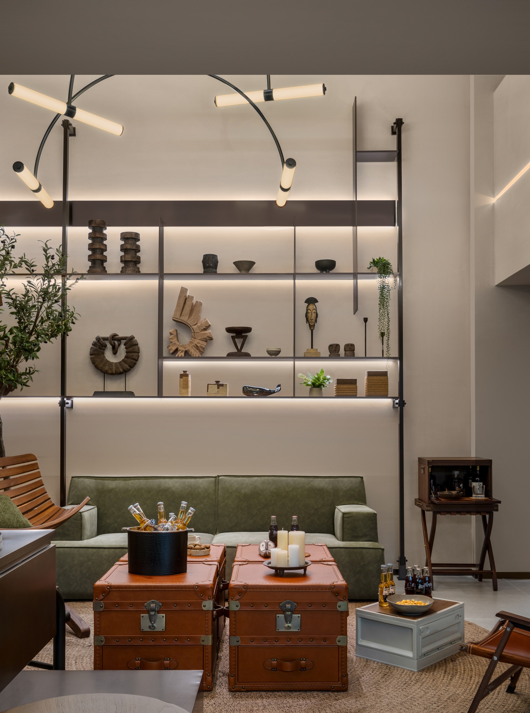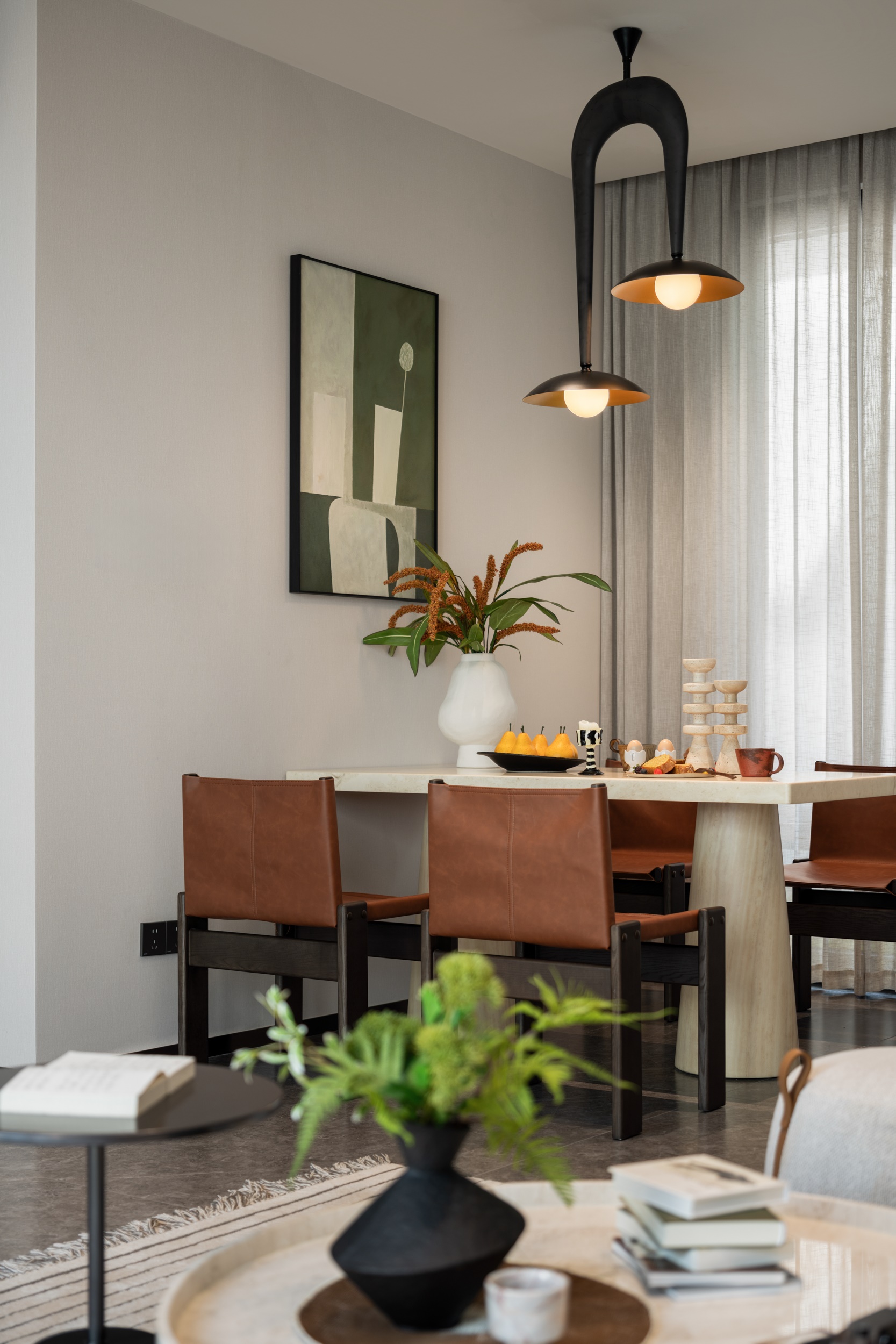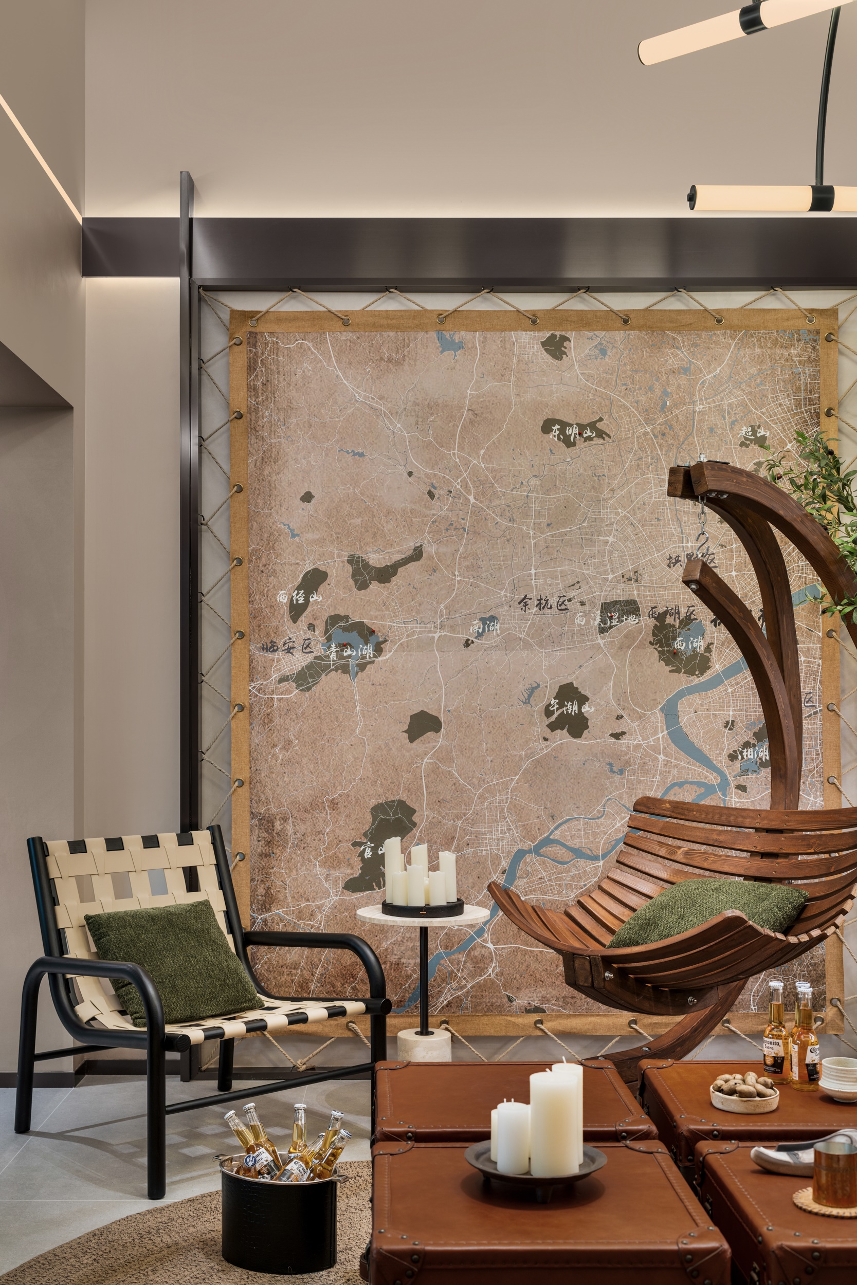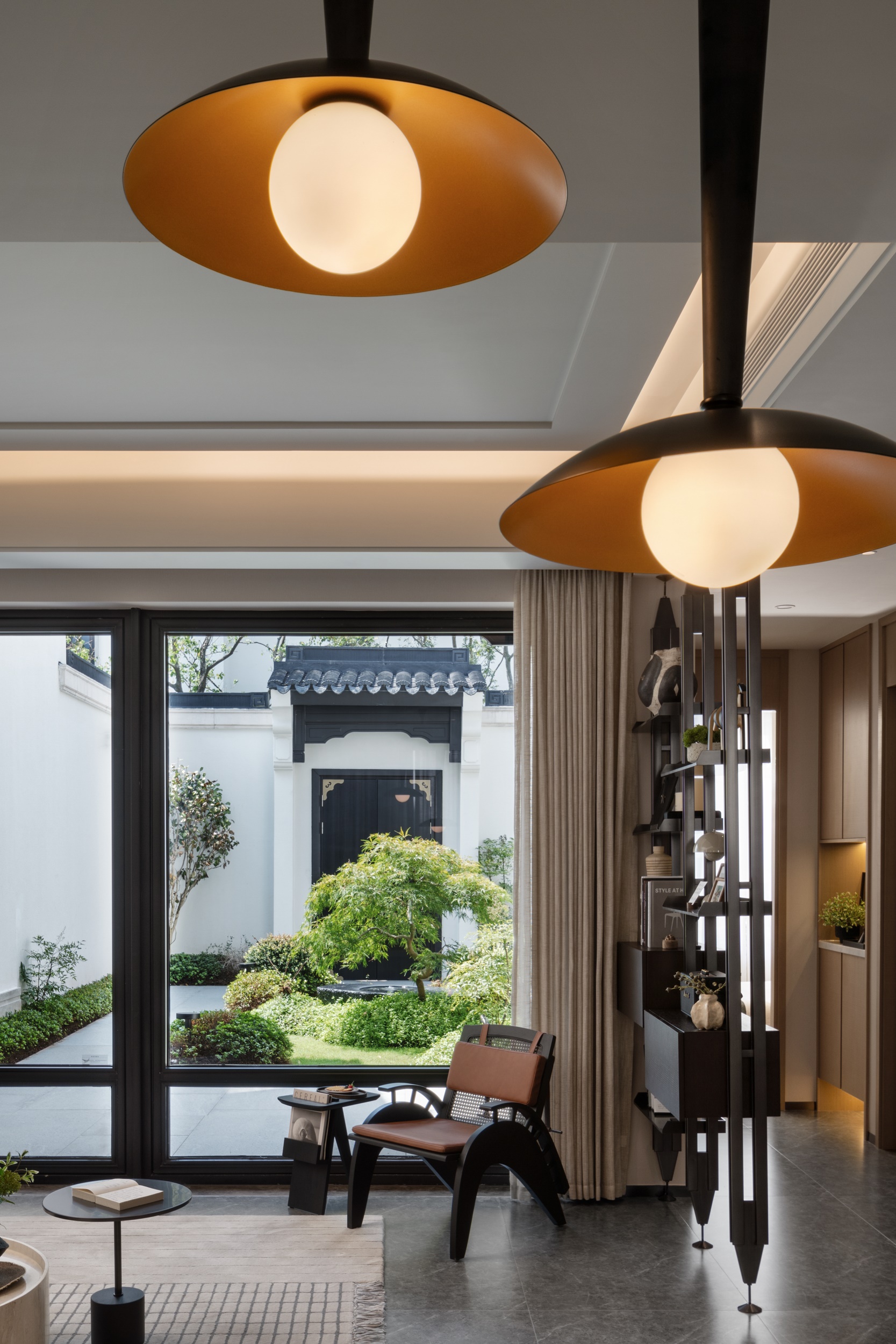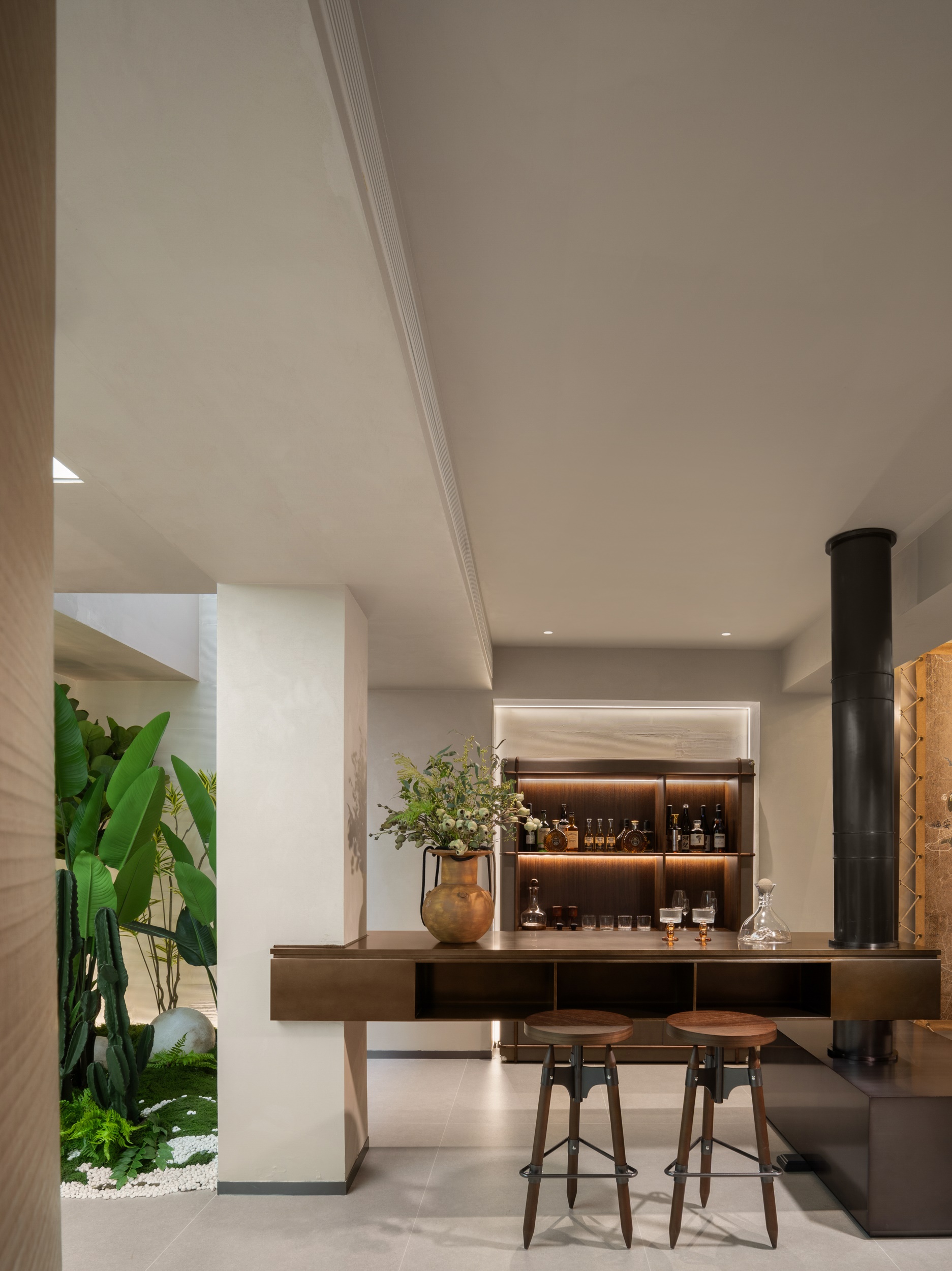 空间意境:在环境风格上,本项目大胆融合了自然景观与东方文化,通过提取湖景与周边自然元素,使空间既具现代感又富有传统韵味。设计运用古铜色与做旧金属的材质,巧妙地将现代金属质感与自然元素相结合,创造出既有力量感又富有温暖感的环境氛围。景观设计依托青山湖的自然优势,巧妙借景,打造出一系列可以欣赏湖景的休闲空间。同时,设计保留原生绿植,选用耐旱植物,保持生态平衡,实现自然景观的最大化利用与人文气息的传递。