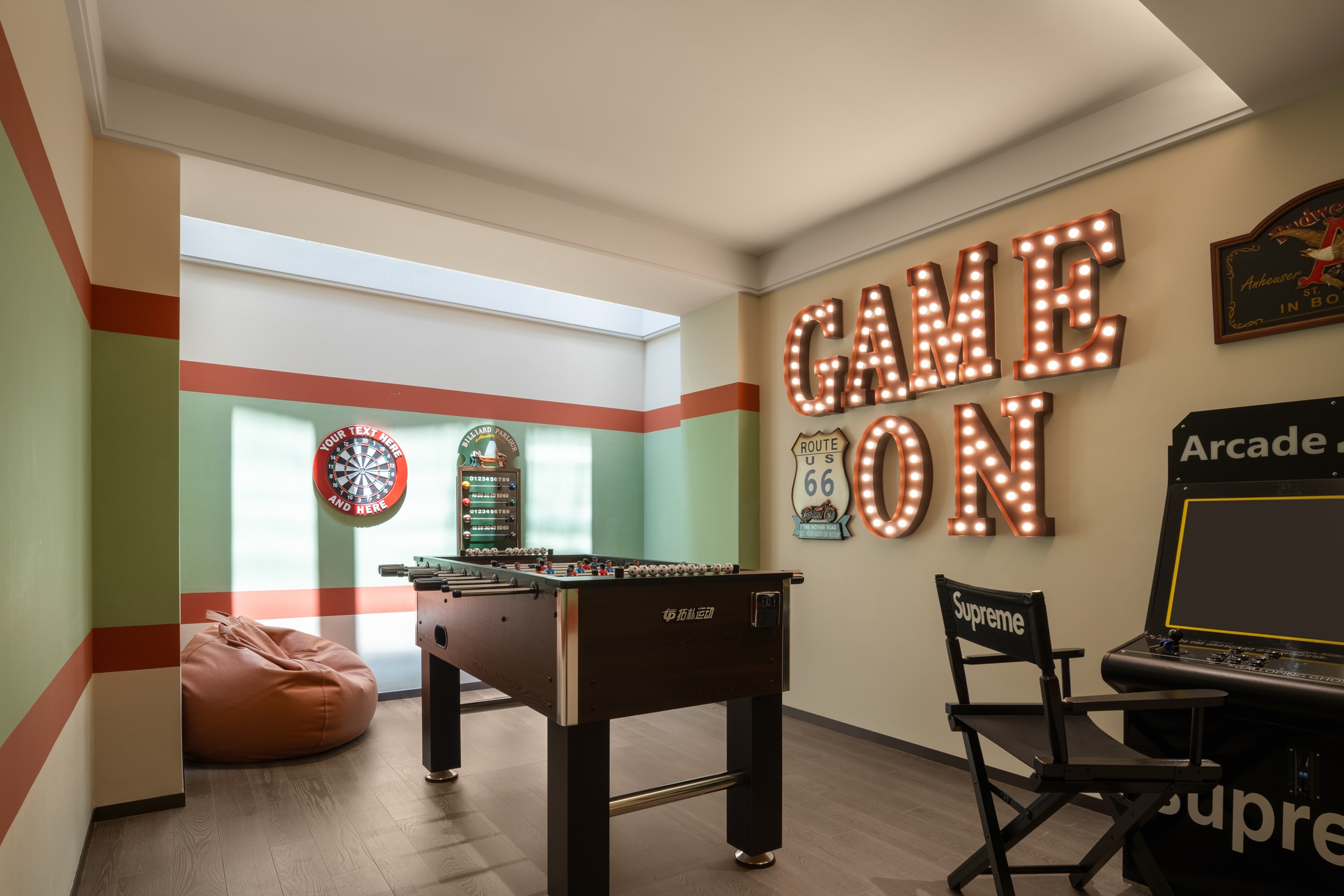 空间布局:空间布局上,本项目创新性地打破了传统的动静分区模式,推崇空间的流动性与开放感。例如,一层的客房设计融入了户外元素,通过大面积的玻璃窗和自然材质的运用,让住户在室内也能感受到外部景观的延伸。负一层的设计兼顾多功能需求,提供了休闲、运动、聚会等多种活动场景,极大地提升了空间的使用效率与灵活性。此外,空间优化充分考虑了周围复杂的环境与建筑结构限制,通过地势和结构的巧妙改造,实现了最佳的空间布局和舒适度。
