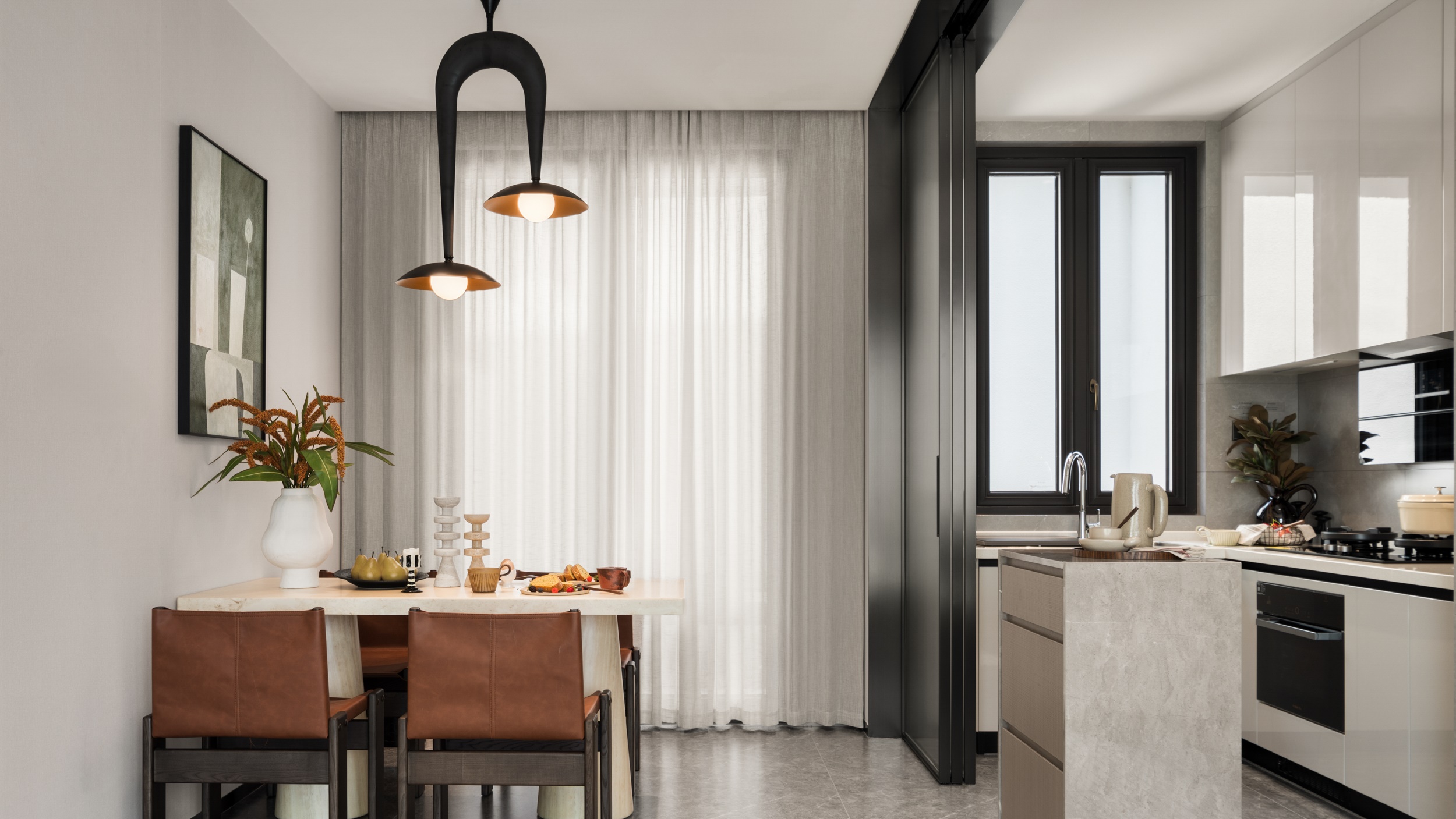 设计选材:本项目在选材上秉承低碳环保理念,优先选择本地生产的环保材料,减少碳足迹。金属材料大部分可回收,有效减少资源浪费。为实现能源的可持续使用,设计充分利用自然采光和通风,减少对人工照明与空调的依赖。同时,选用了本地耐旱植物作为景观植物,降低了水资源消耗,推动了绿色生态居住环境的构建。设计中注重材料的长效性和可持续性,力求在美学和经济性上找到平衡点,推动绿色建筑理念的实现。
