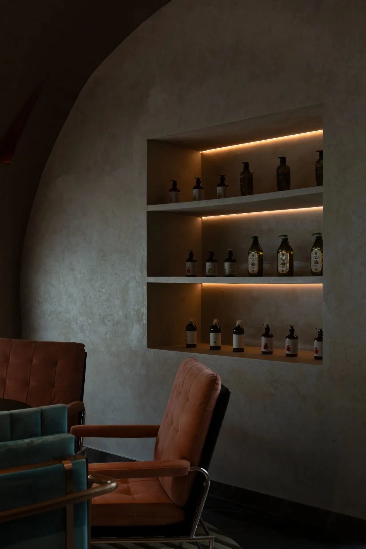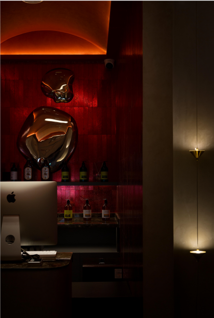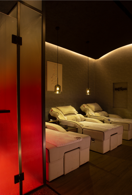 SAP的氛围是否能拉满灯光有着关键的因素,照明亮度要恰到好处,既不能太暗以至于使顾客难以看清周围环境,也不能太亮以至于破坏所期待的氛围感。灯光设计选择偏柔和的暖色,这类型灯光可以缓解心理上的疲倦,运用灯光的空间变化,调理空间气氛,明暗过渡自然,形成视觉上新颖。真正的放松并沉浸其中。
