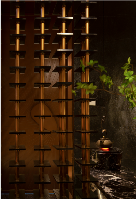 从现实中抽离,仿佛静止在这条时间轴上。光是晶莹的凝固的,却又似乎随水流欢愉涌动。打造一个静谧空间,以空间之形,筑一方净土,让空间成为人们寻找内心自在的载体。