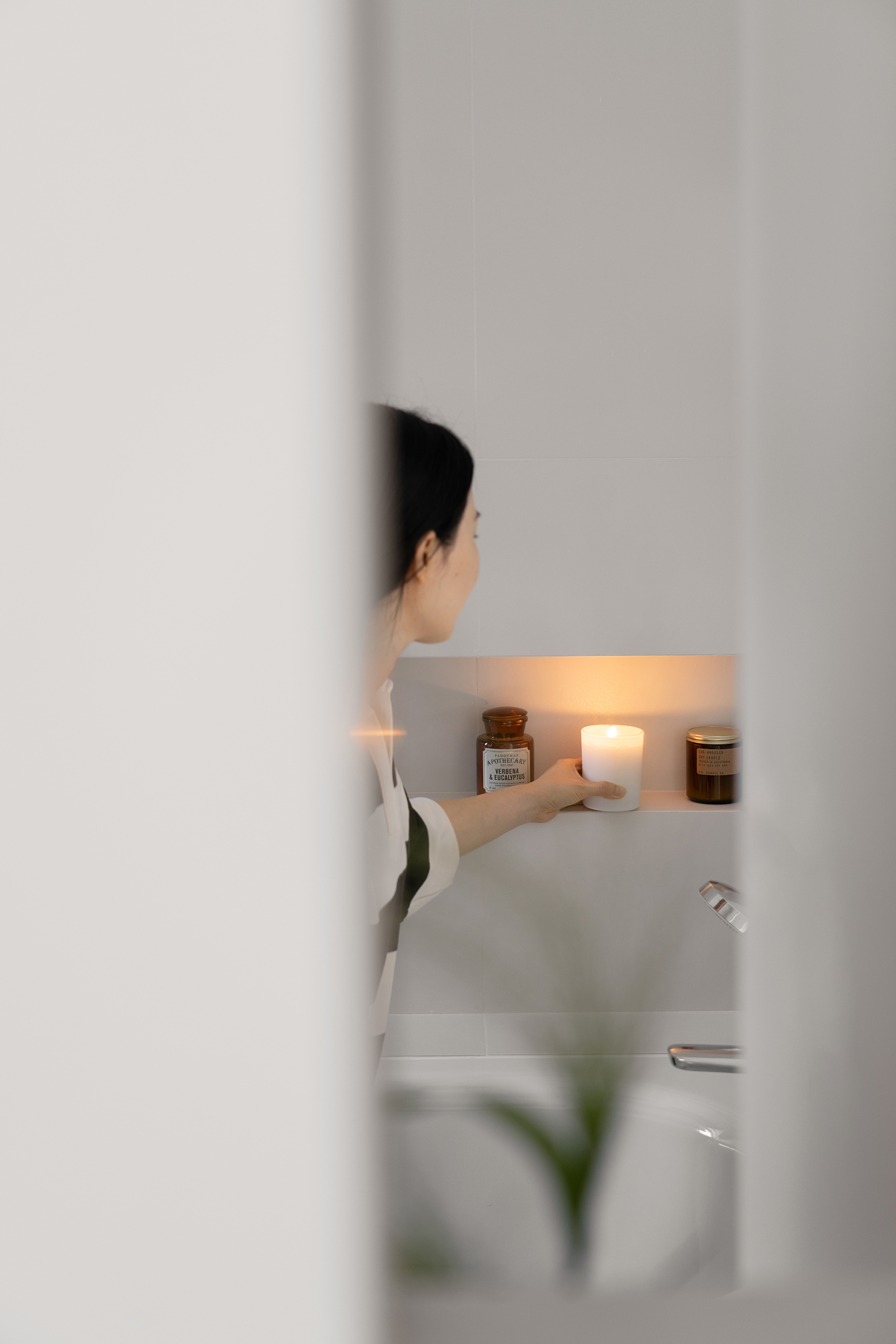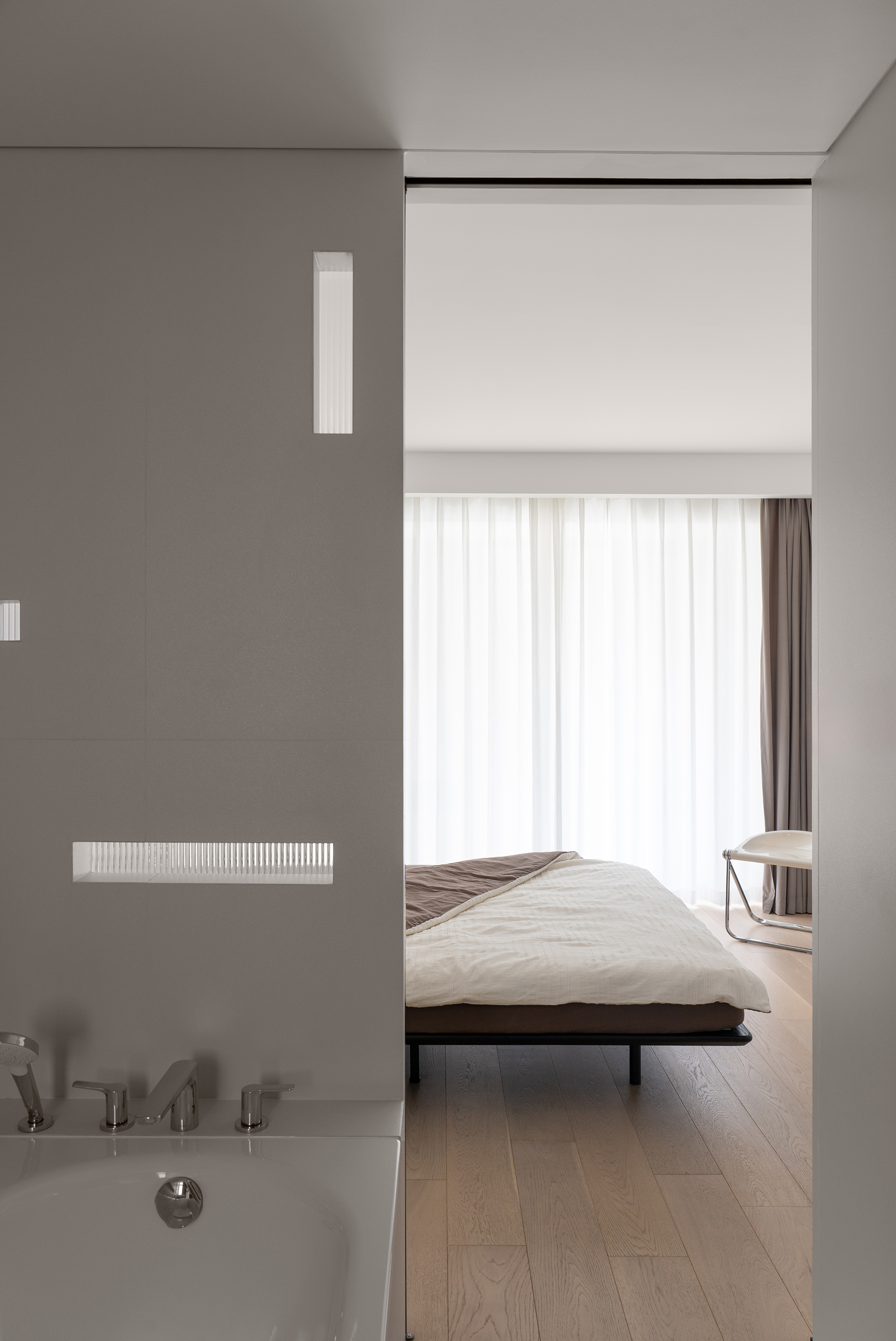 主卫浴缸上方镂空墙将光线和空间变得更有趣味性,有效地划分区域的同时,增加空间与空间之间的关联,增添了一分呼吸感。