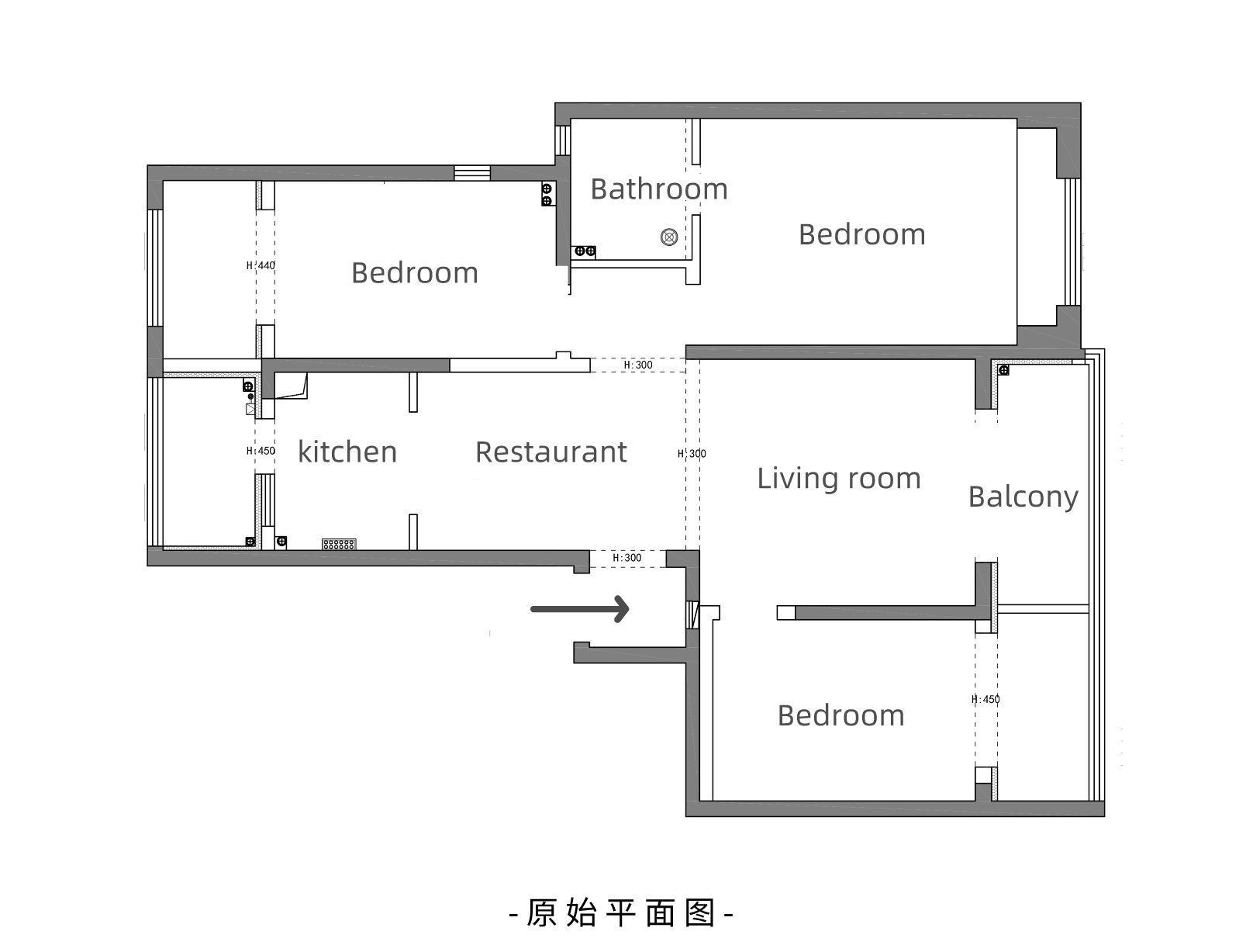 ❶ 次卧拆除部分墙体,设计推拉门,增加采光;❷ 主卫扩宽做干湿分离的空间,满足业主居住需求;➌ 设计开放式餐厨,空间更开阔;❹ 次卧改造为衣帽间,方便衣物统一收纳。