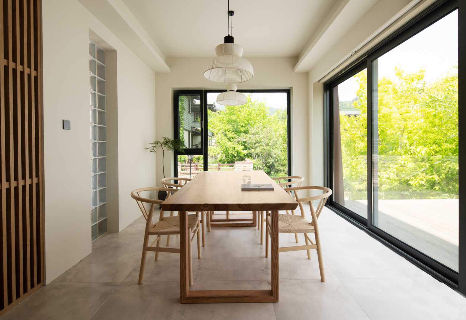 空间意境:“木槿”通过打通非承重墙和垂直空间,打造6米高的超高挑空区域,使空间更加开放而通透。设计以7扇外立面全景连窗重构自然光线的引入路径,把绿色接引进室内空间,与流动的光线,空气彼此呼应,经久不腻,为空间带来明媚的质感与细腻的色彩变化。在风格环境上,将原木、藤编、棉麻等自然材质与现代主义基调结合,创造出室内外相融的绿色生态场景,光、空气与自然的独特空间体验。
