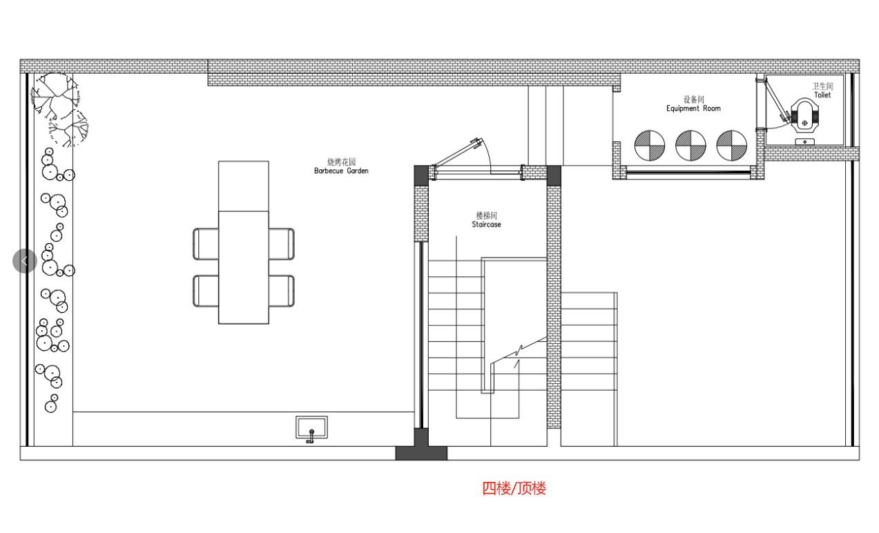顶楼没有太多设计 主要就是放各种设备和一个卫生间两个露台分别可以烧烤和养花草